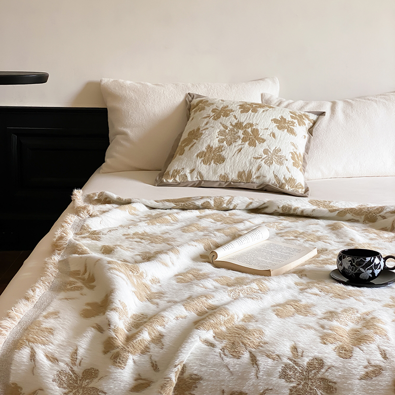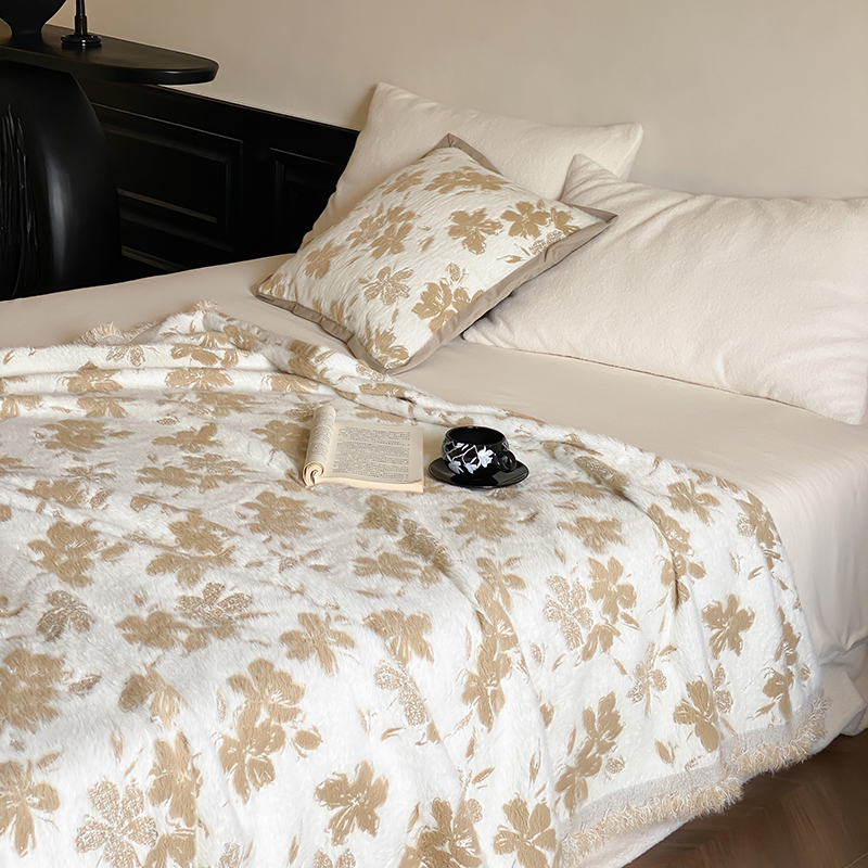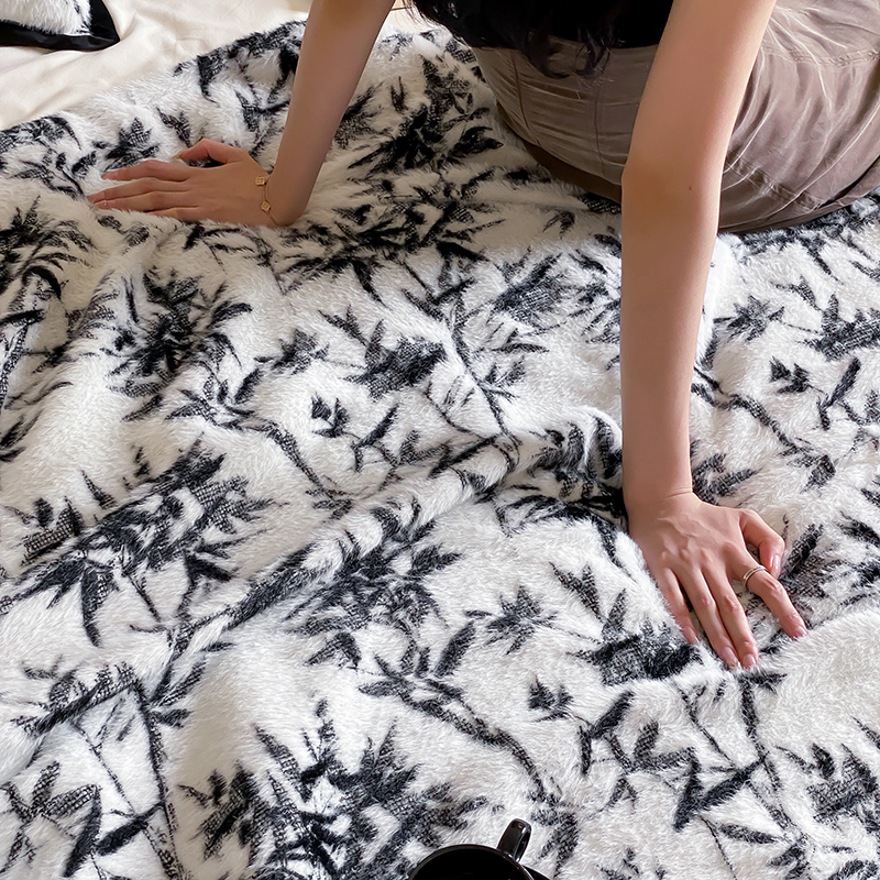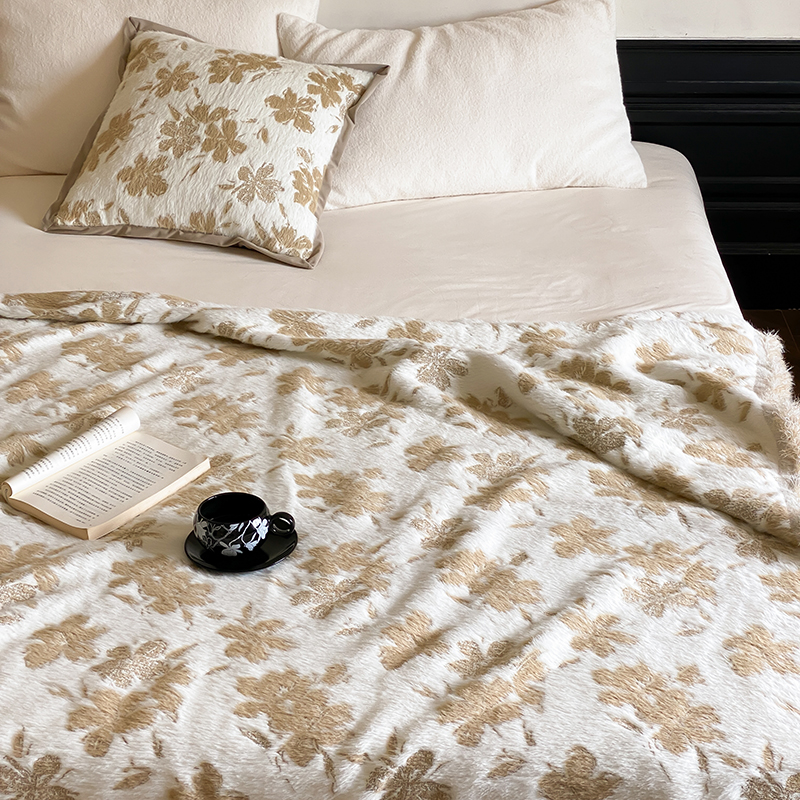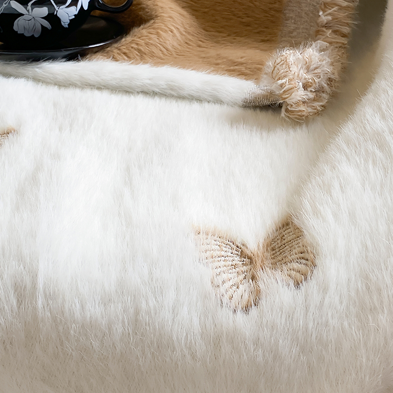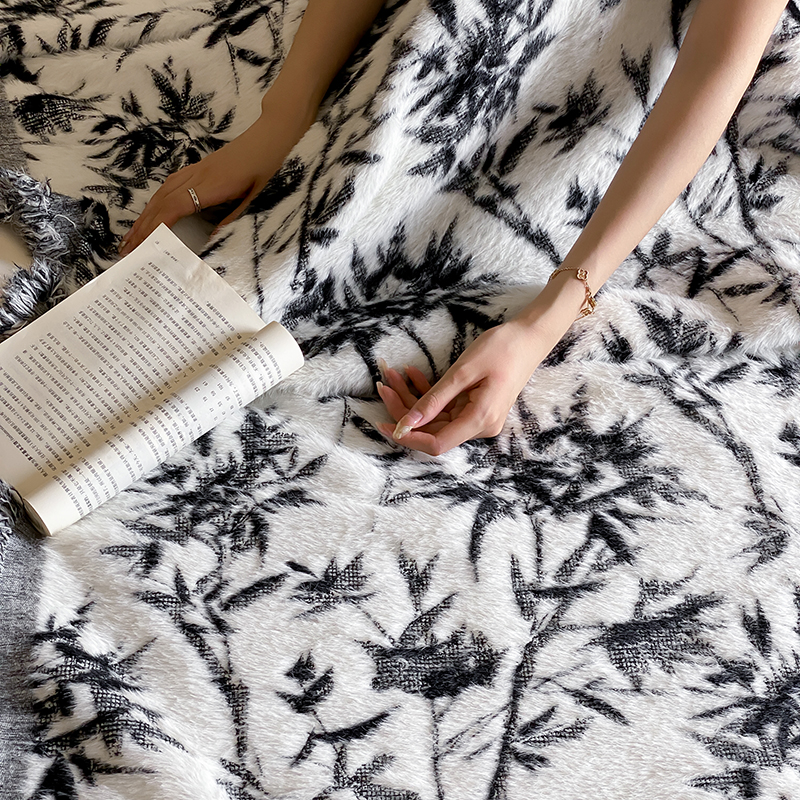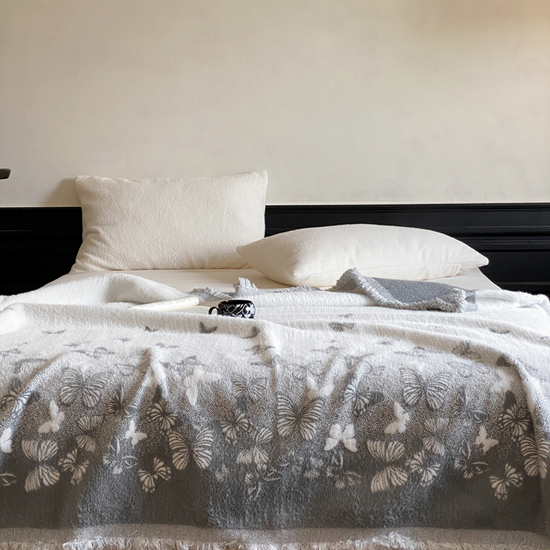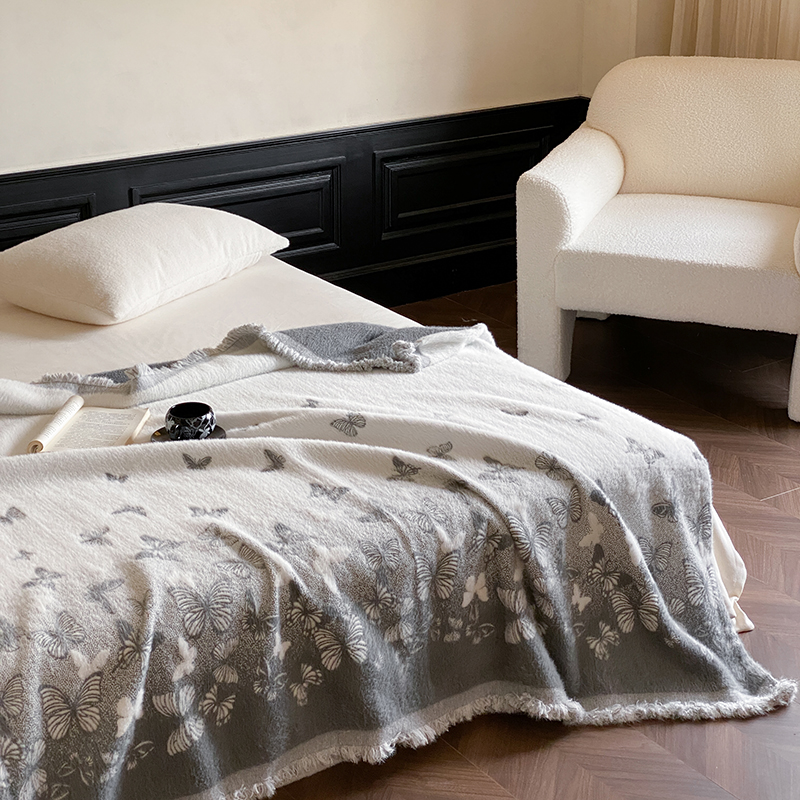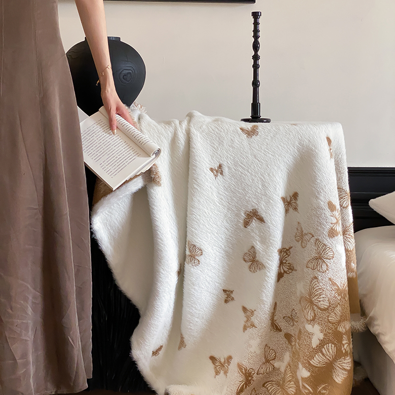 自然醒貂绒毛毯国风系列高端蝴蝶花卉长毛貂绒毛毯流苏毯双面盖毯保暖厚实秋冬单人毯MT