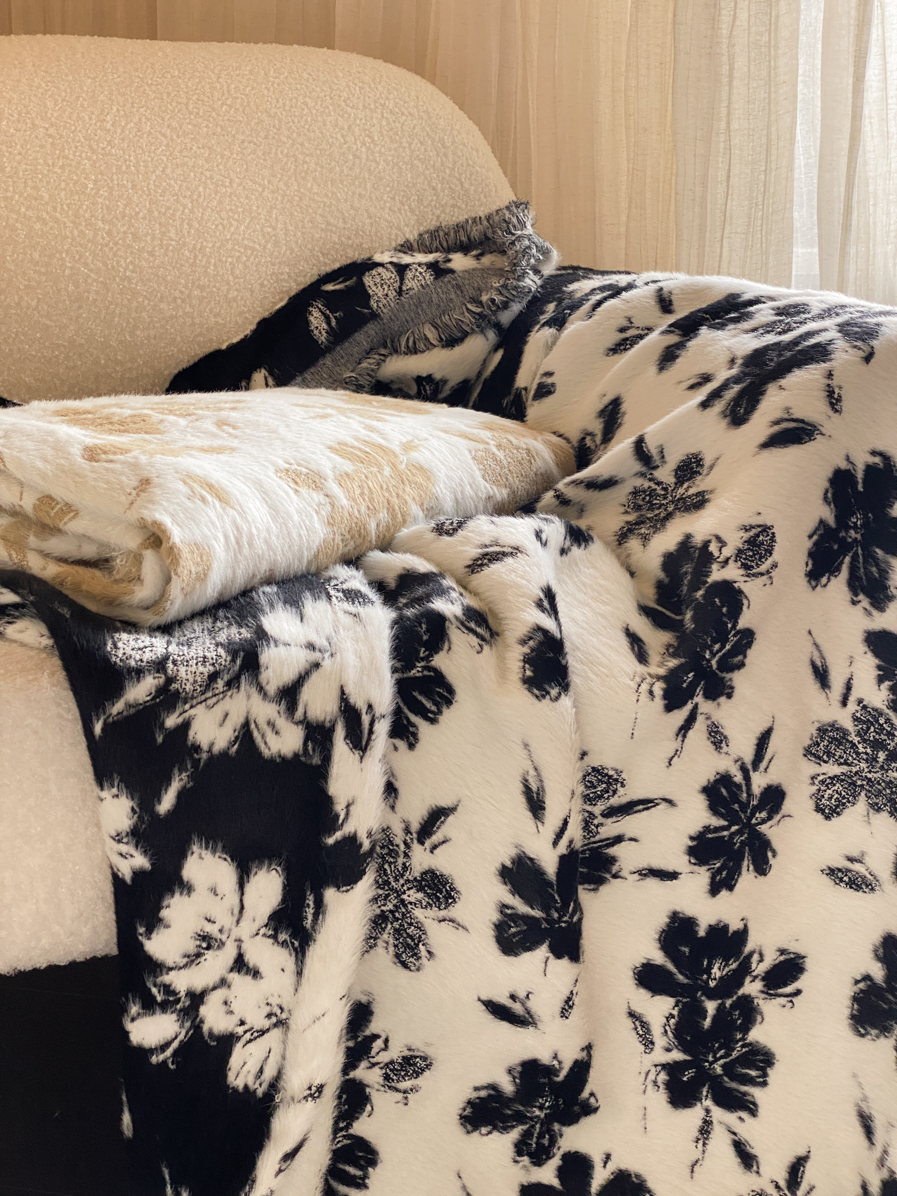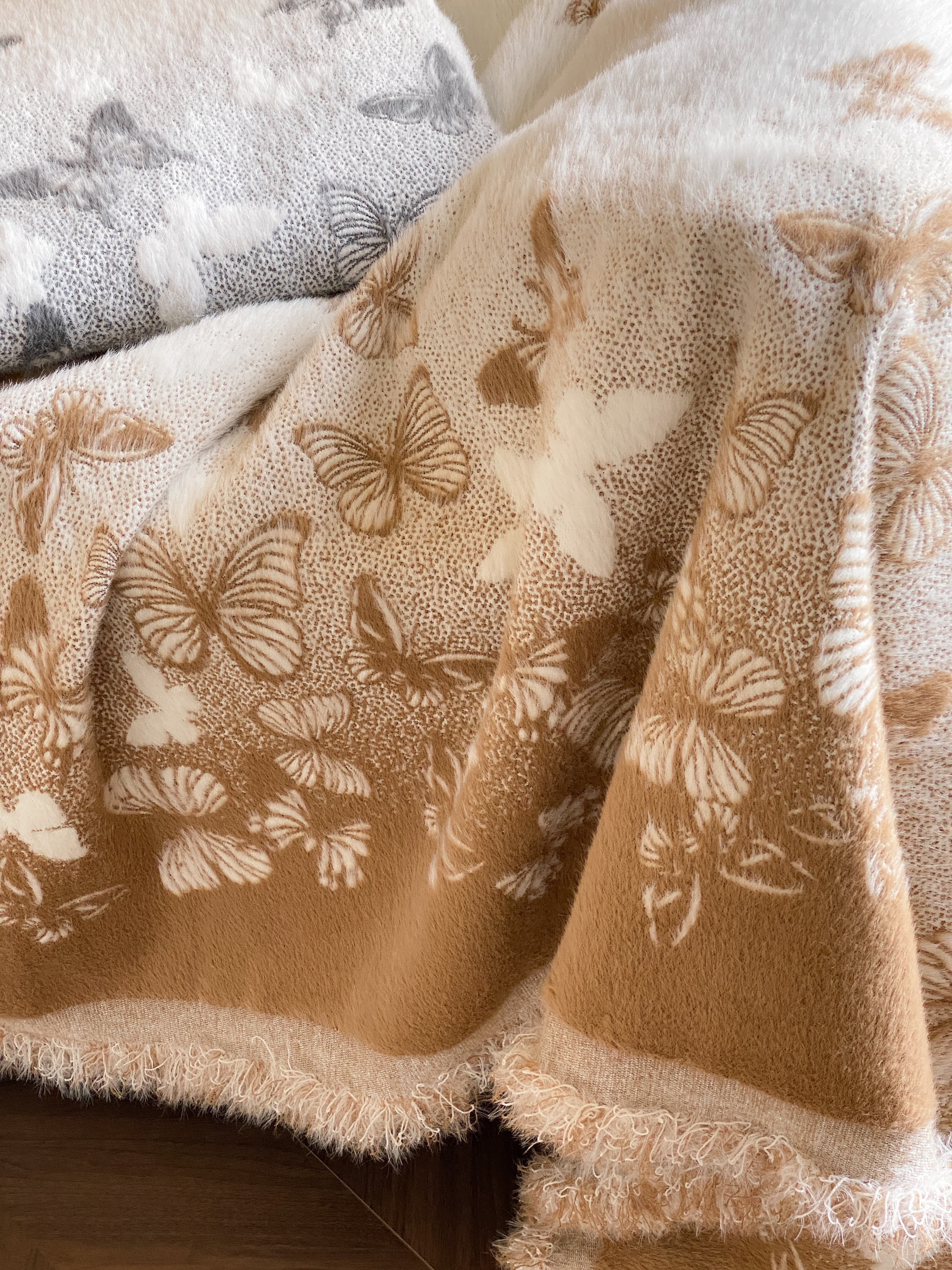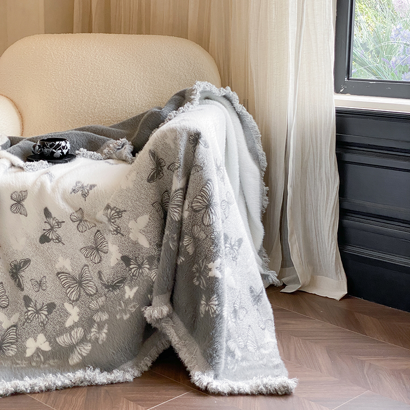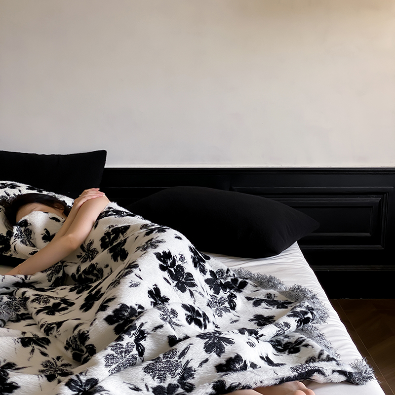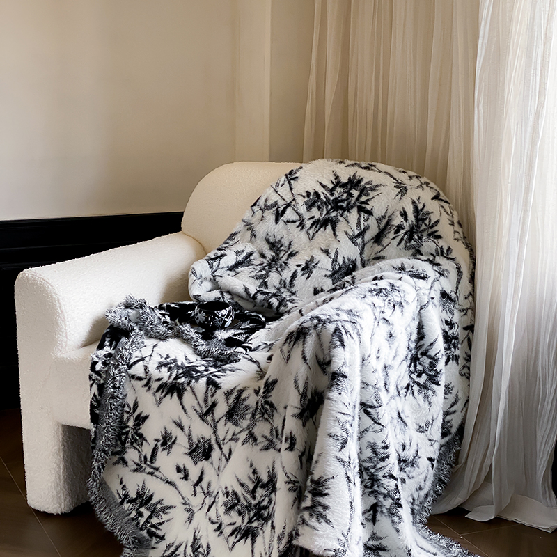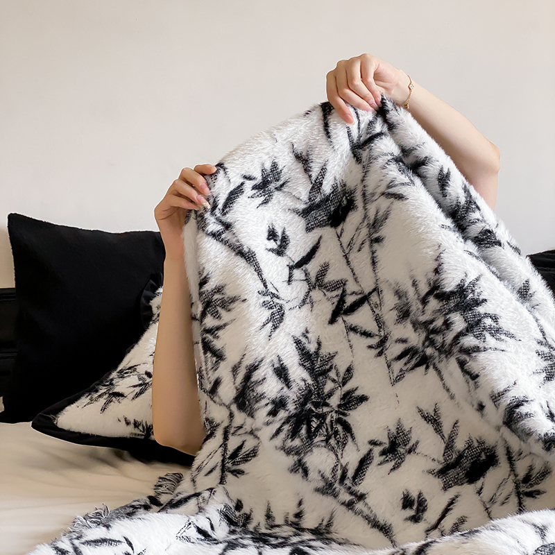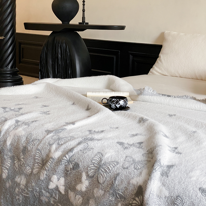 自然醒貂绒毛毯国风系列高端蝴蝶花卉长毛貂绒毛毯流苏毯双面盖毯保暖厚实秋冬单人毯MT