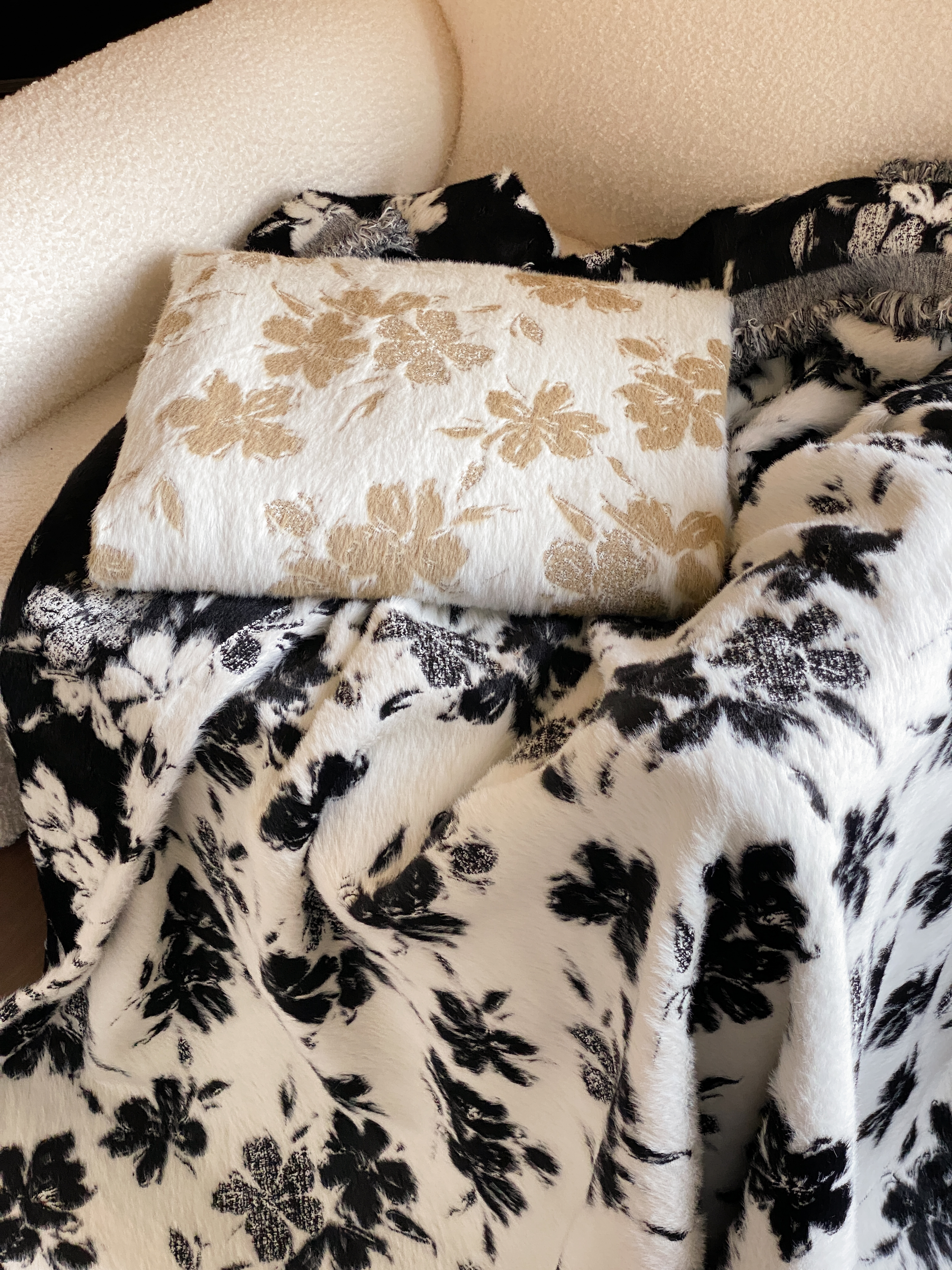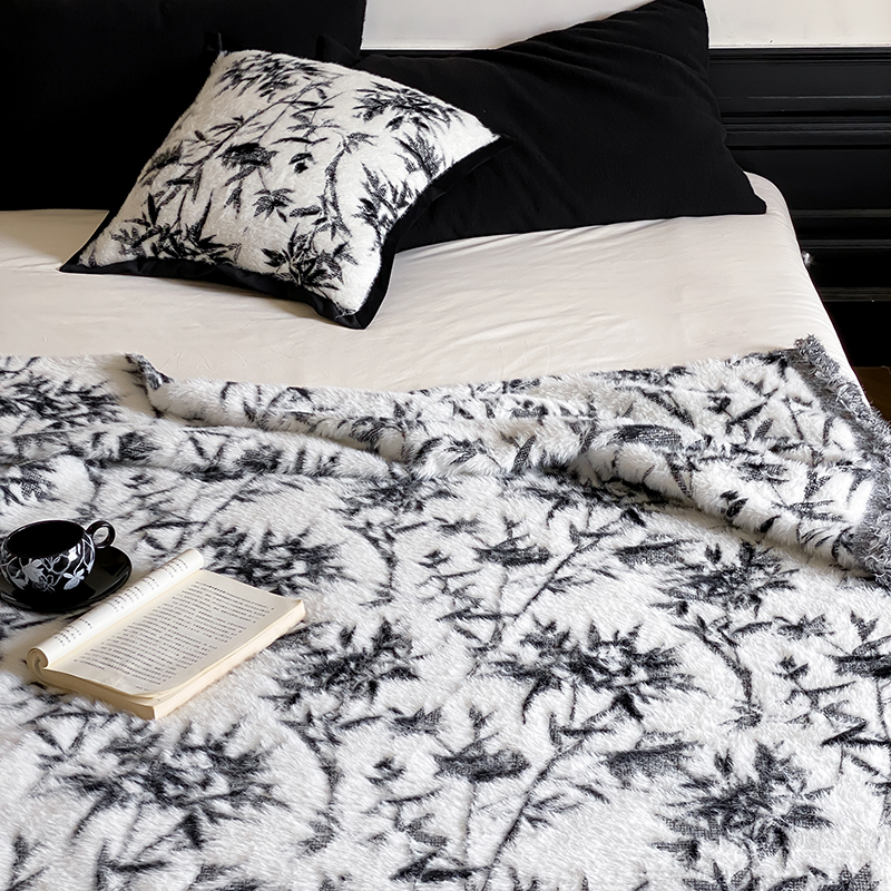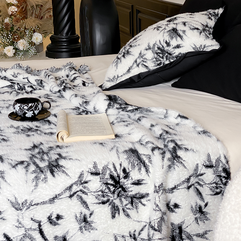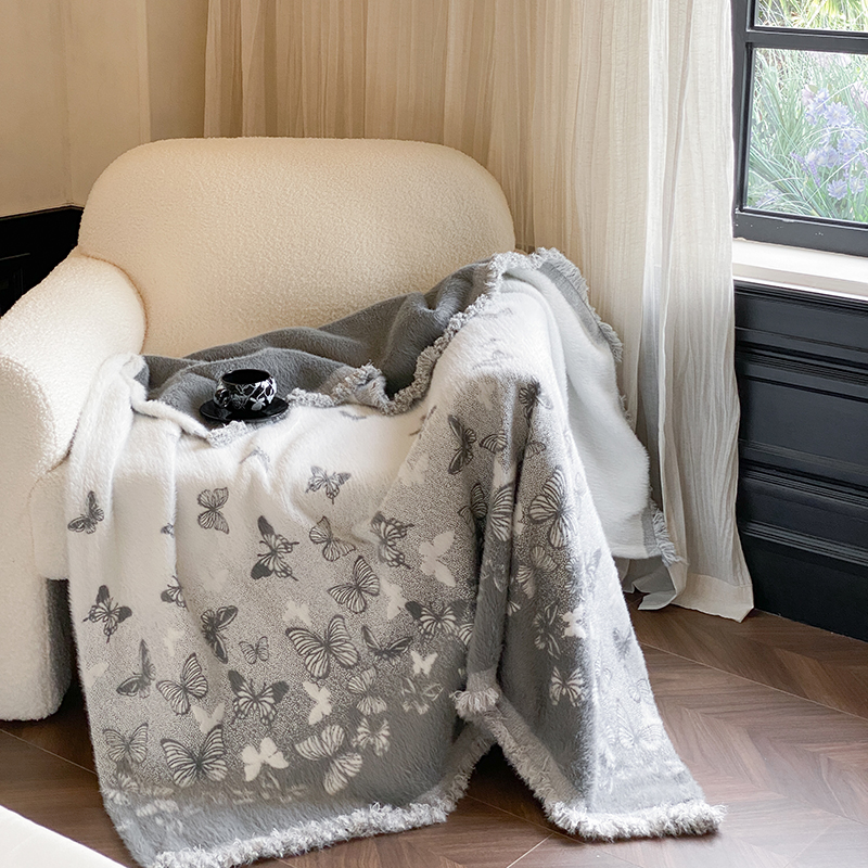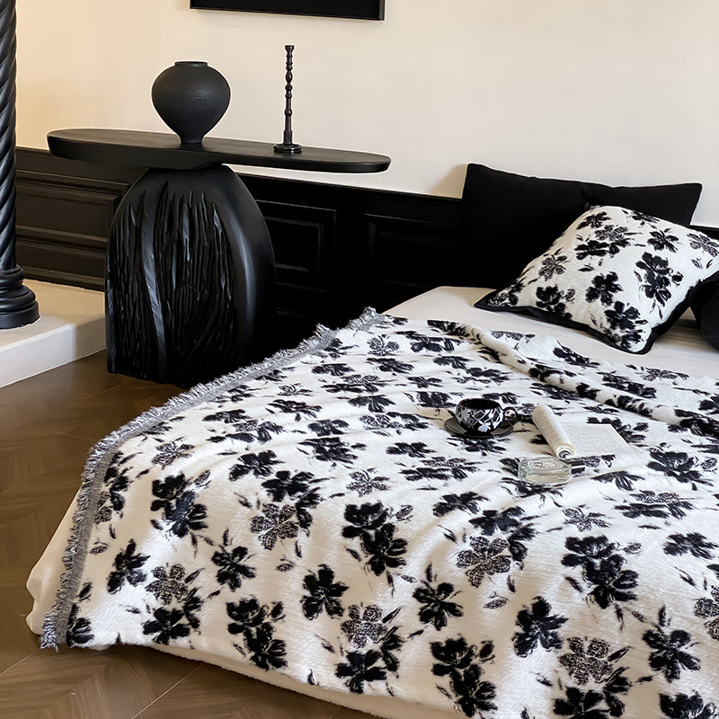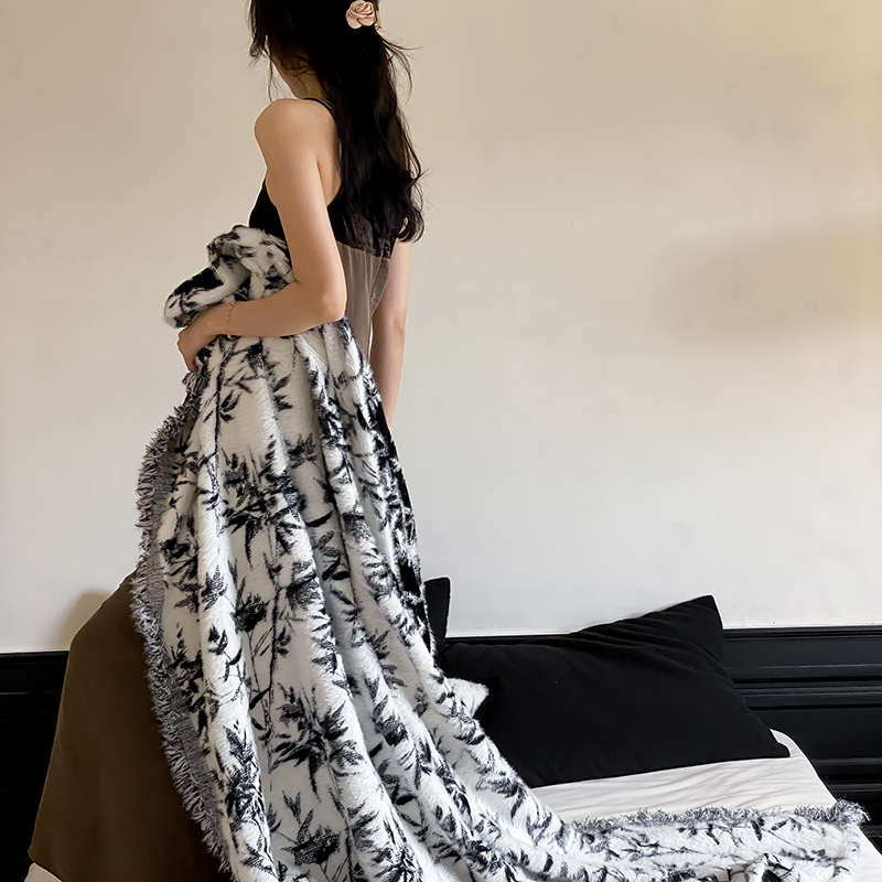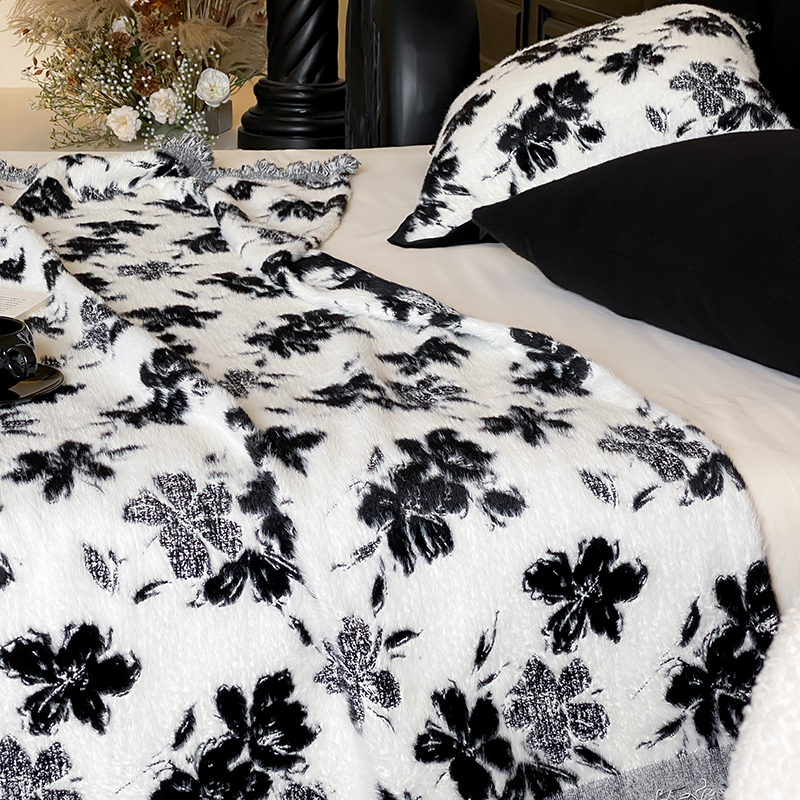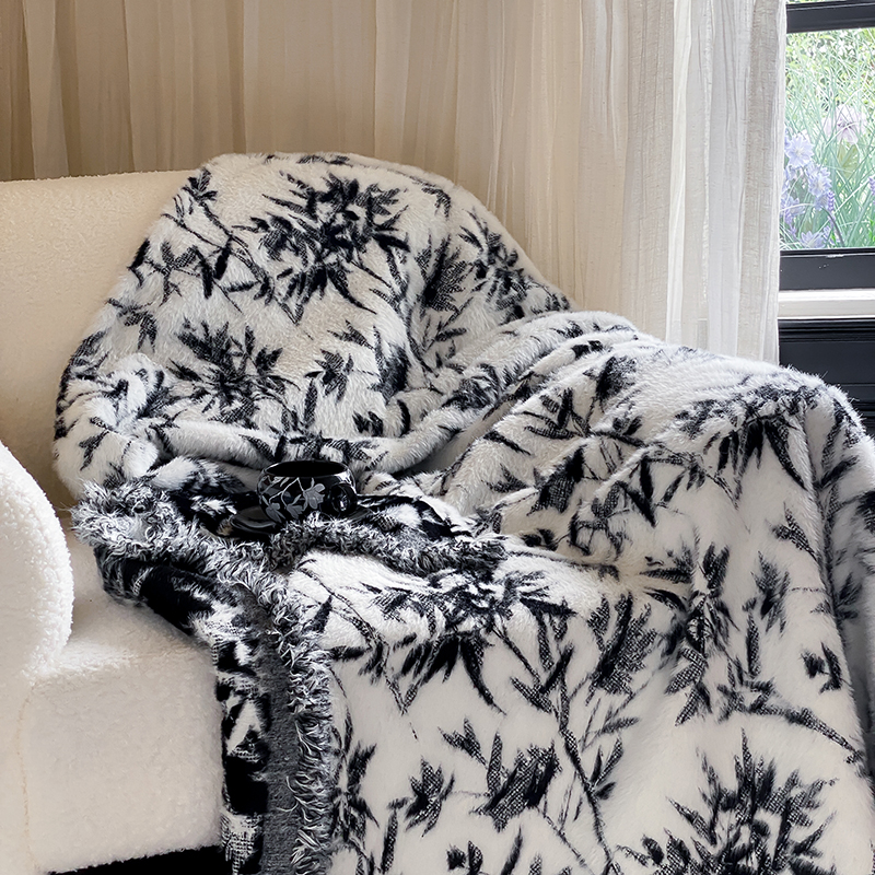自然醒貂绒毛毯国风系列高端蝴蝶花卉长毛貂绒毛毯流苏毯双面盖毯保暖厚实秋冬单人毯MT