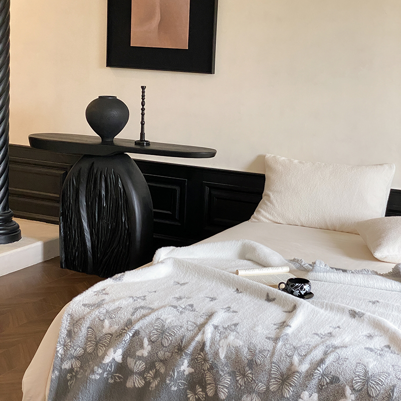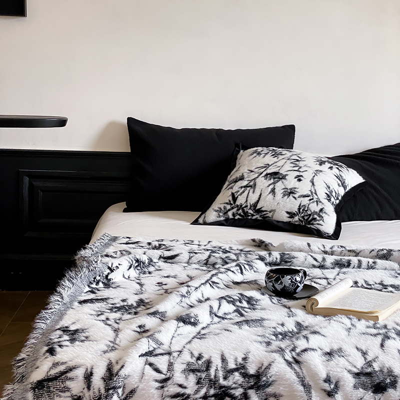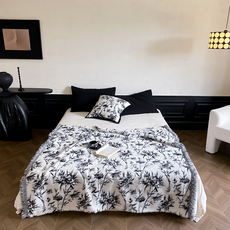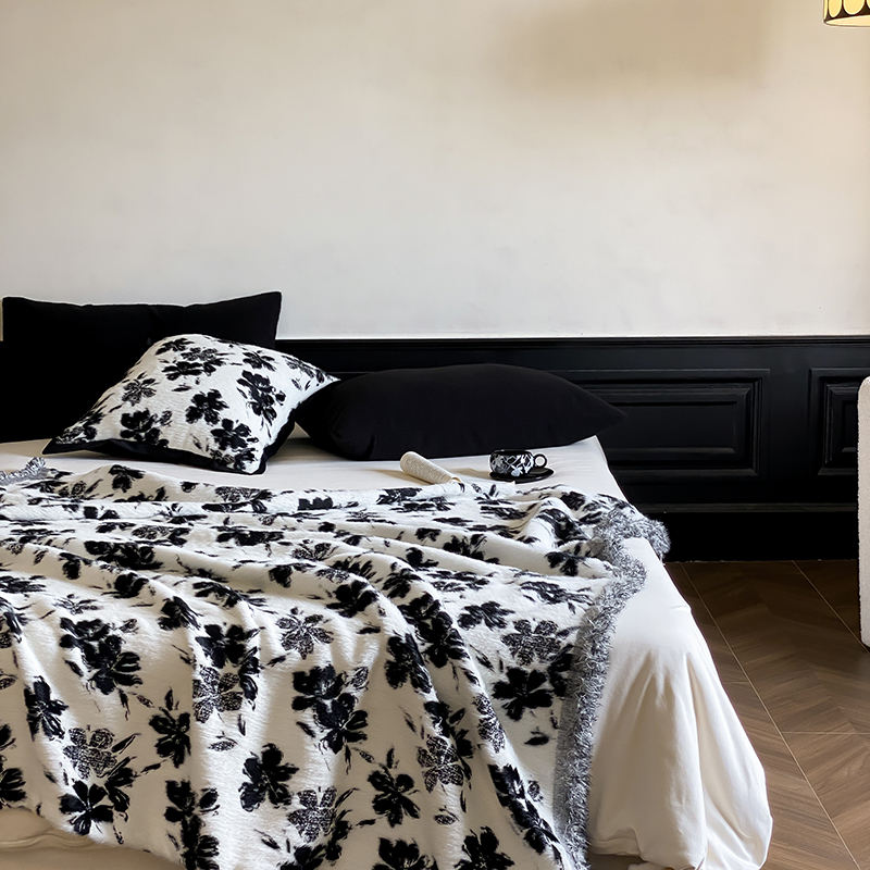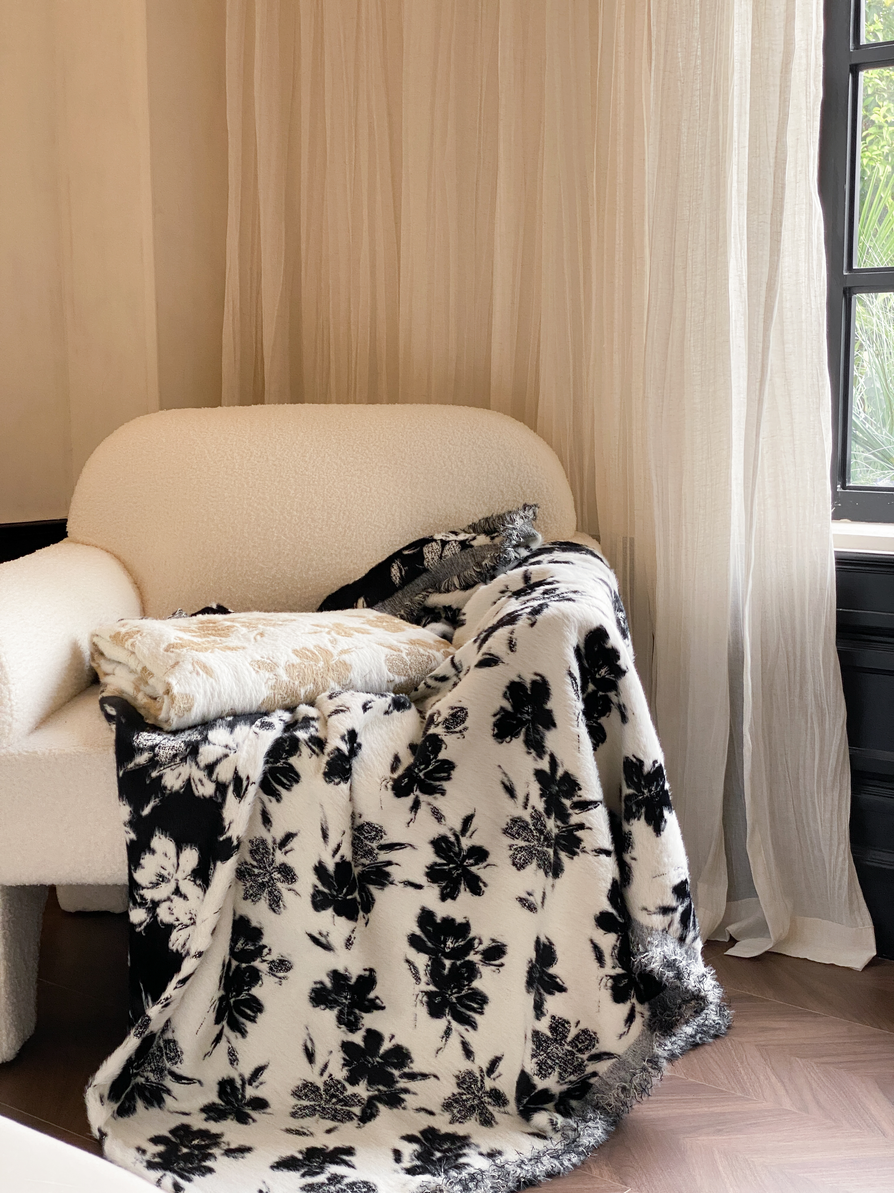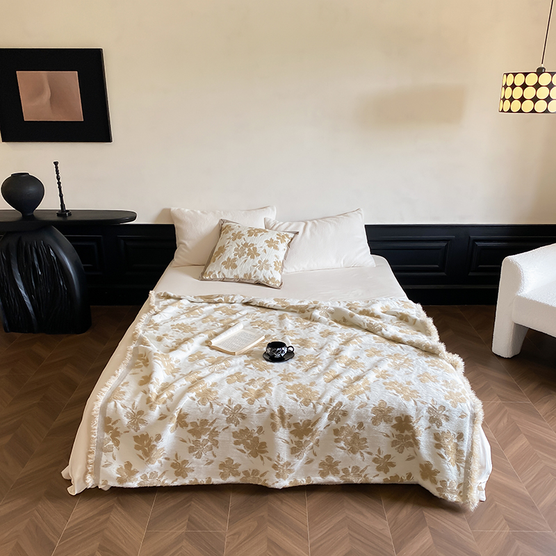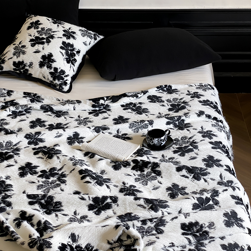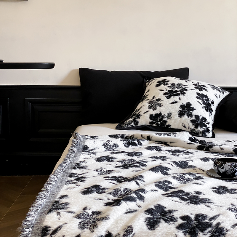 自然醒貂绒毛毯国风系列高端蝴蝶花卉长毛貂绒毛毯流苏毯双面盖毯保暖厚实秋冬单人毯MT