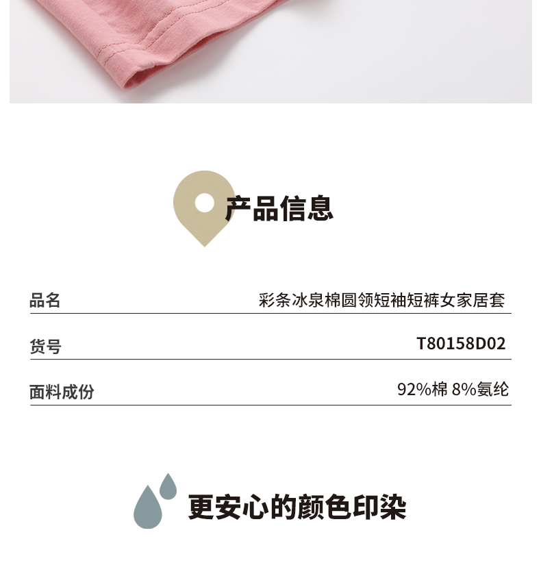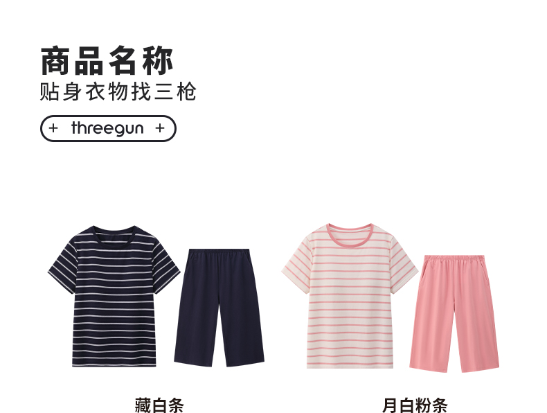 Threegun三枪 彩条冰泉棉圆领短袖短裤女家居套-T80158D02