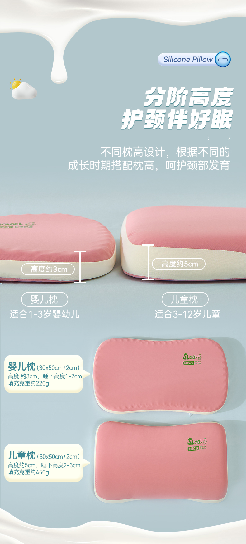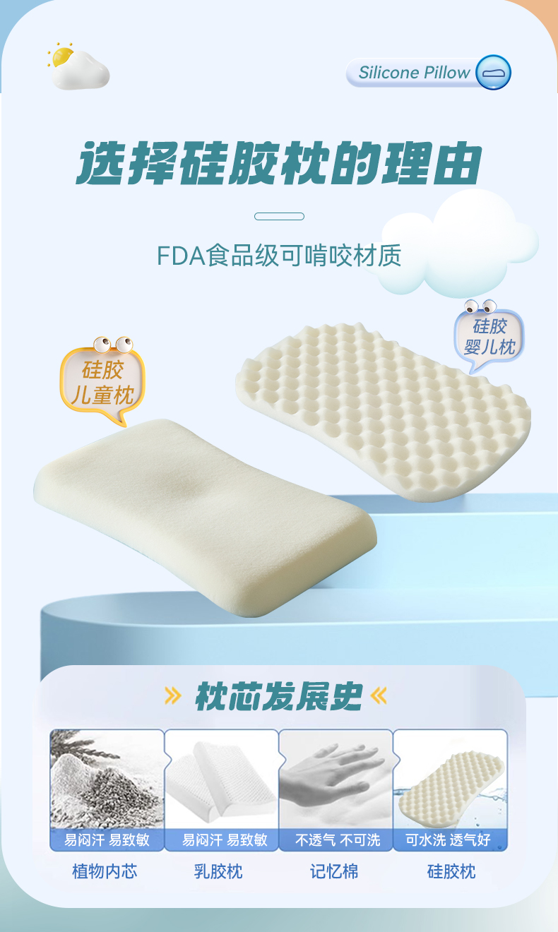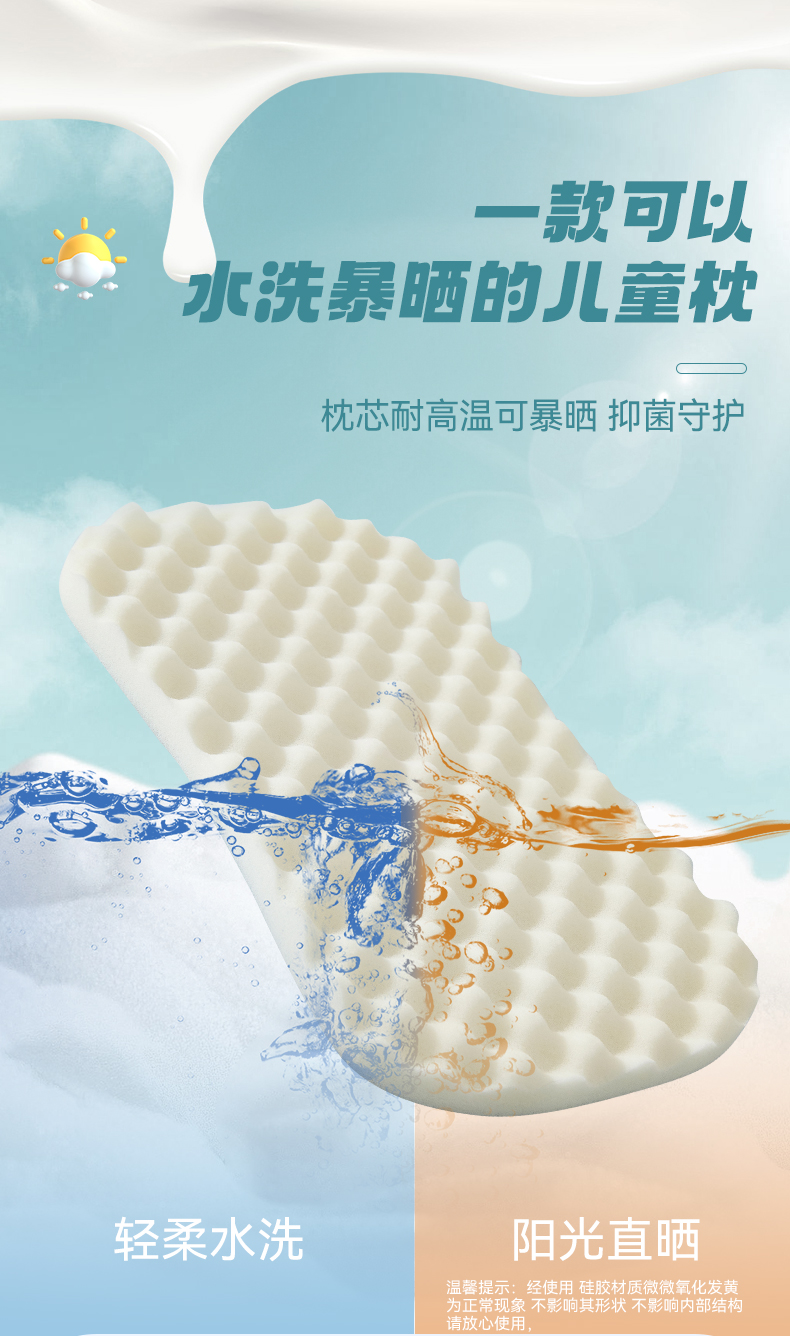 【双旦秒杀】自然醒A类食品级可洗可晒硅胶婴童枕头1-6岁以上可水洗婴儿枕芯宝宝小学生儿童专用枕XK(不参与优惠券)