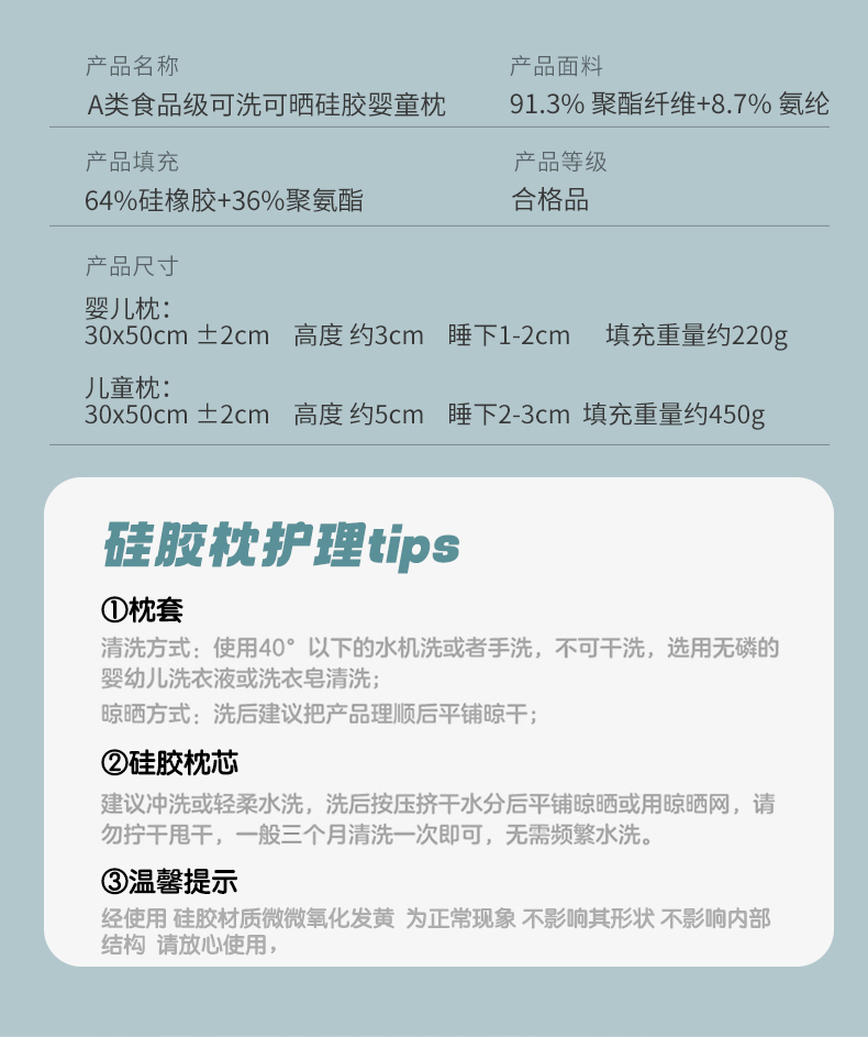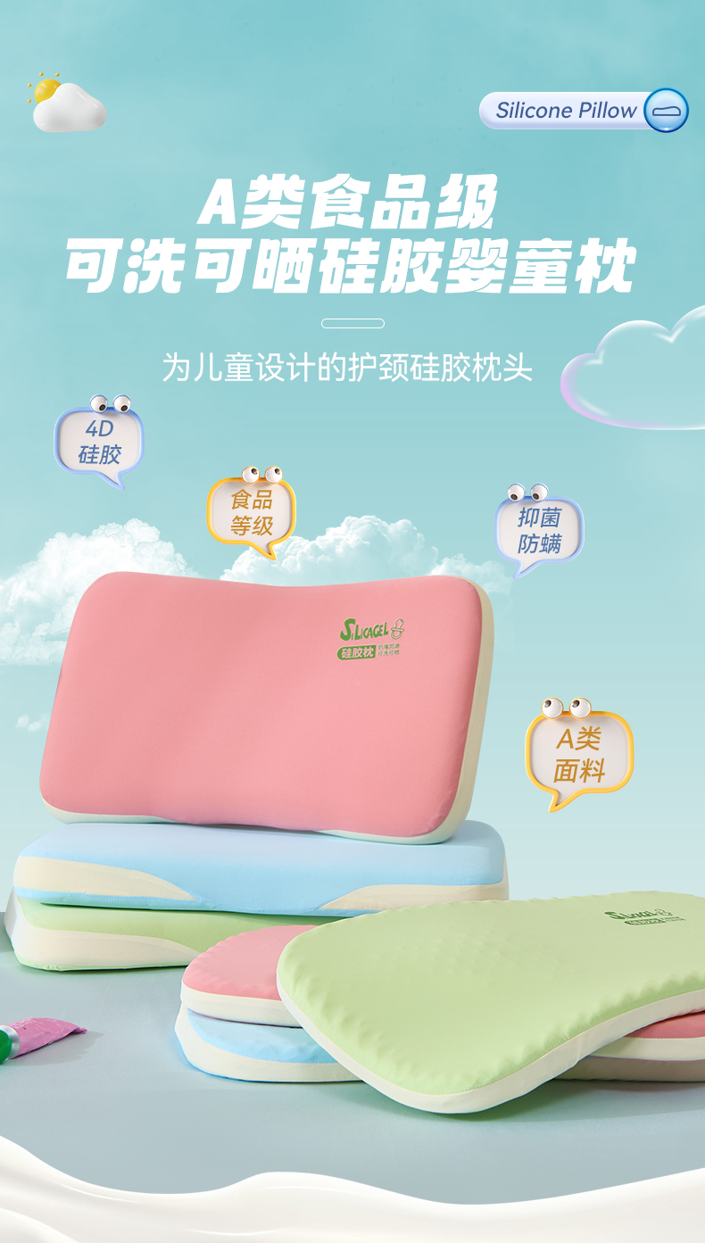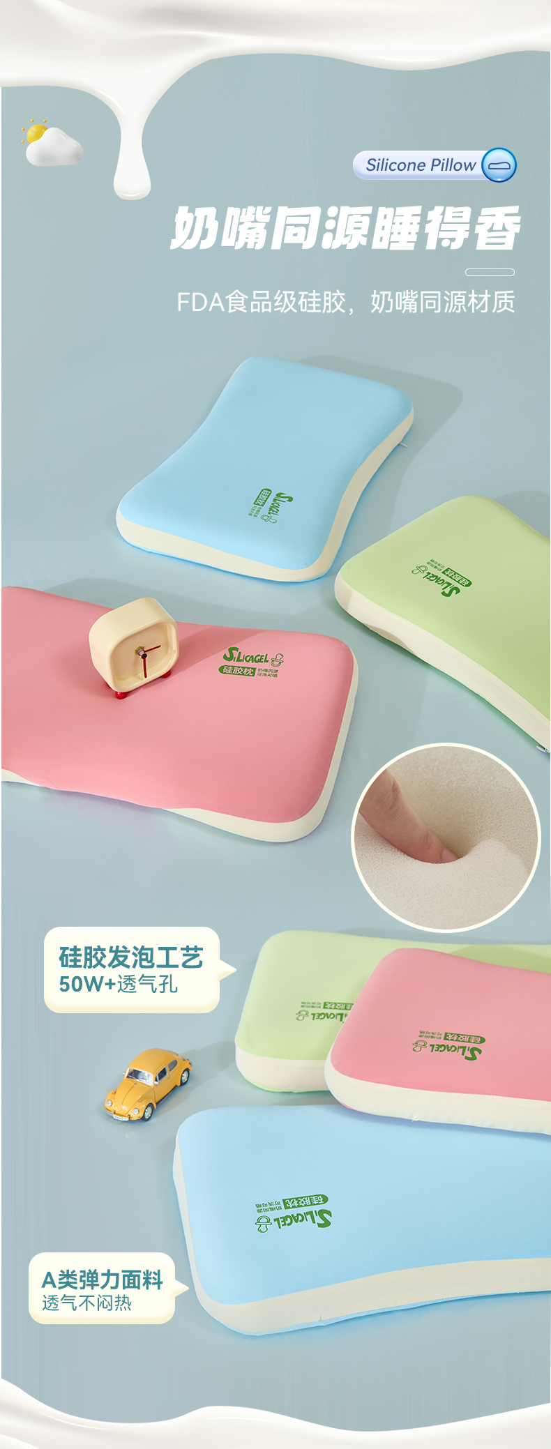 【双旦秒杀】自然醒A类食品级可洗可晒硅胶婴童枕头1-6岁以上可水洗婴儿枕芯宝宝小学生儿童专用枕XK(不参与优惠券)