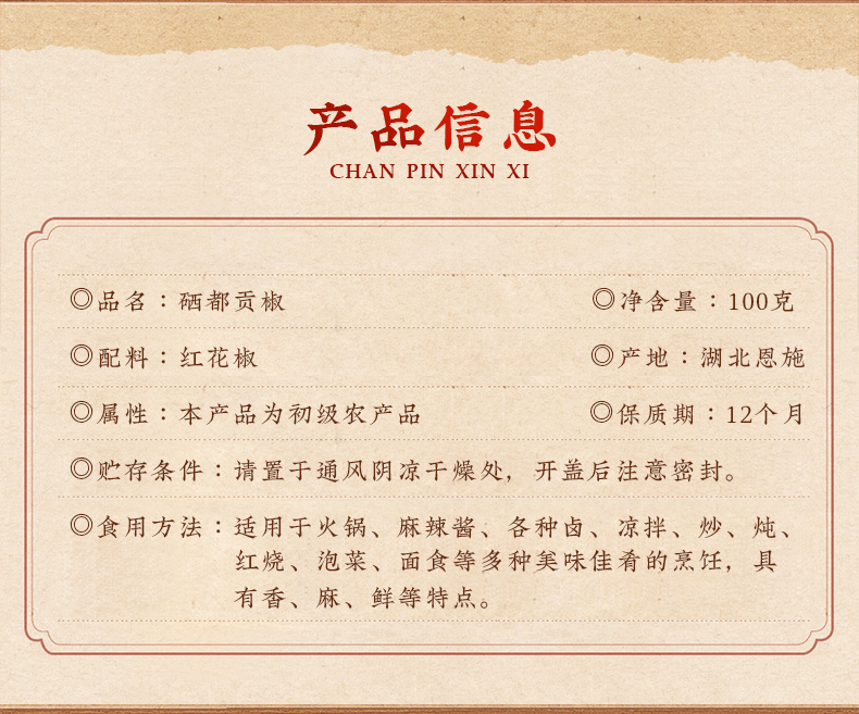 聼瀑崖 湖北恩施硒都贡椒花椒佐料调味品 100g/罐