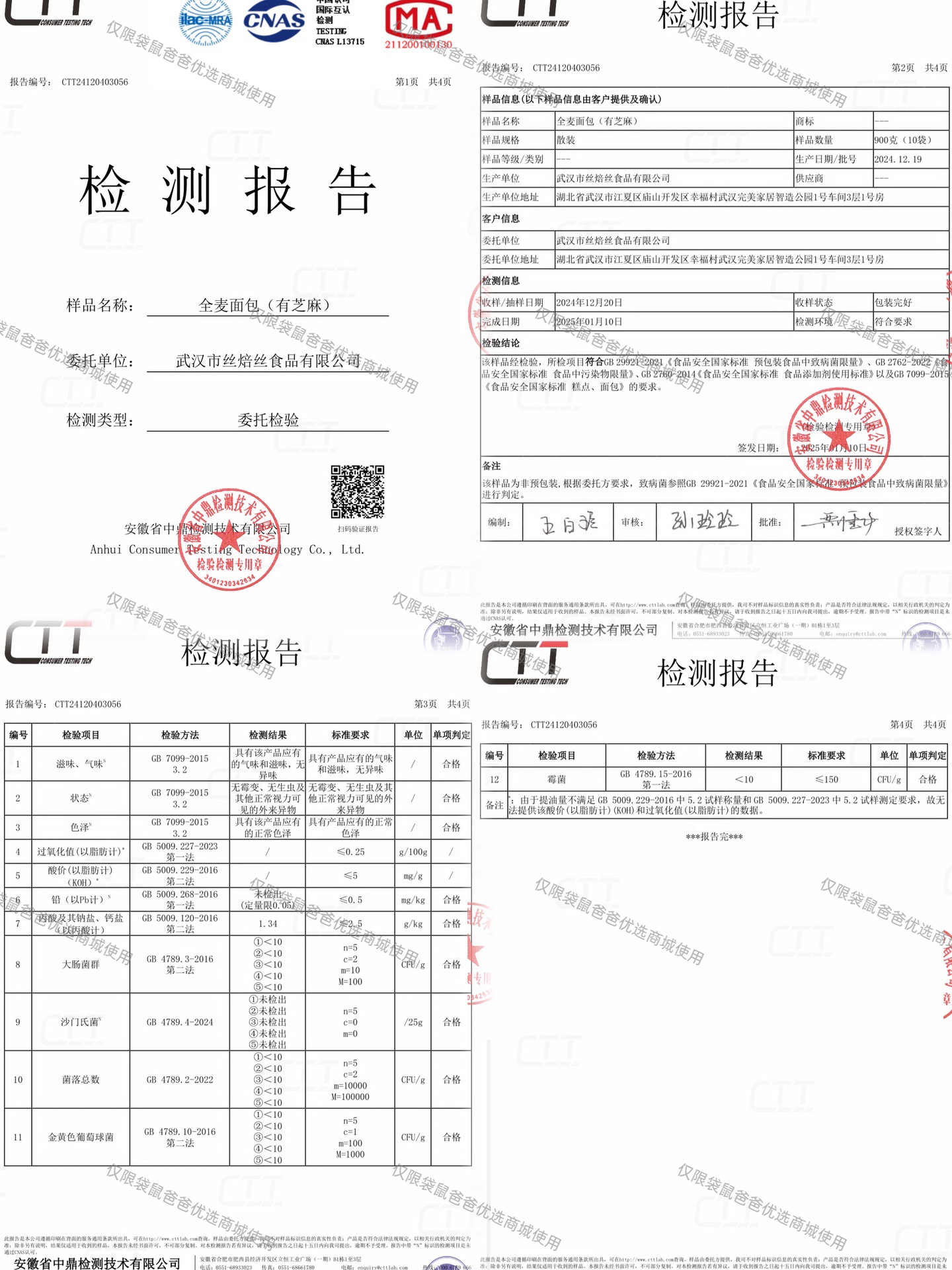产品:全麦经典芝麻面包600g/箱(7小袋,每袋2片)