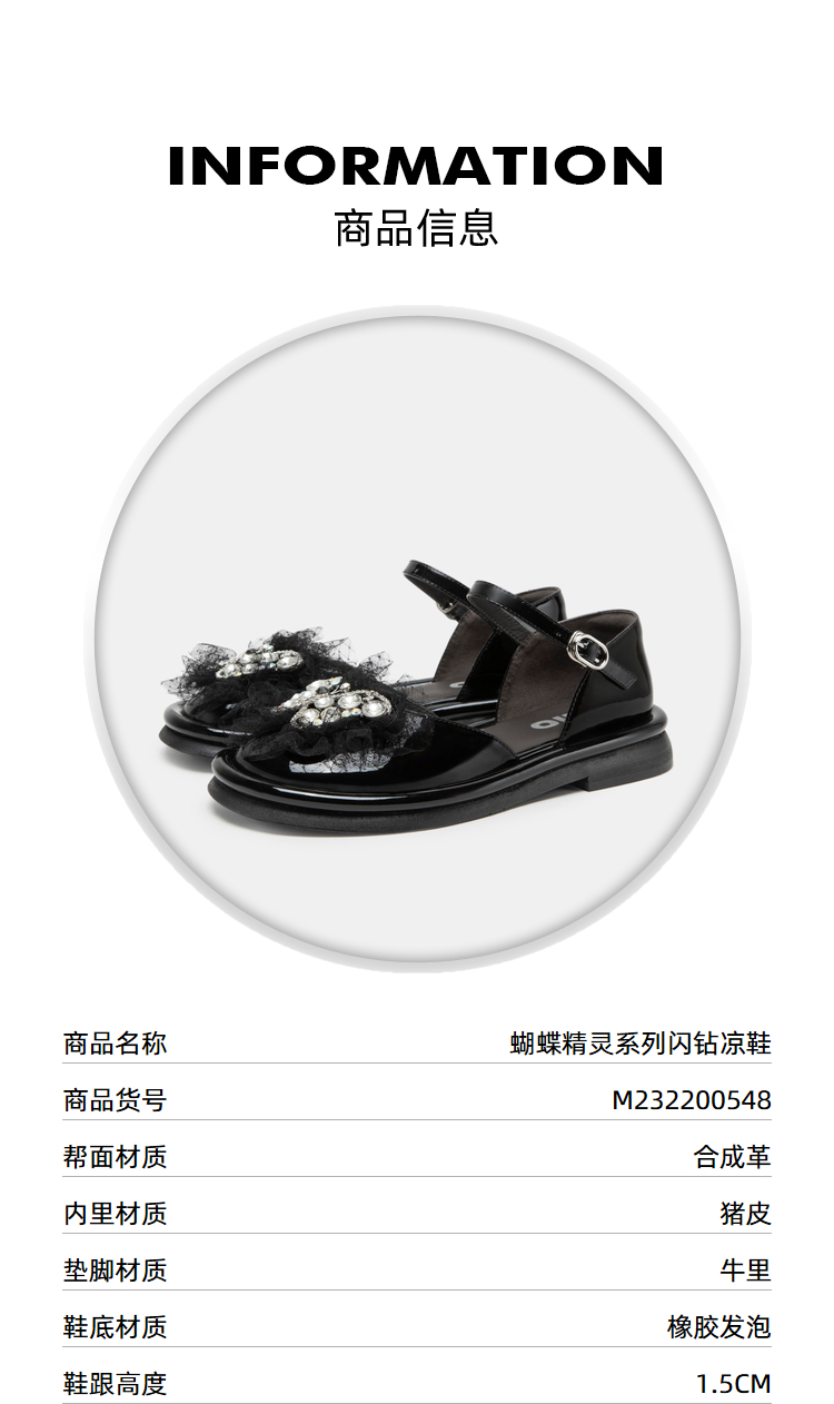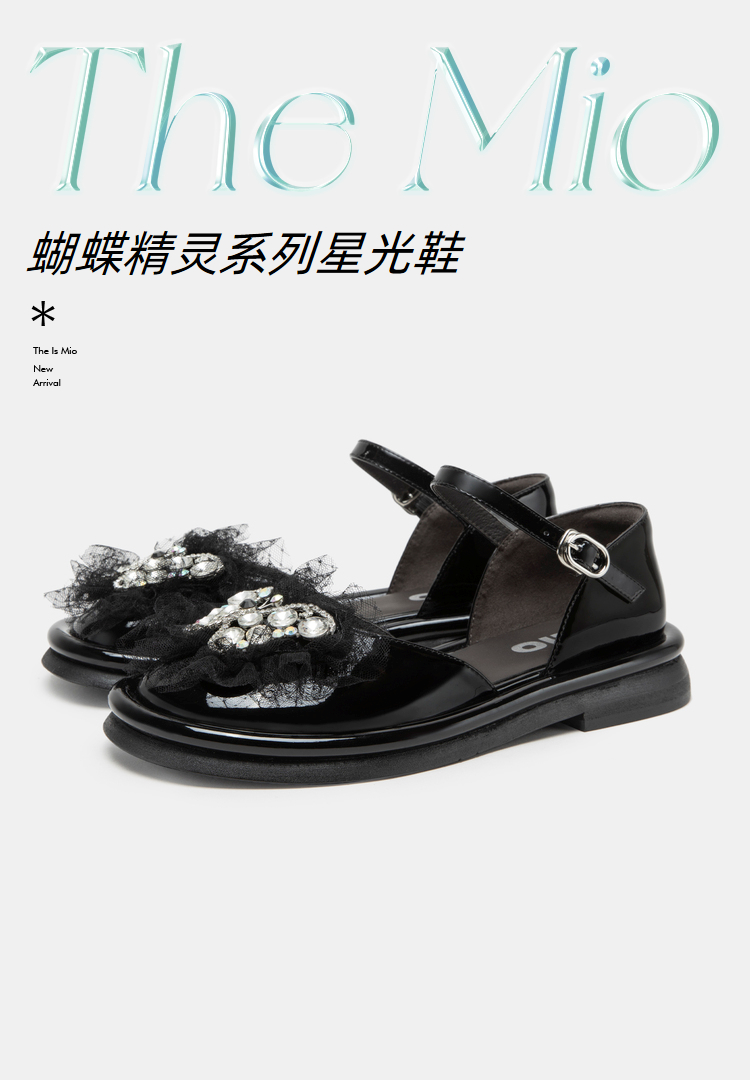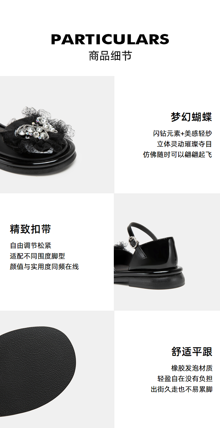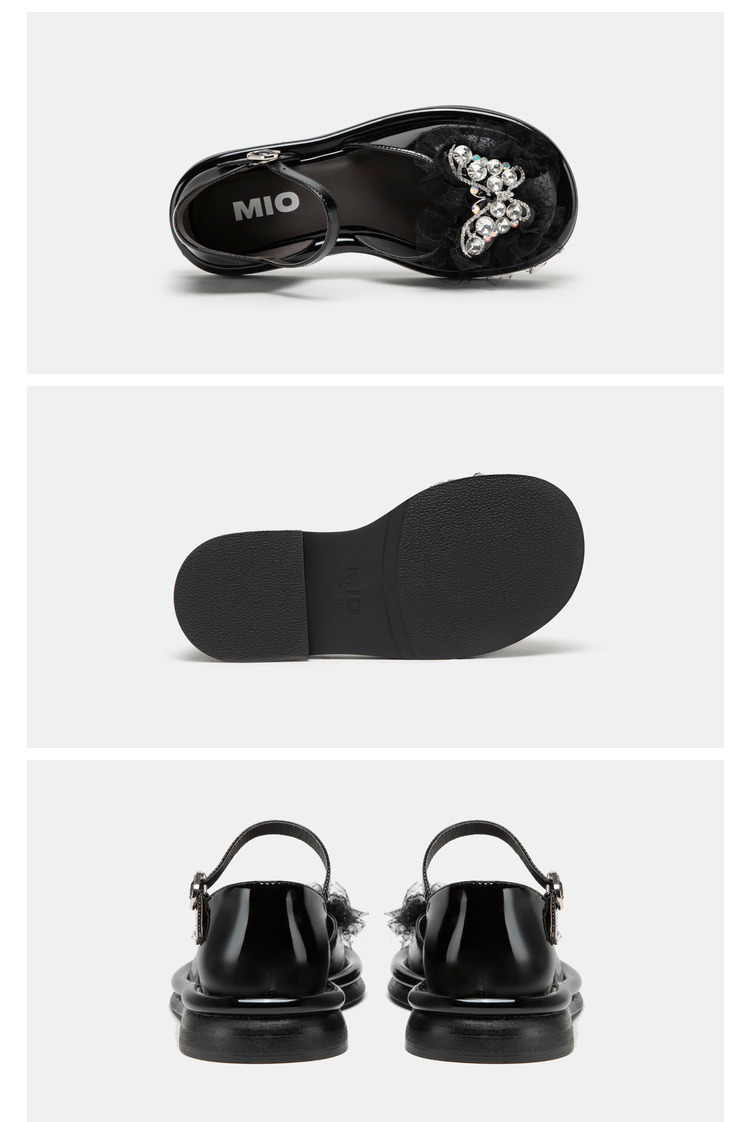 MIO米奥夏季圆头半凉鞋平跟星光鞋甜美风蝴蝶钻饰时装凉鞋女鞋M232200548