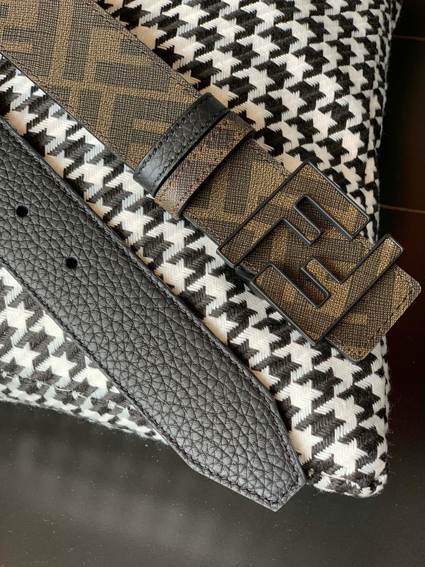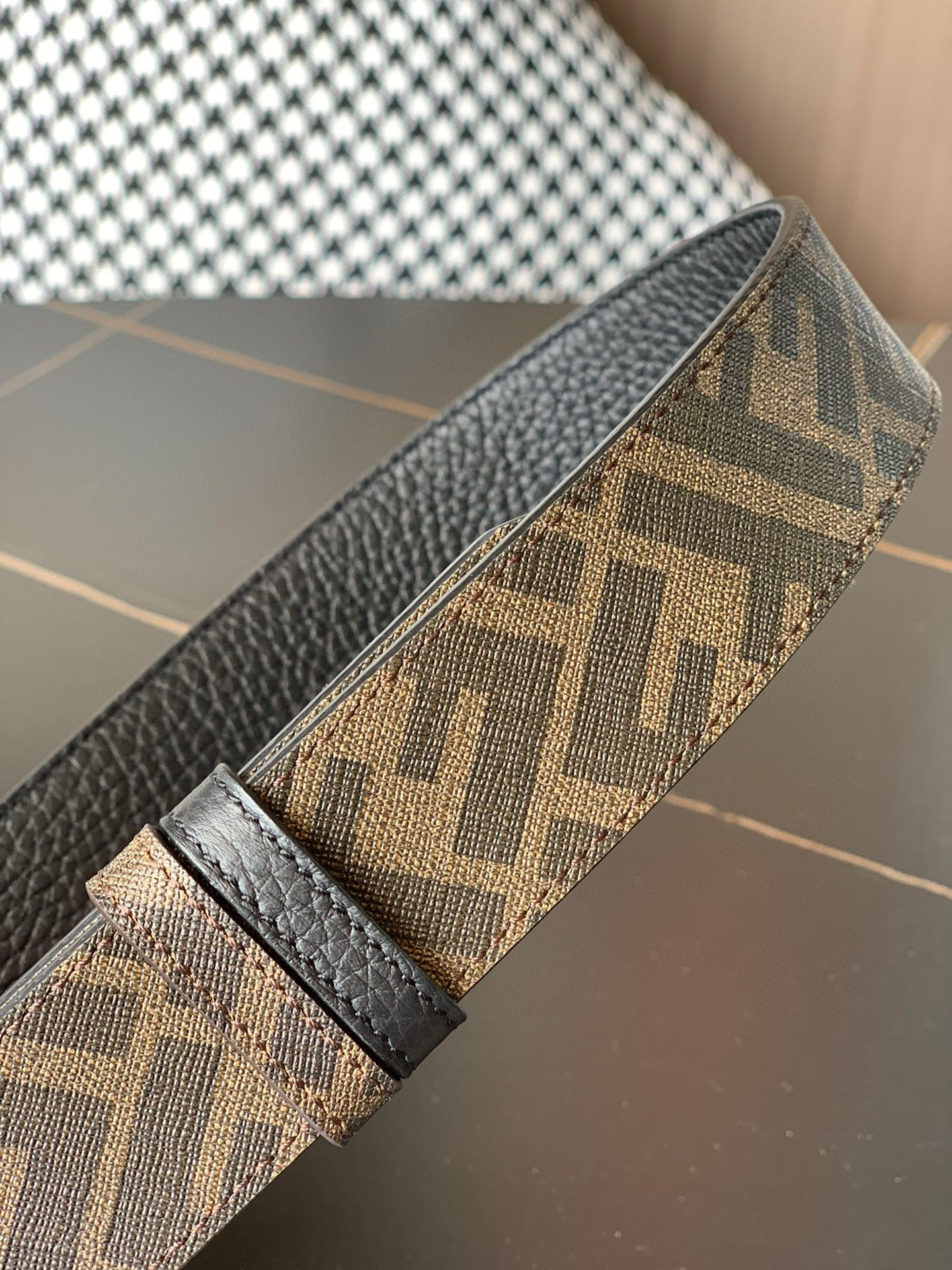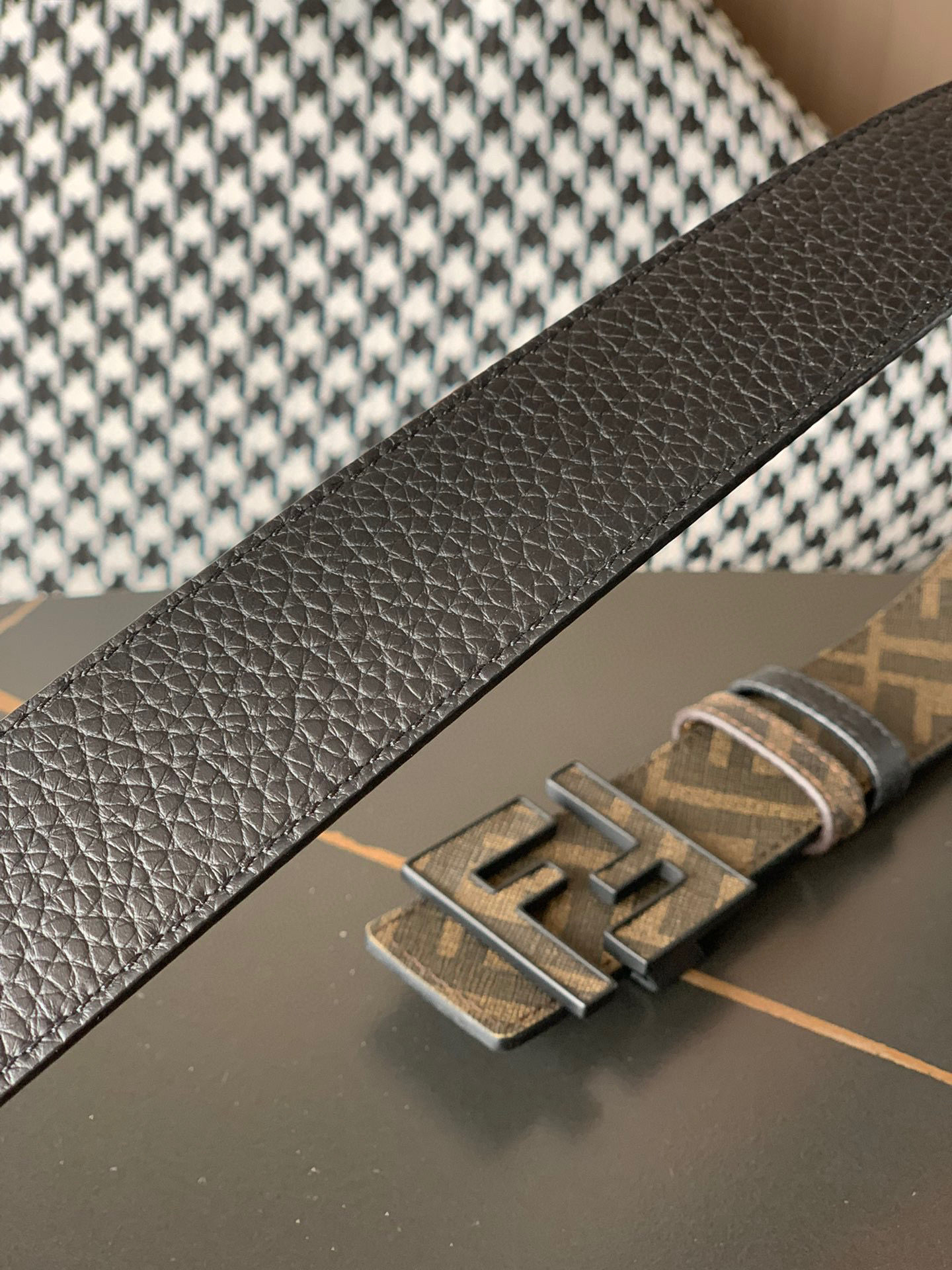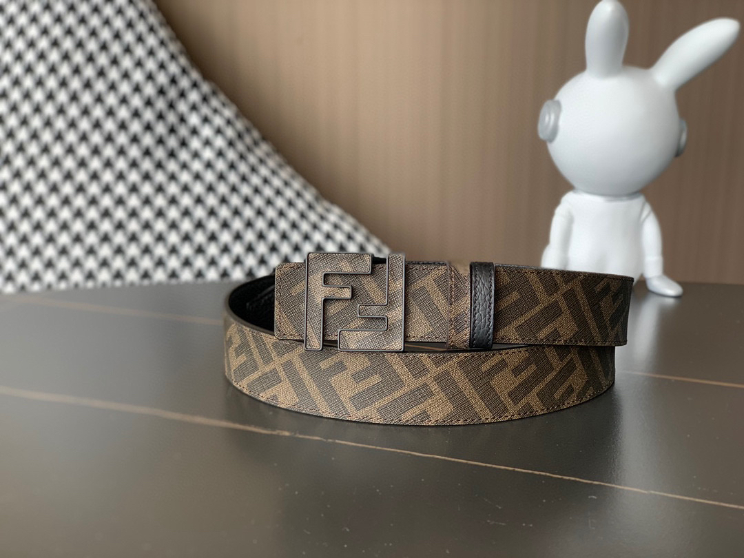 原单……FENDI (芬迪)家族迎来新一季男士全新作品 宽度3.5cm 采用进口意大利小牛皮 FF图案标志双面使用 搭配双F按钉搭扣