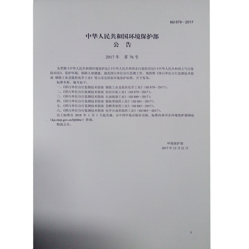 HJ879-2017 排污单位自行监测技术指南 纺织印染工业
