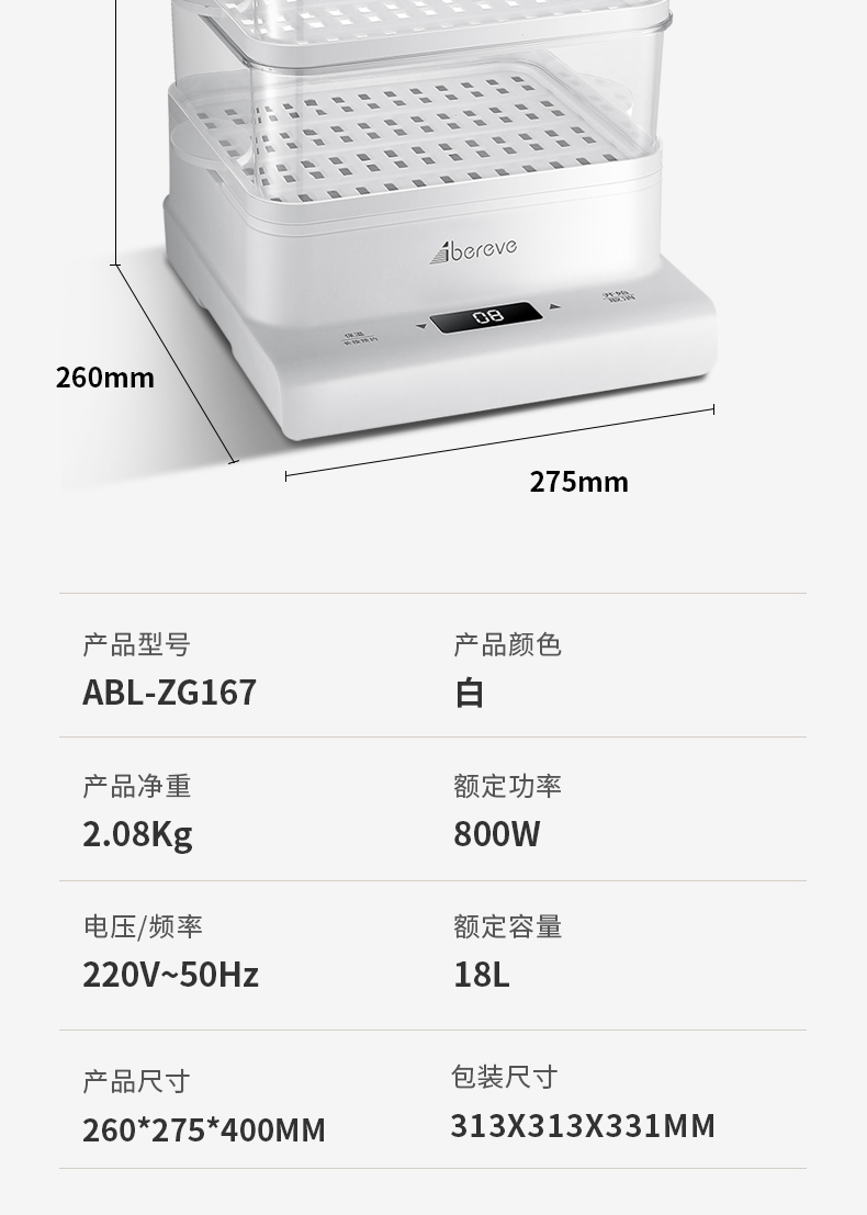 艾贝丽 | 电蒸锅ABL-ZG167 商品图2