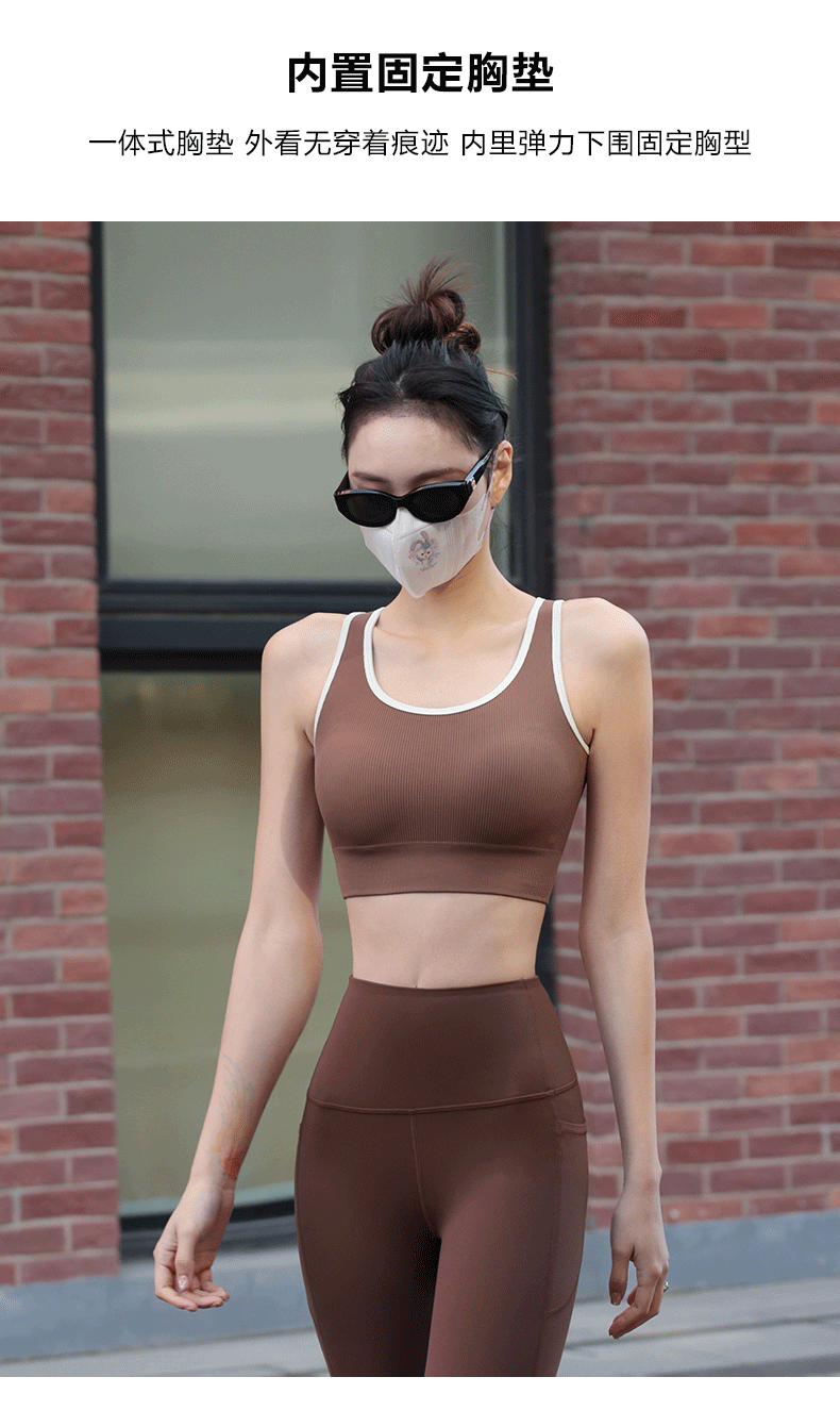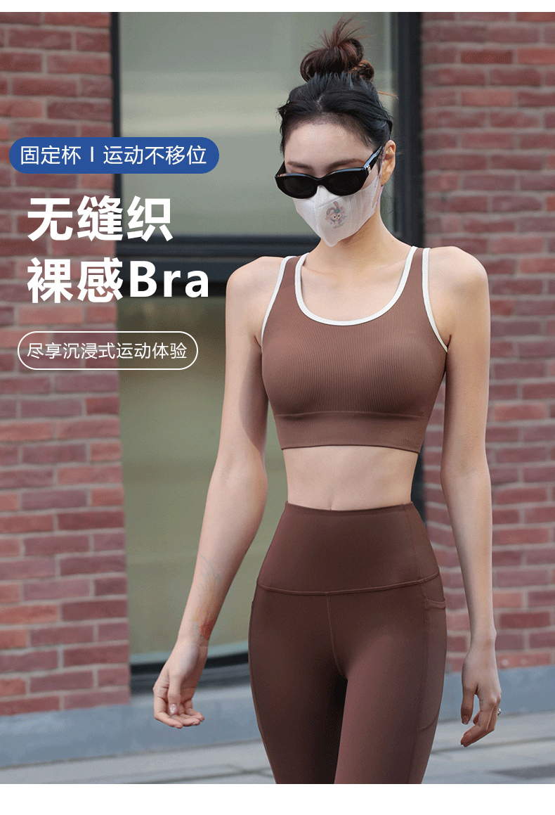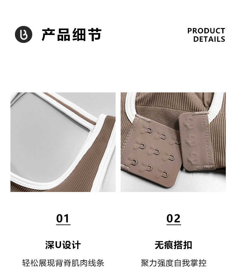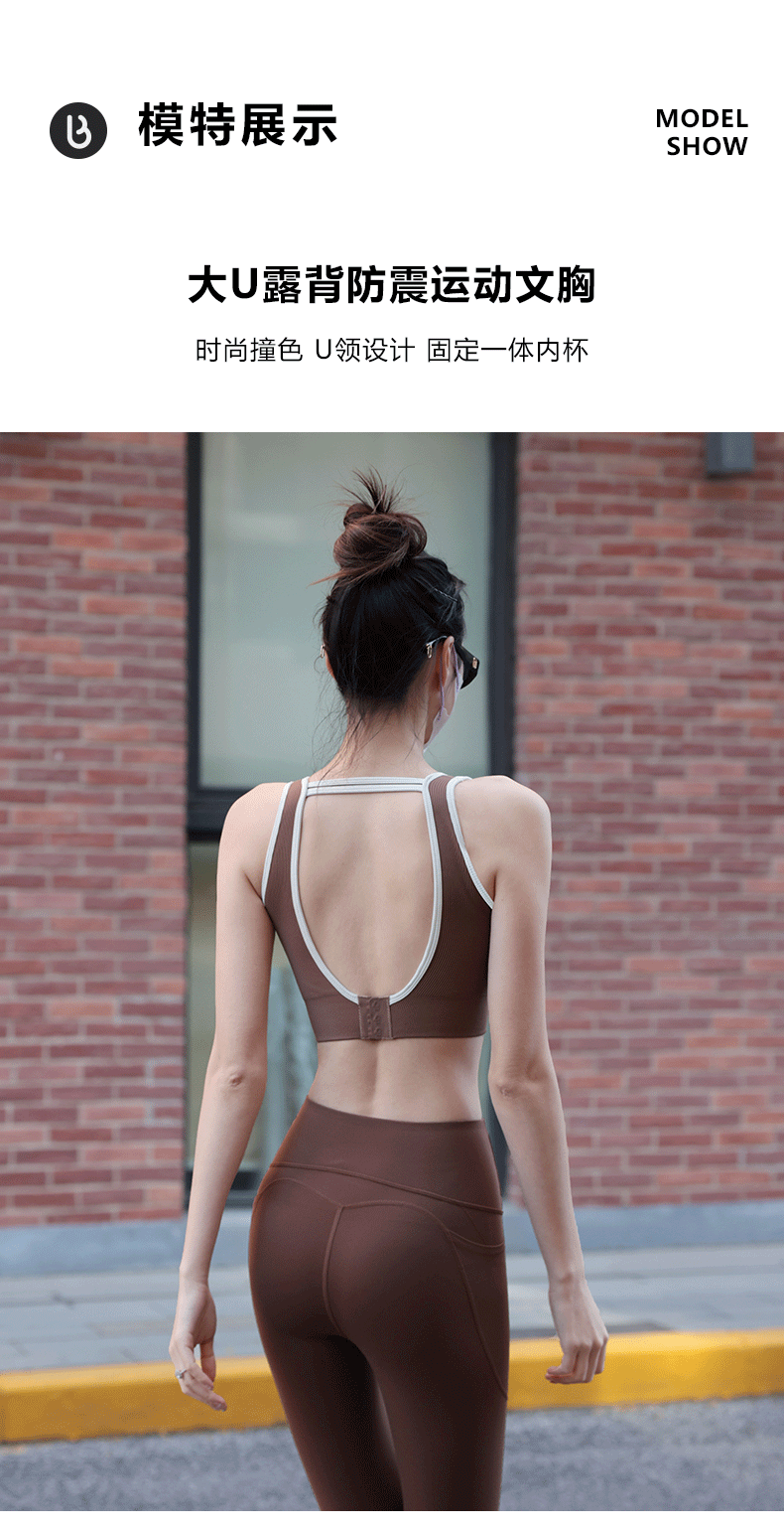 beemen 一体杯 高强度运动内衣 搭扣脱穿 U型美背 瑜伽健身背心 跑步跳操内衣