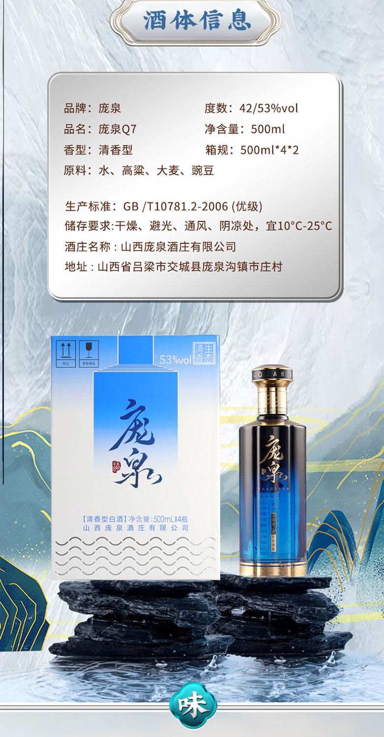 【加企微有优惠】庞泉Q7清香型白酒53度500ml*8箱装纯粮食酒山西酒庄老酒礼盒装