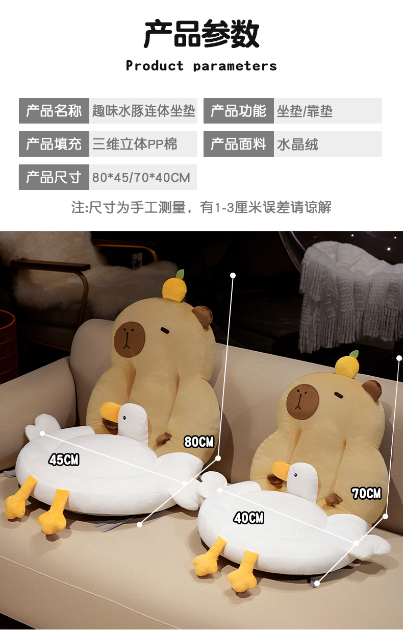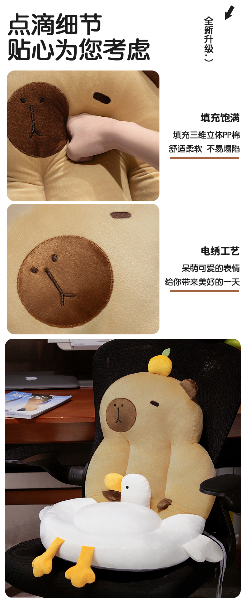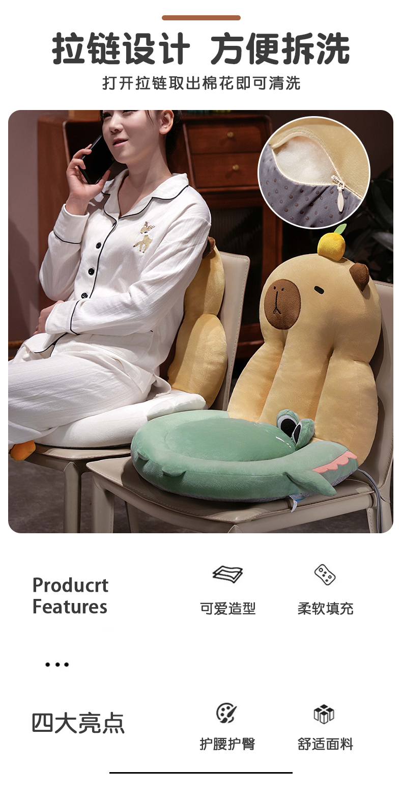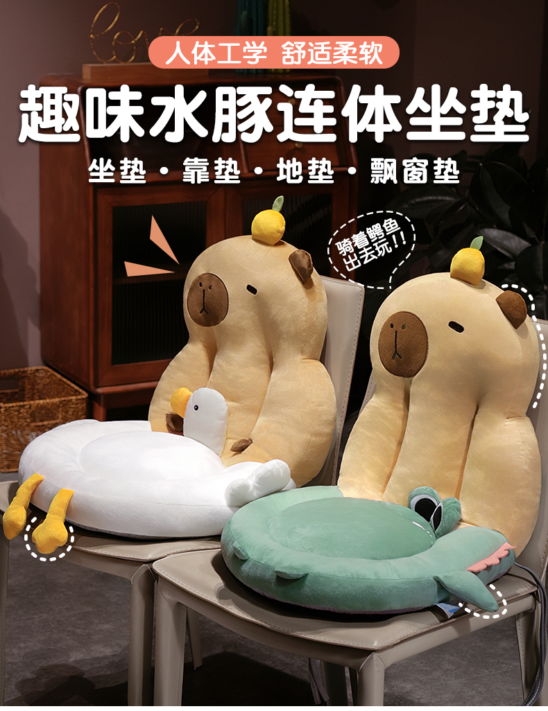 自然醒圆形水豚立体坐垫靠背一体办公室久坐屁垫护腰椅子垫QYL
