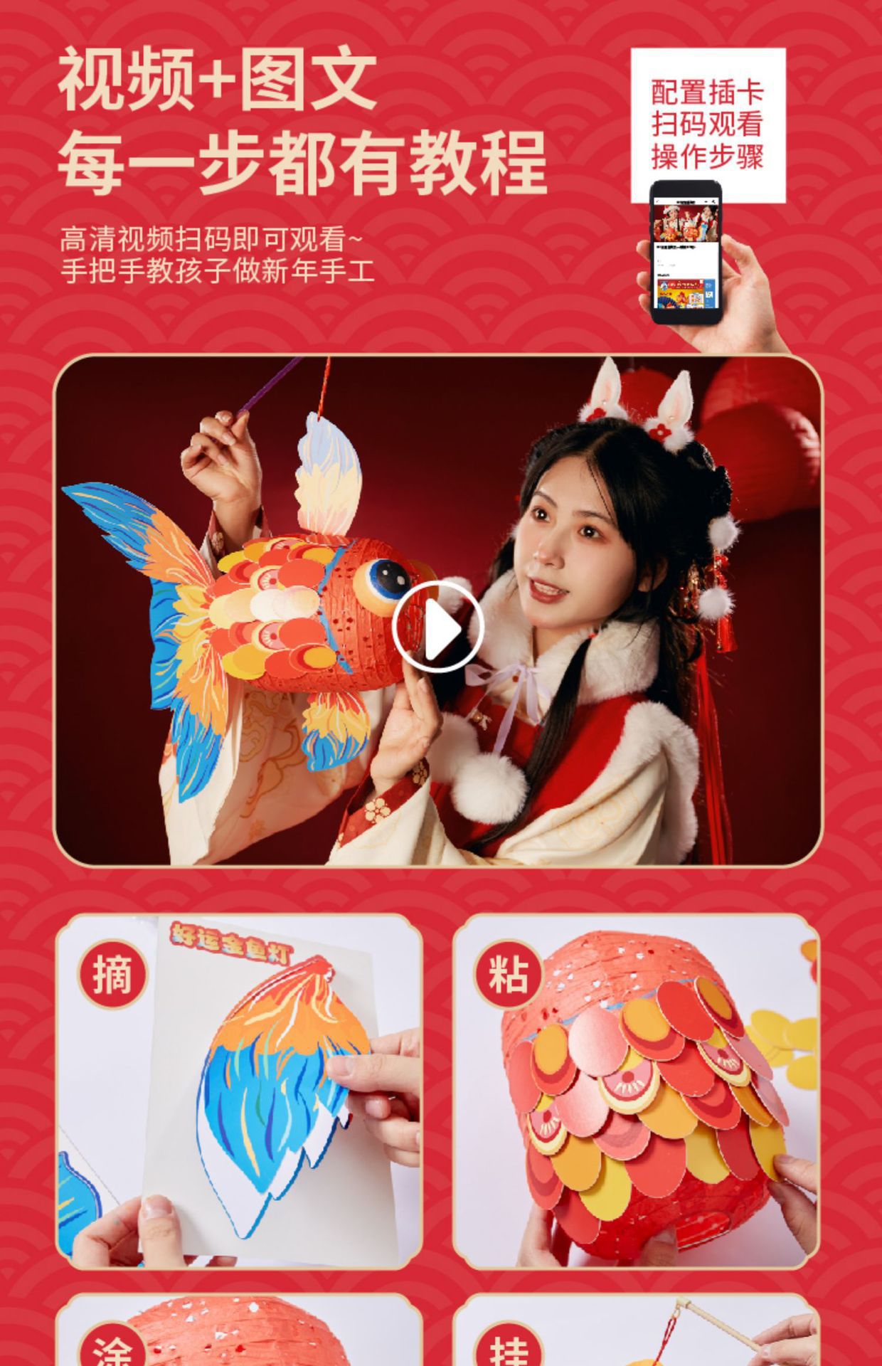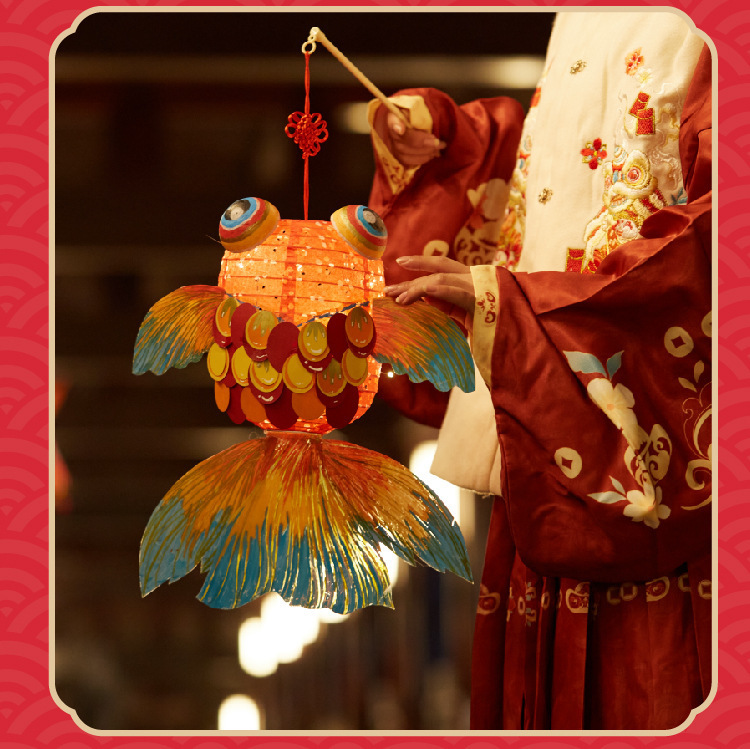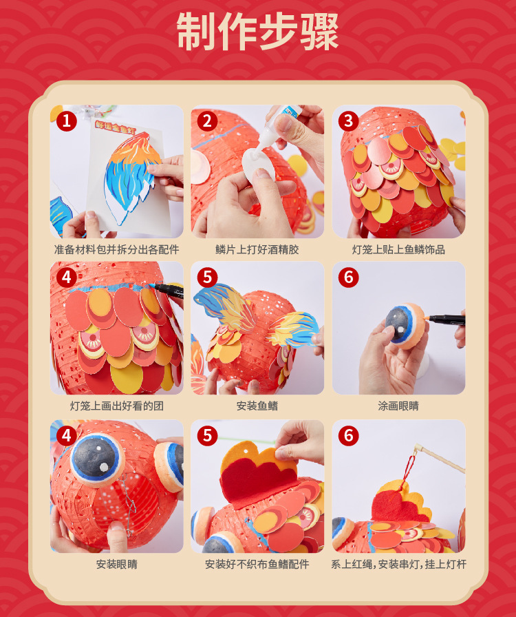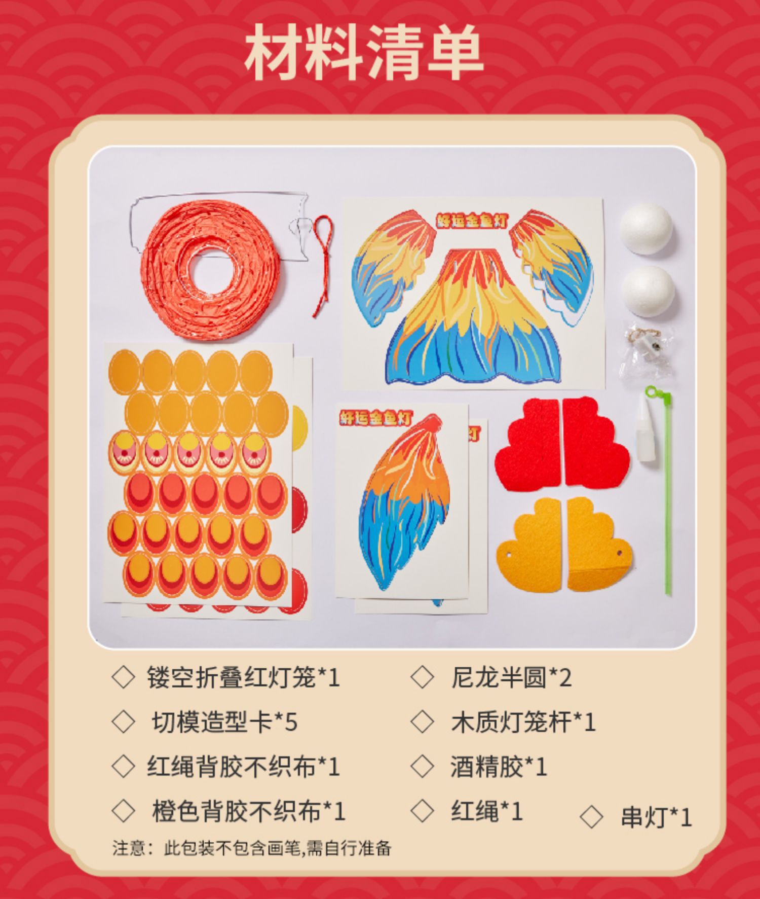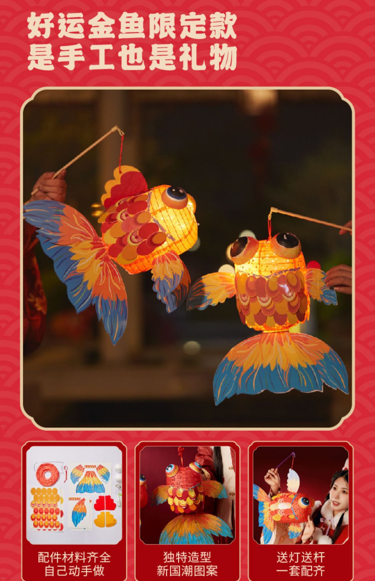 中秋节锦鲤金鱼灯笼手工diy材料包古风手提发光小花灯纸灯笼摆摊