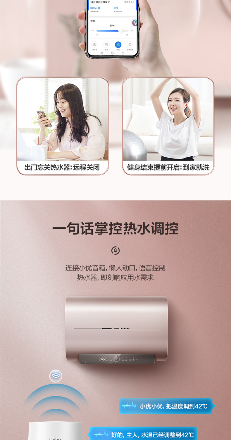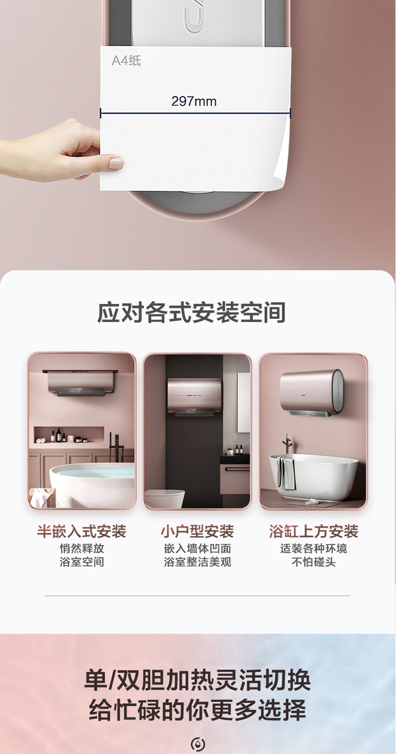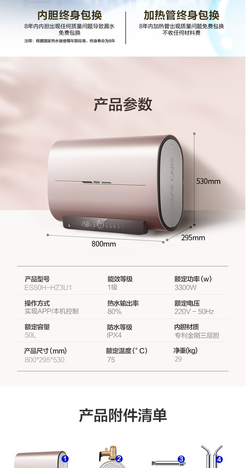 海尔电热水器扁桶超薄双胆变频加热速热ES50H-HZ3U1