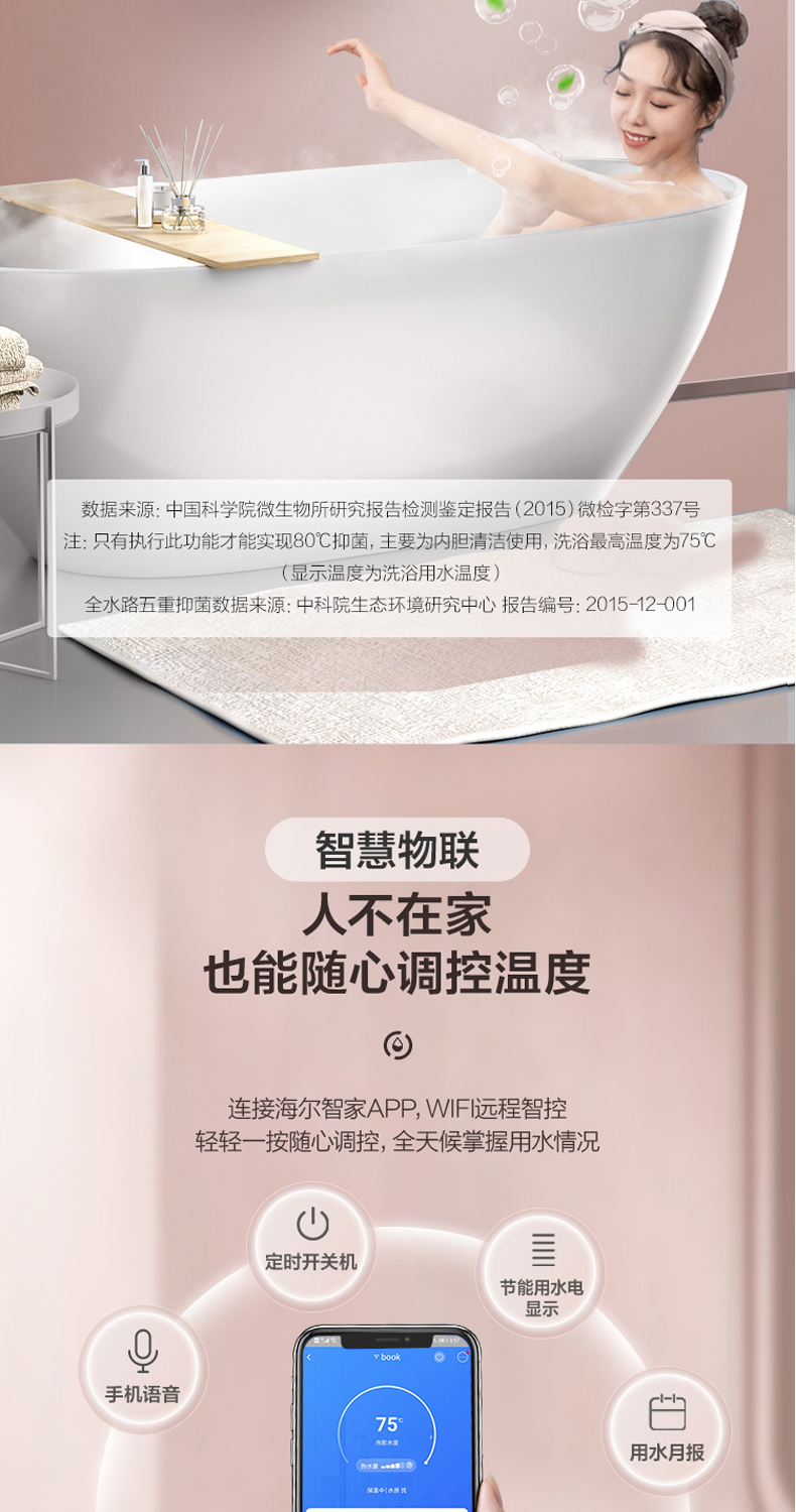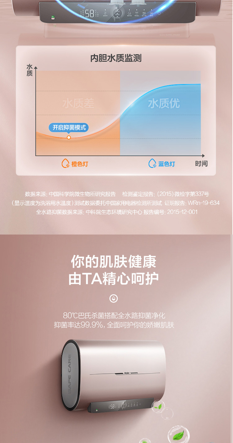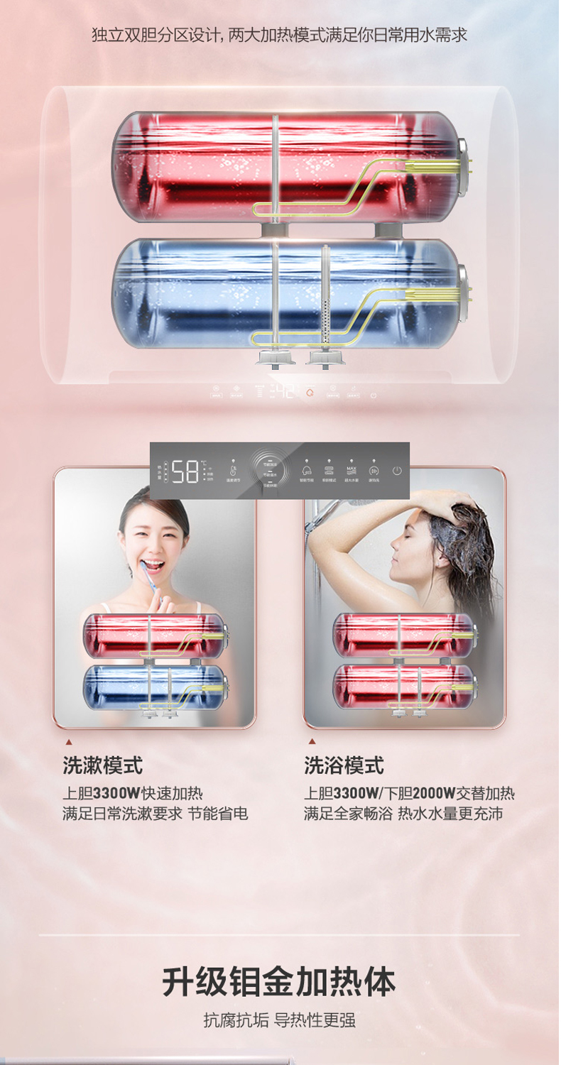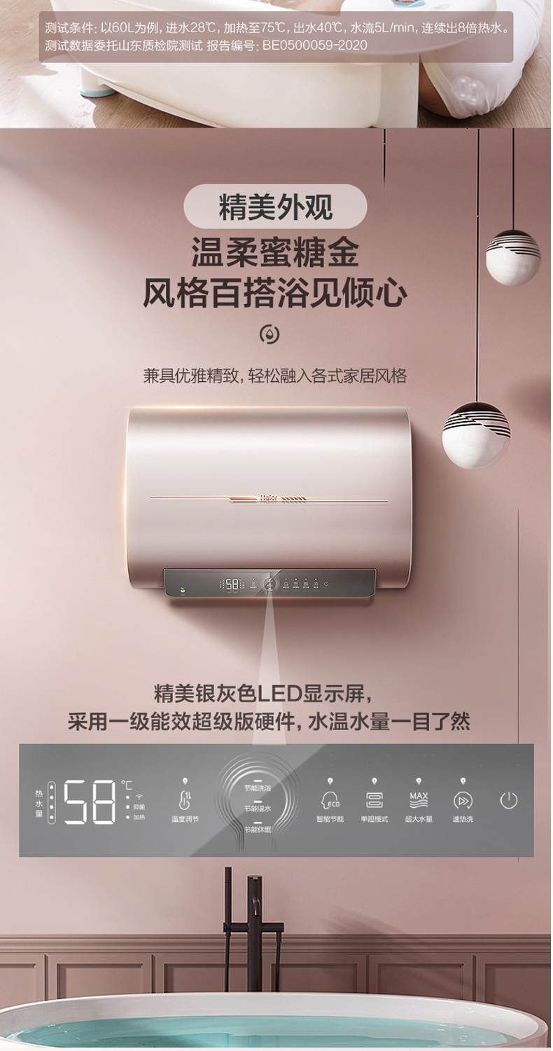 海尔电热水器扁桶超薄双胆变频加热速热ES50H-HZ3U1