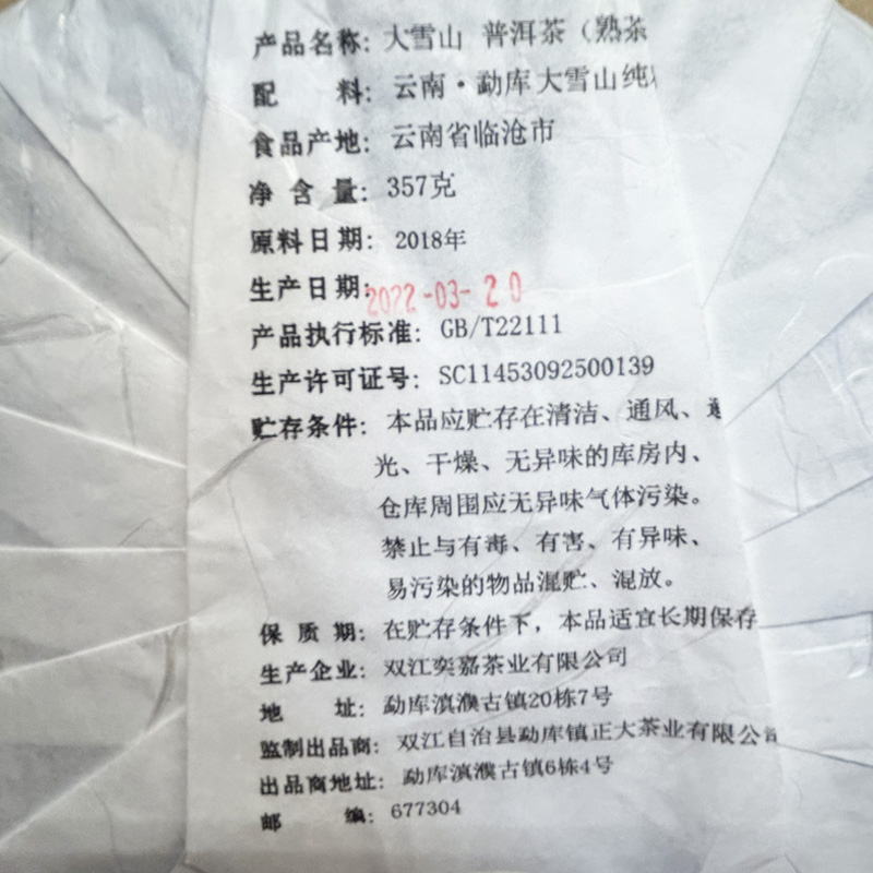大雪山古树熟茶口感特点: