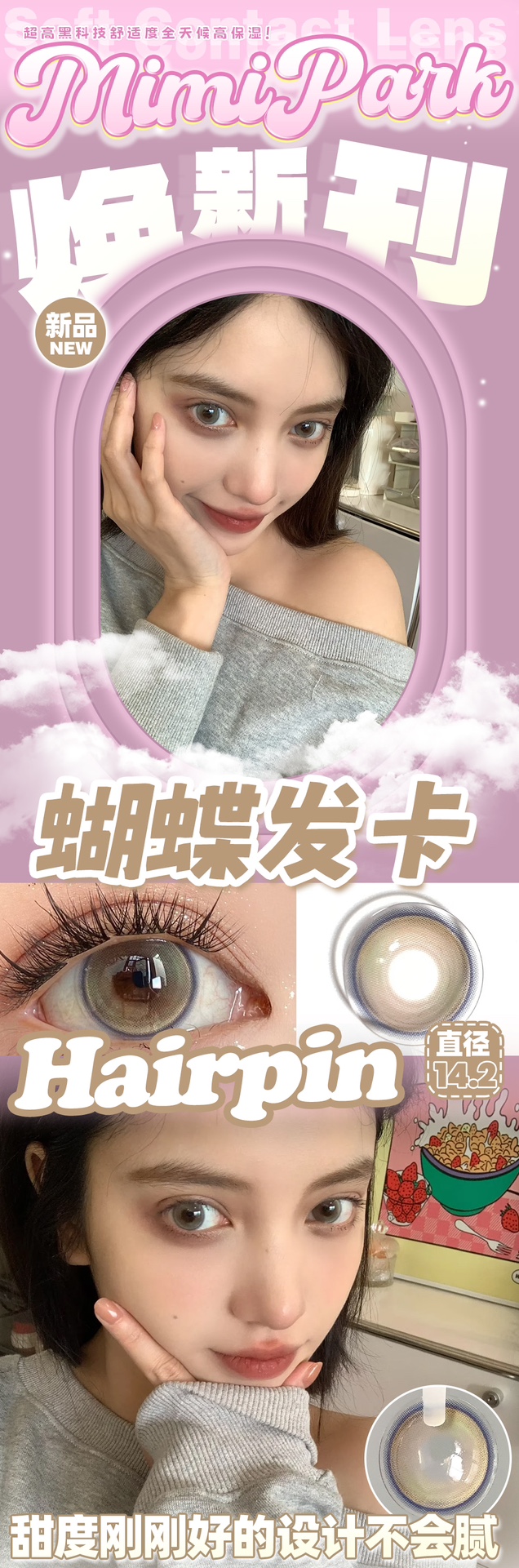 Mimipark 蝴蝶发卡 半年抛 两片 14.2mm 参考着色 13.6mm 基弧 8.6 含水 38% 新锐国货