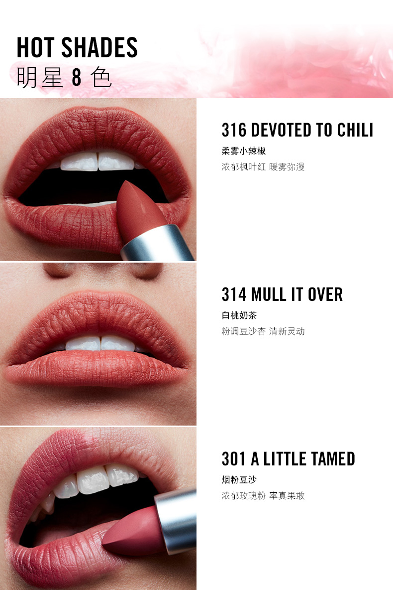 MAC魅可 尤雾弹唇膏口红 #316 devoted to chili 柔雾小辣椒【不足200元订单,默认顺丰快递到付】