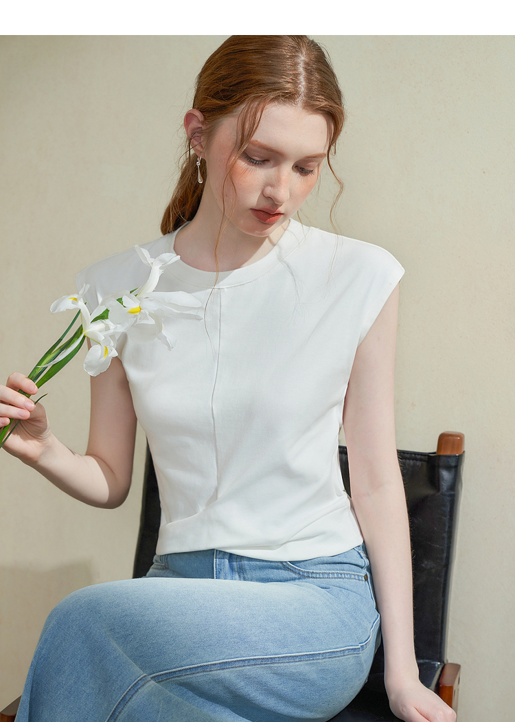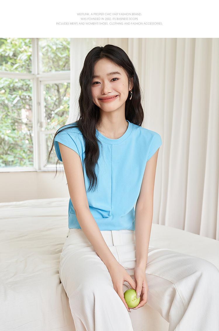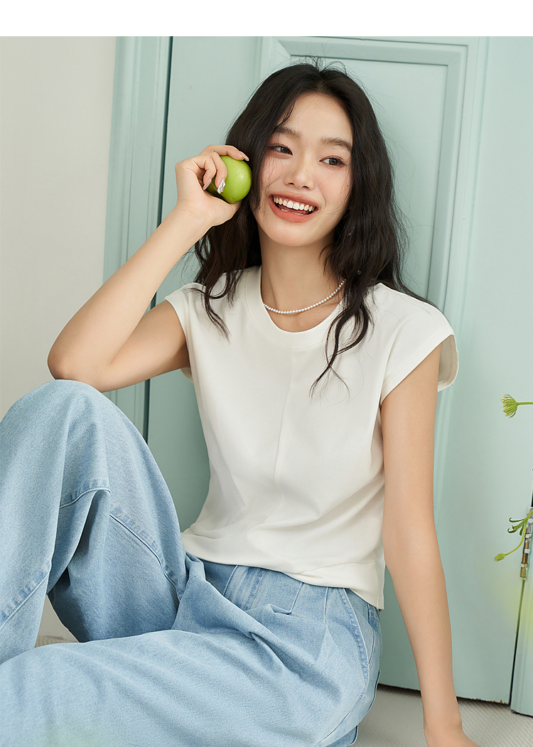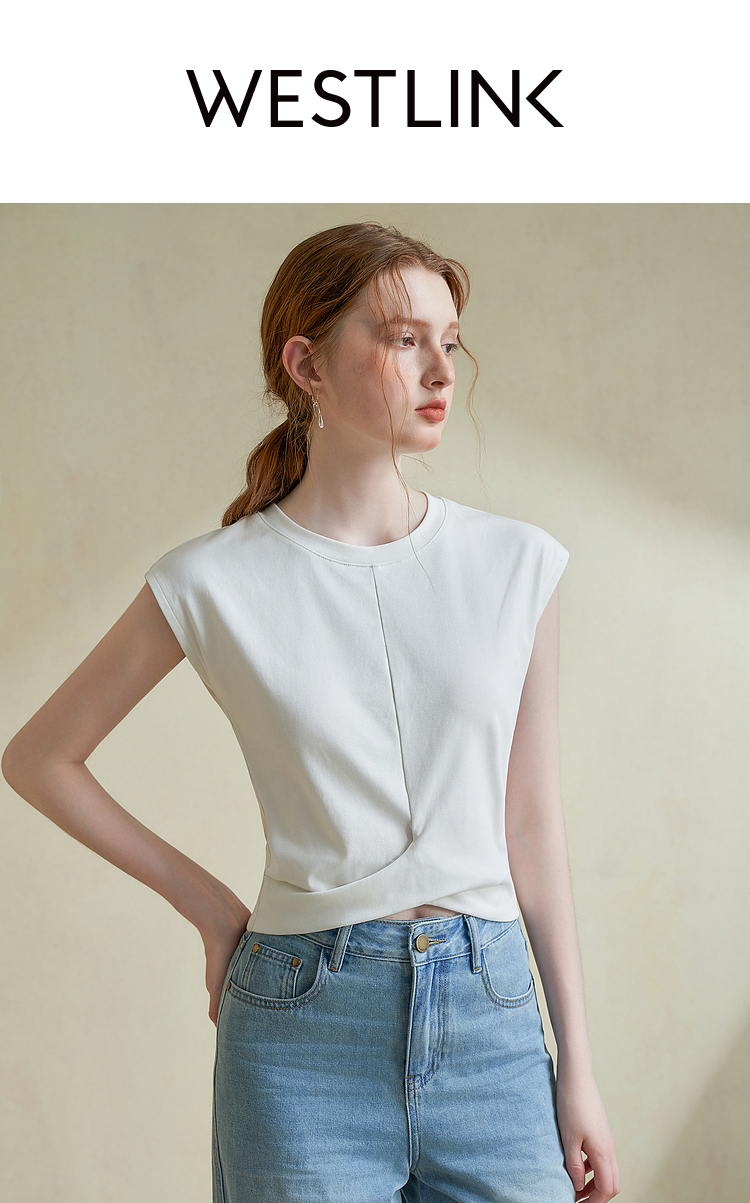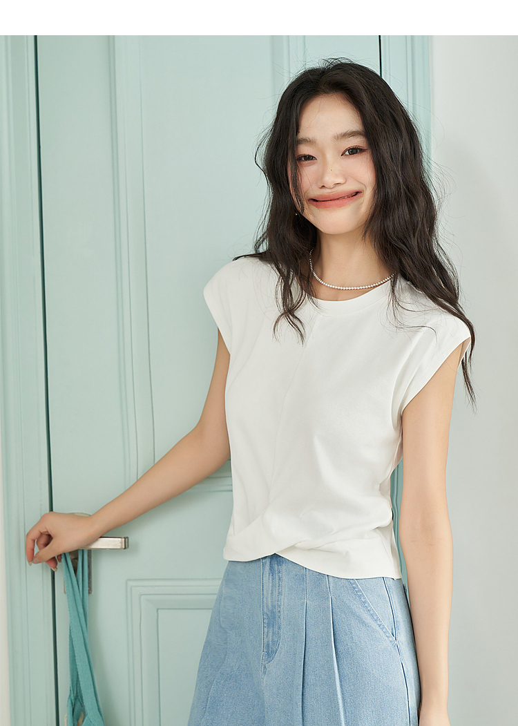 设计感交叉下摆扭结短袖T恤女夏季基础款圆领背心T恤V1941399
