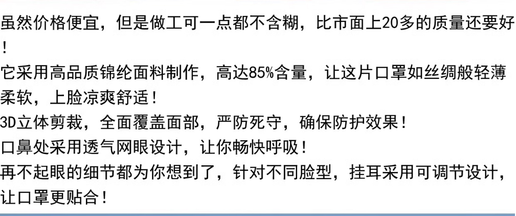 【品名】透气舒适!女士防晒口罩单个装 立体剪裁 全面防护*3 黑色\灰色\粉色