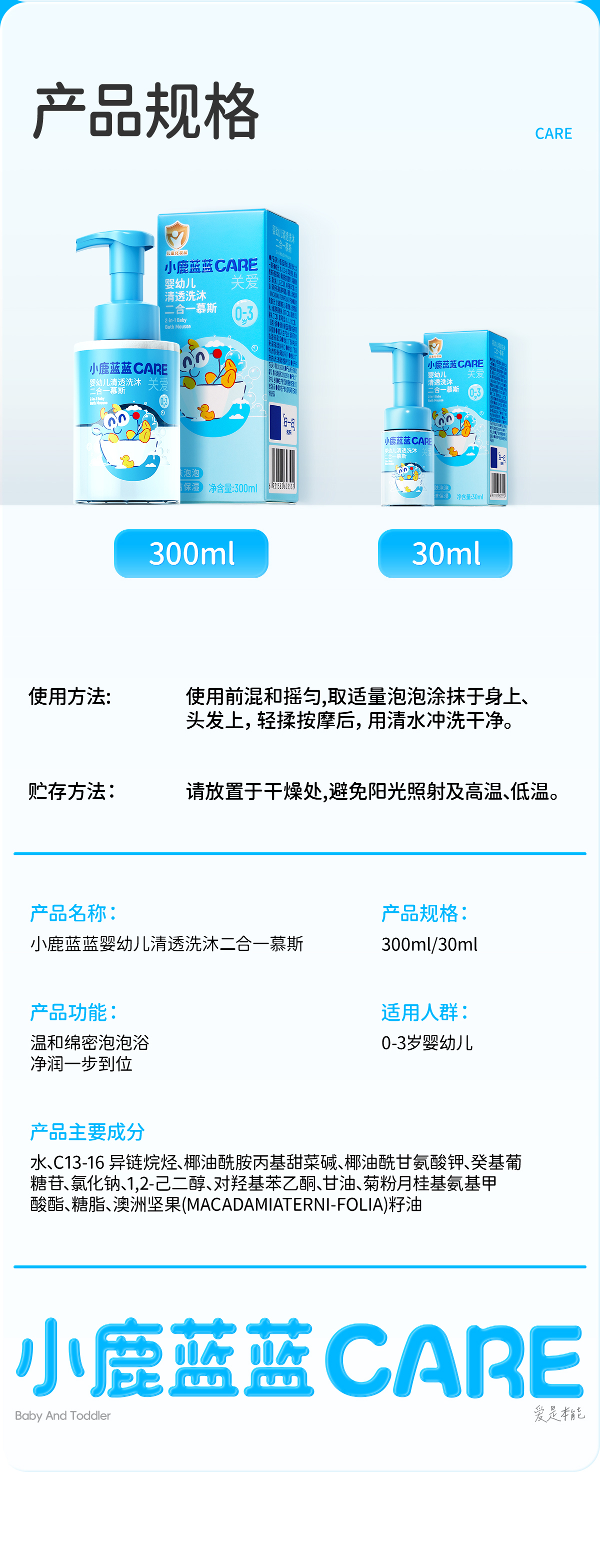 【婴幼儿清透洗沐二合一慕斯】新生可用宝宝泡泡浴沐浴乳慕斯300ml