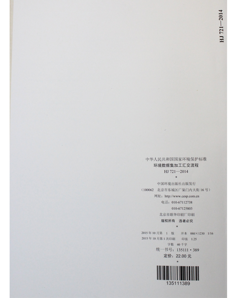 HJ 721-2014 环境数据集加工汇交流程 国家标准GB 环境保护 环境科学 135111389