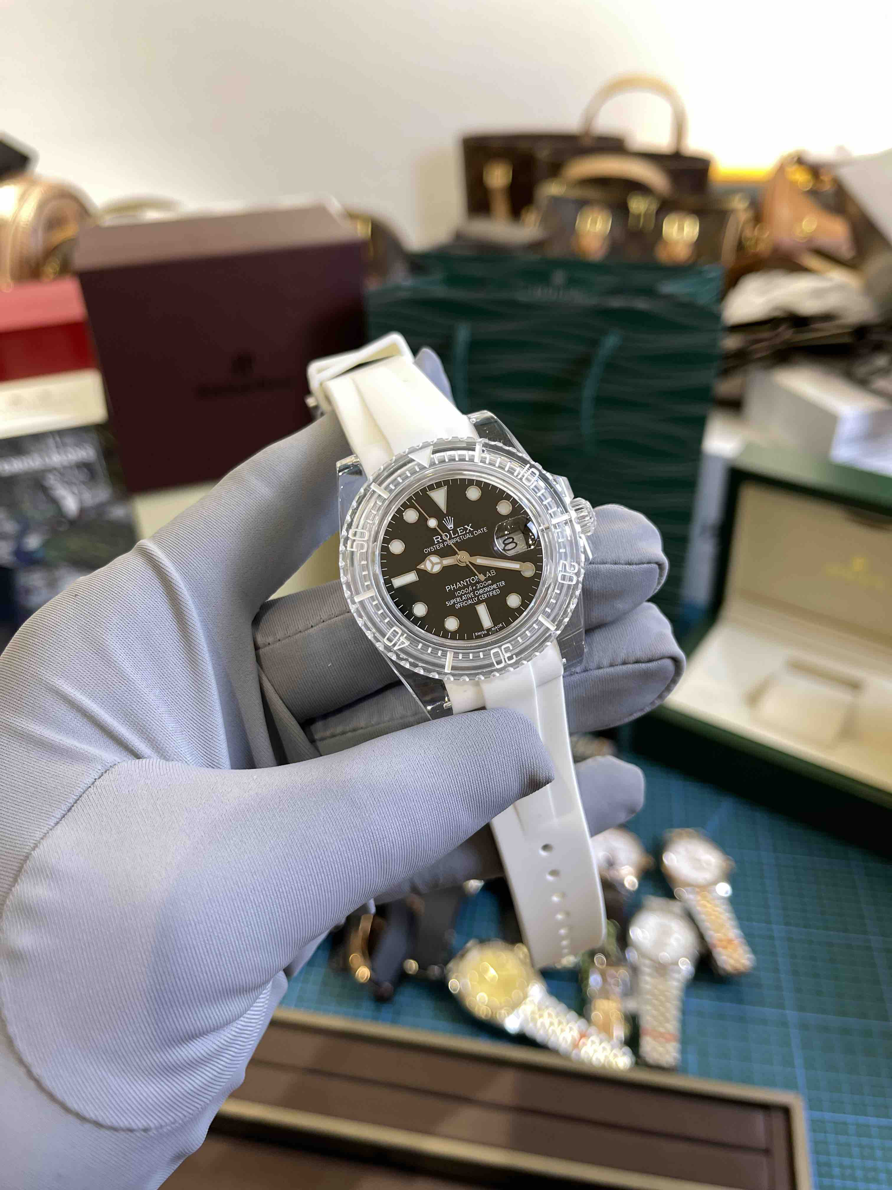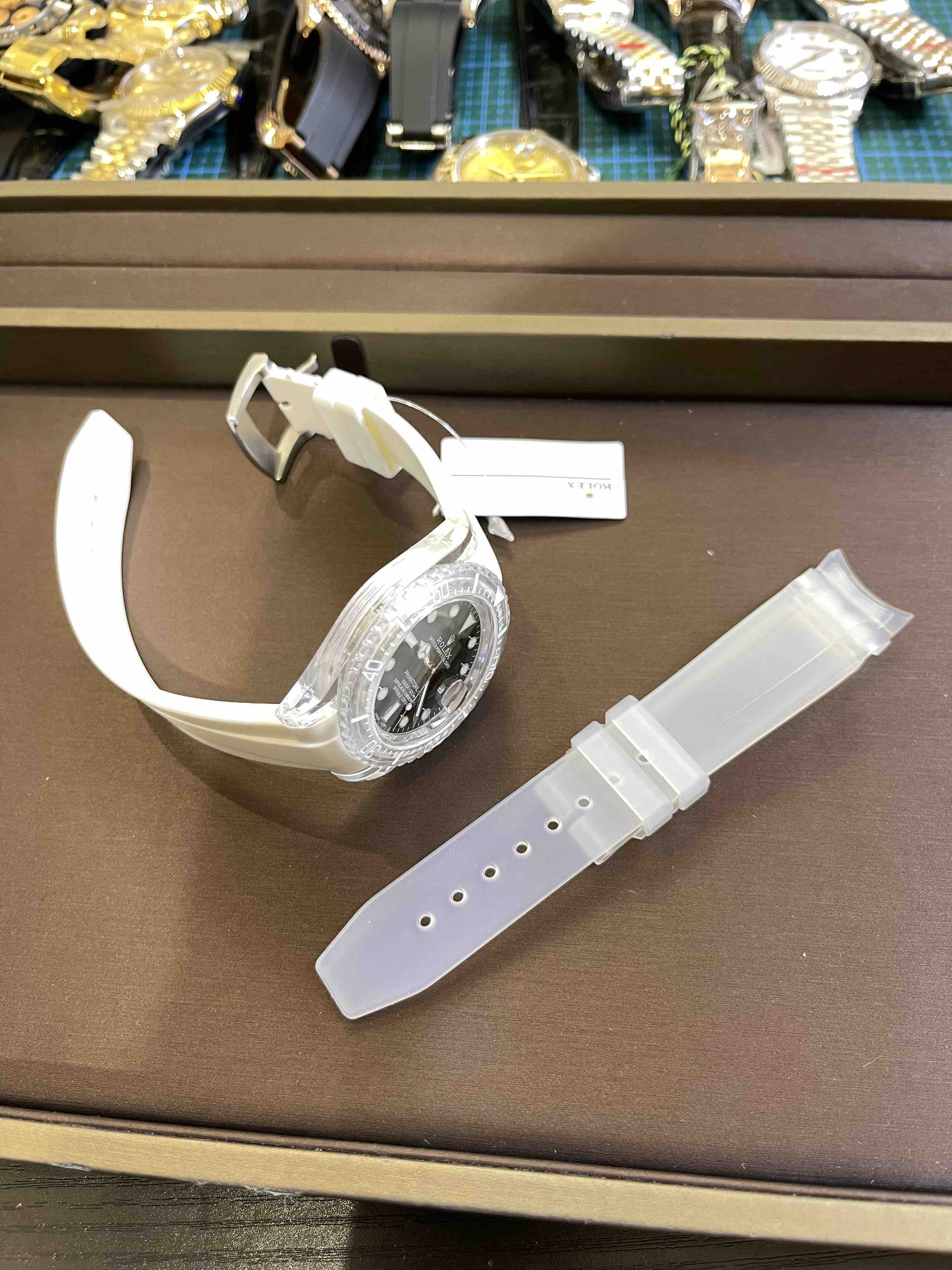 KZ🏆2021初芯不改 启程出发,以崭新风貌迎接万象更新!幻影实验室改装劳力士透明水鬼整装启航 唯芯不变,天马行空之作,迷彩与纯色,心旷神怡,释放与众不同的魅力!进口泰国橡胶,全市场zui 好的白色胶带,永不变黄,表扣精细打磨,无敌质感,亚克力透明表壳遵从原装结构,重新设计前后锅盖型镜面,彰显透视感精髓,r型弹簧与曲线内牙相互咬合,和圈口外牙相交呼应,追求细节之美,超级3135蓝游丝机芯透过底盖一览无余,用匠芯打造奢华的极致!KZ重器 逐梦而行!