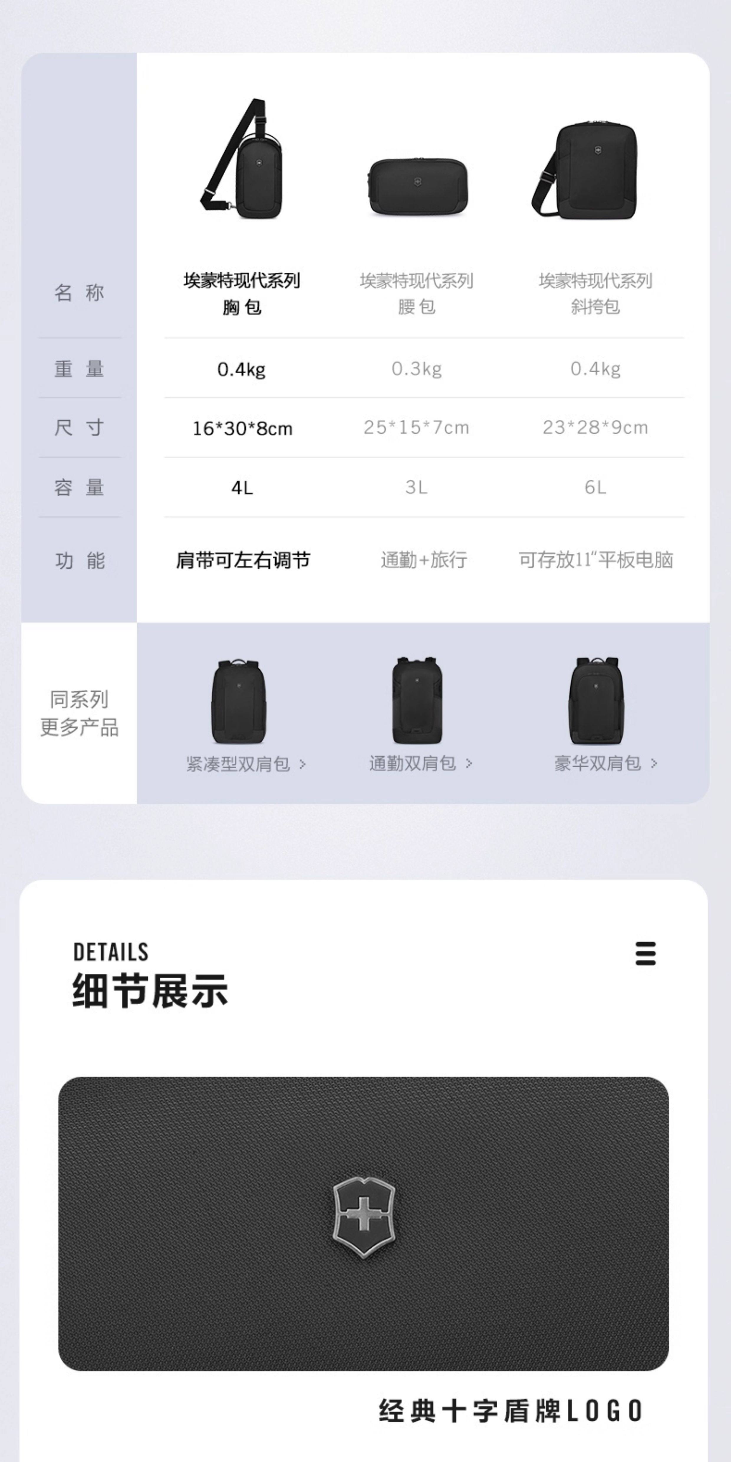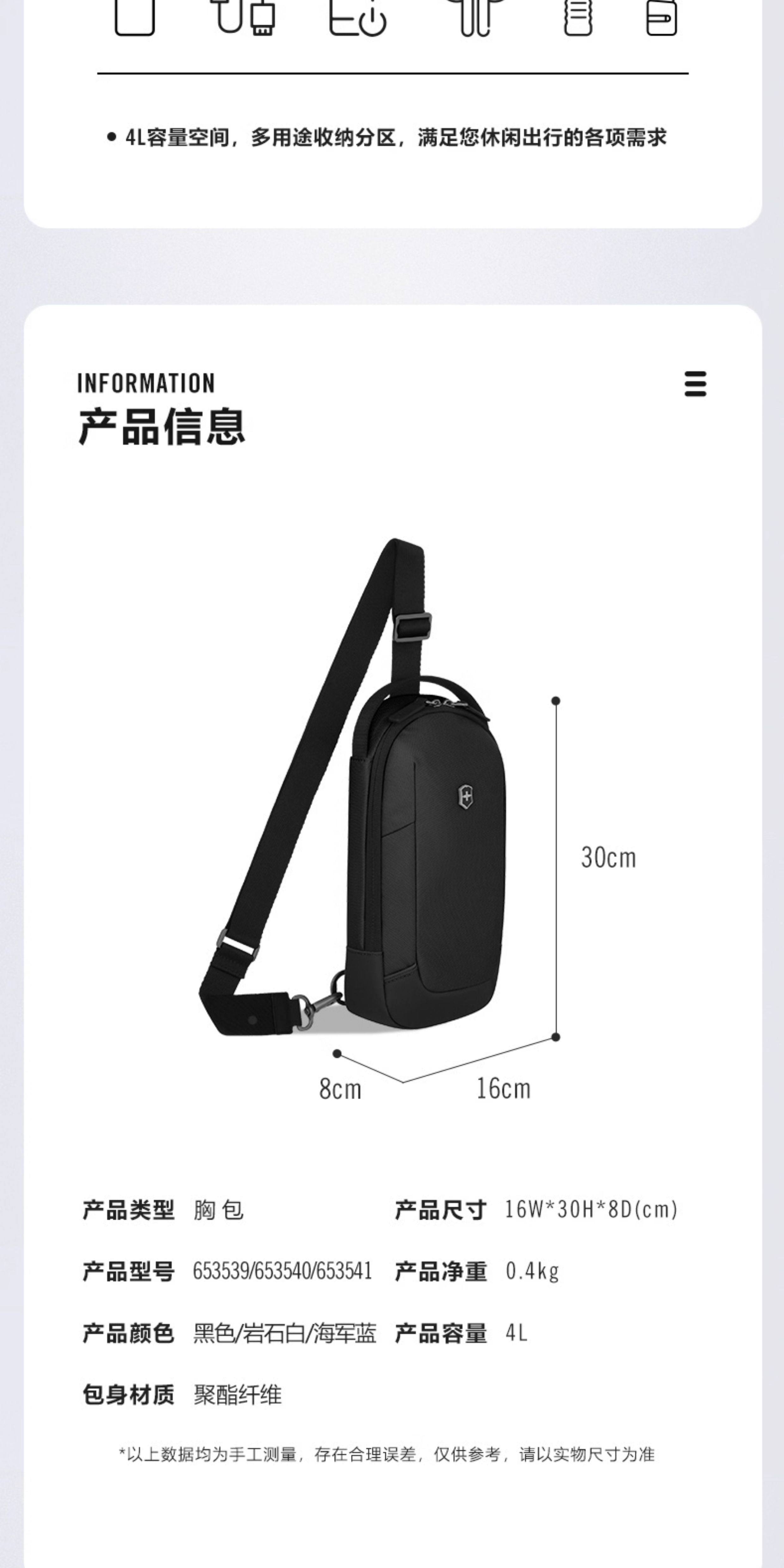 維氏軍刀 埃蒙特现代系列 胸包 ,黑色 653539