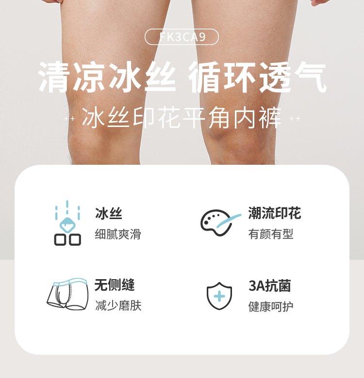 都市丽人潮流时尚冰丝平角裤男士内裤FK3CA9