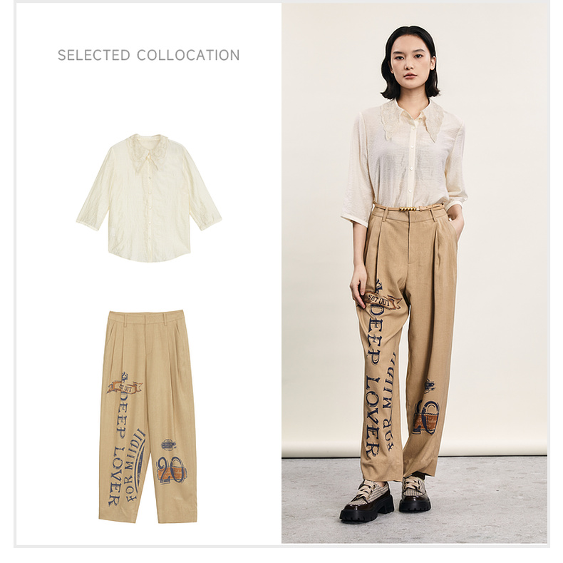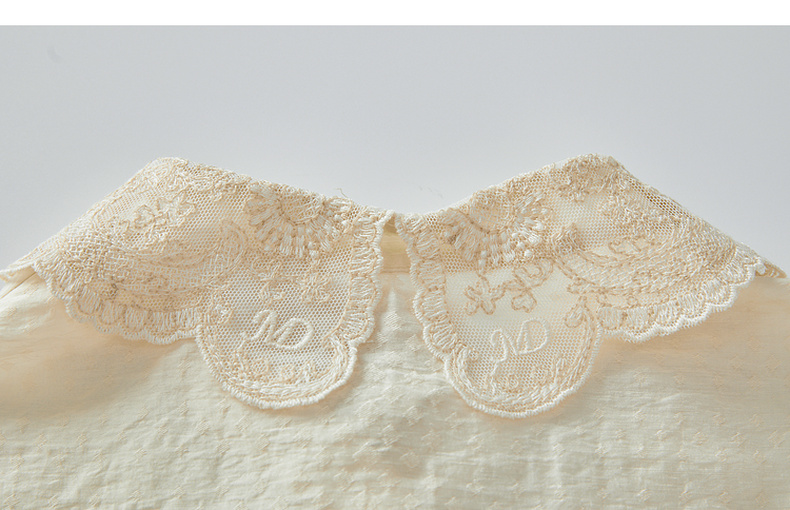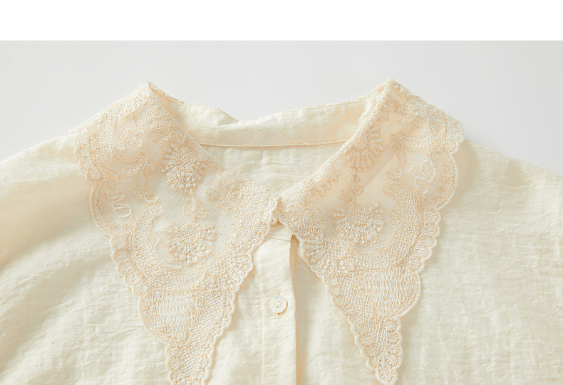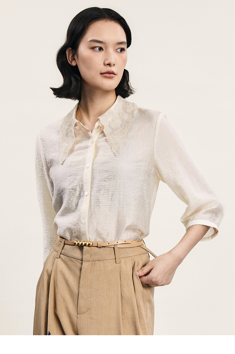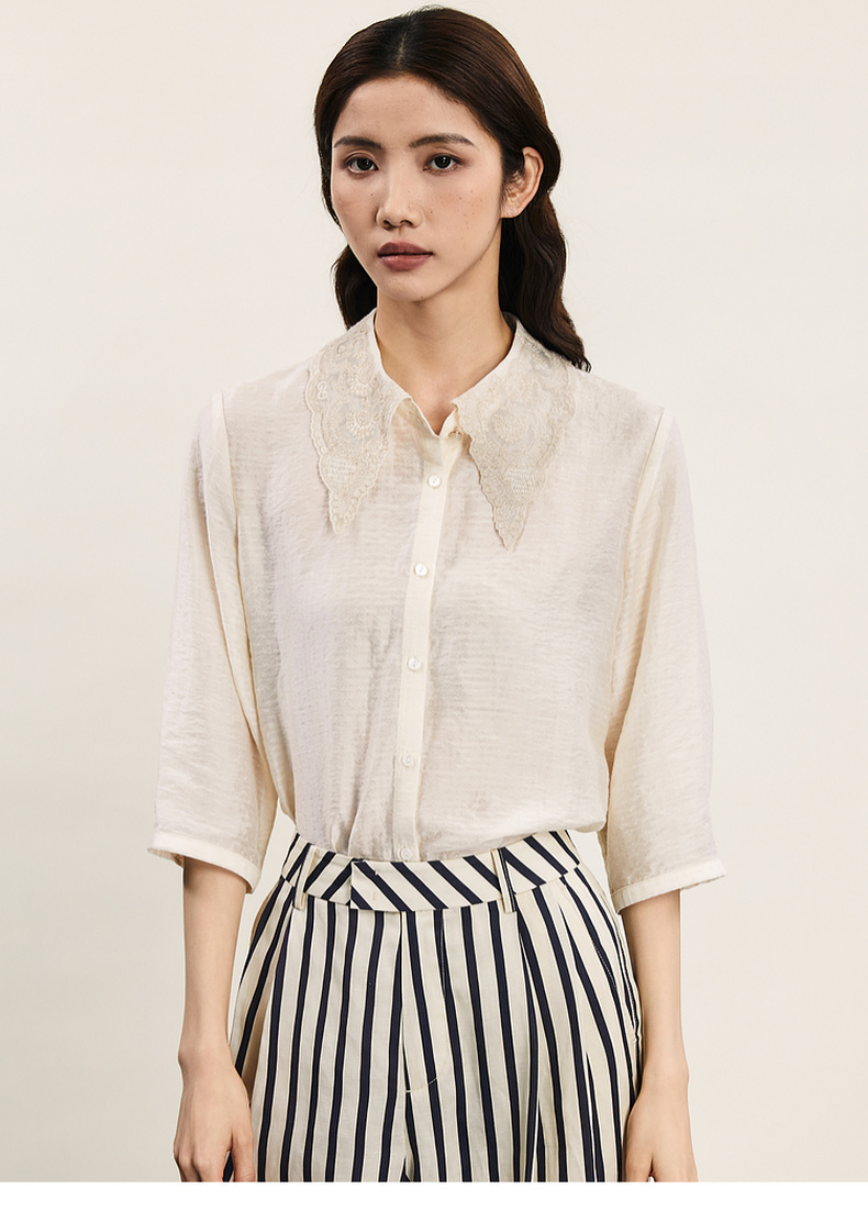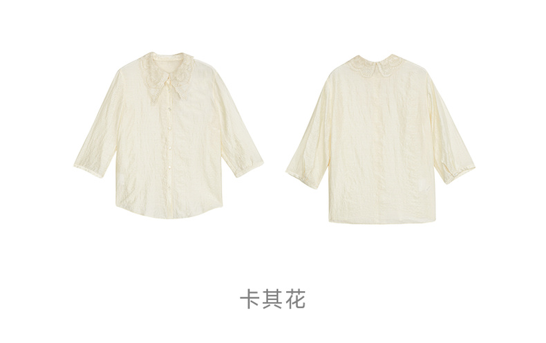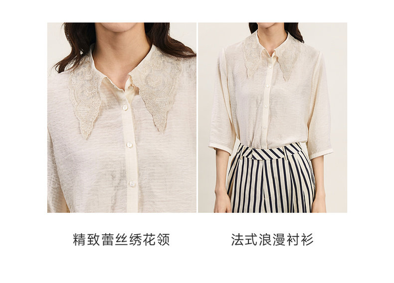 谜底通勤衬衫七分袖女2024年夏款法式浪漫领口绣花衬衣242MC0674