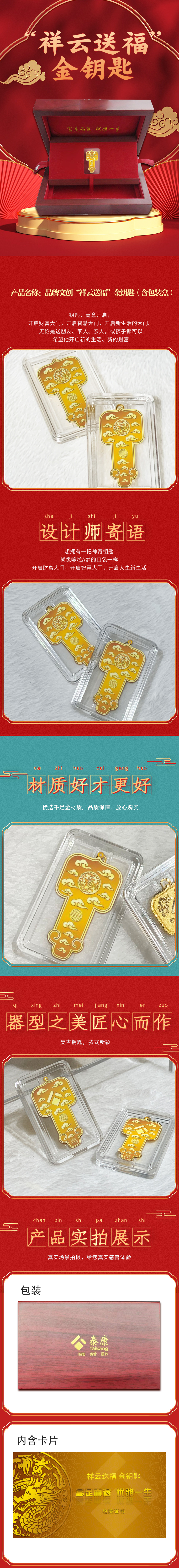泰康定制足金“祥云送福”金钥匙 约5g(贵金属不退不换)