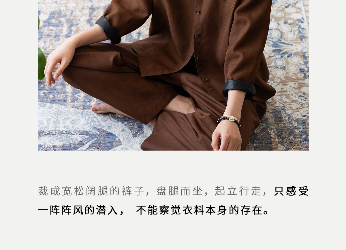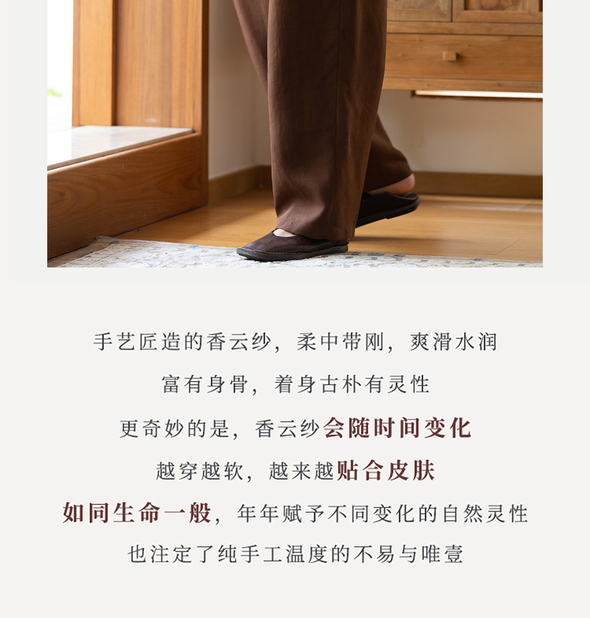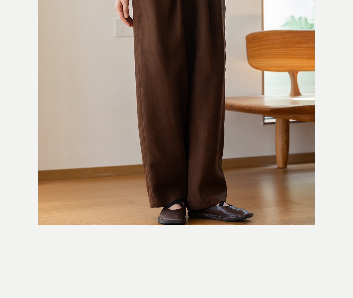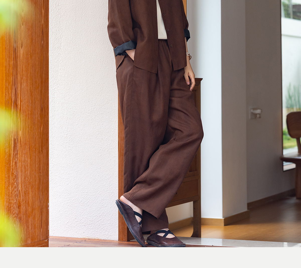 牧衣游原创 重磅18姆米莨染香云纱裤子新款宽松百搭真丝长裤 诩语