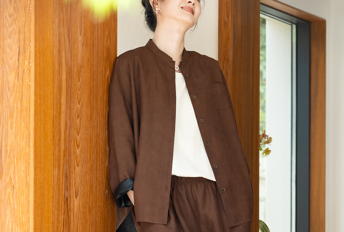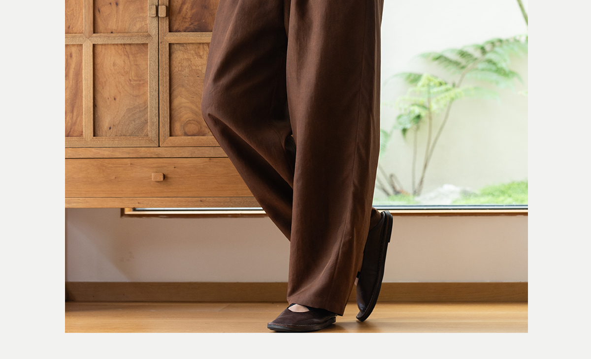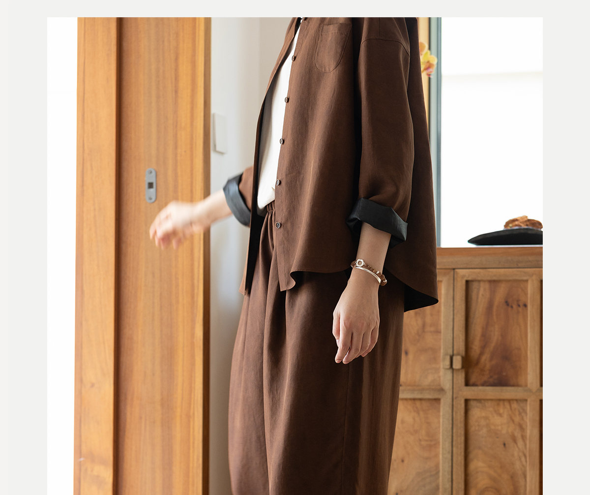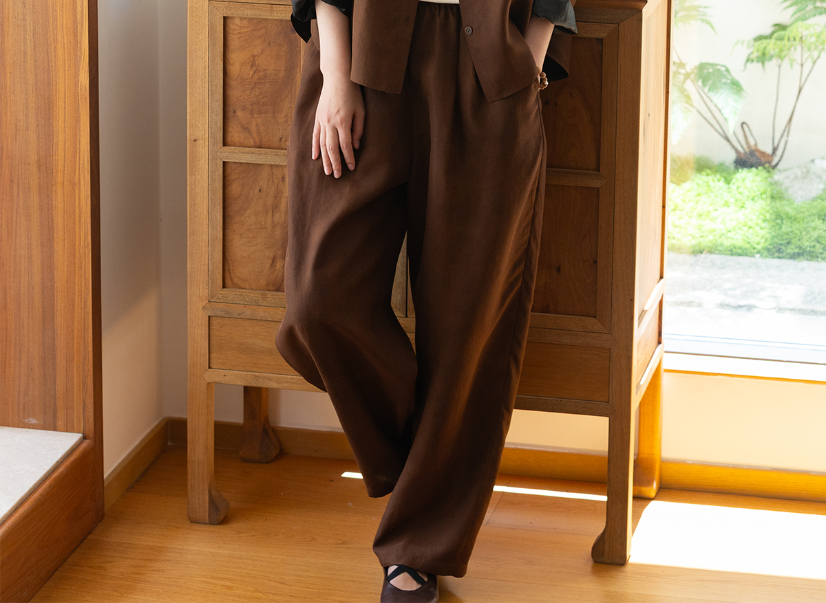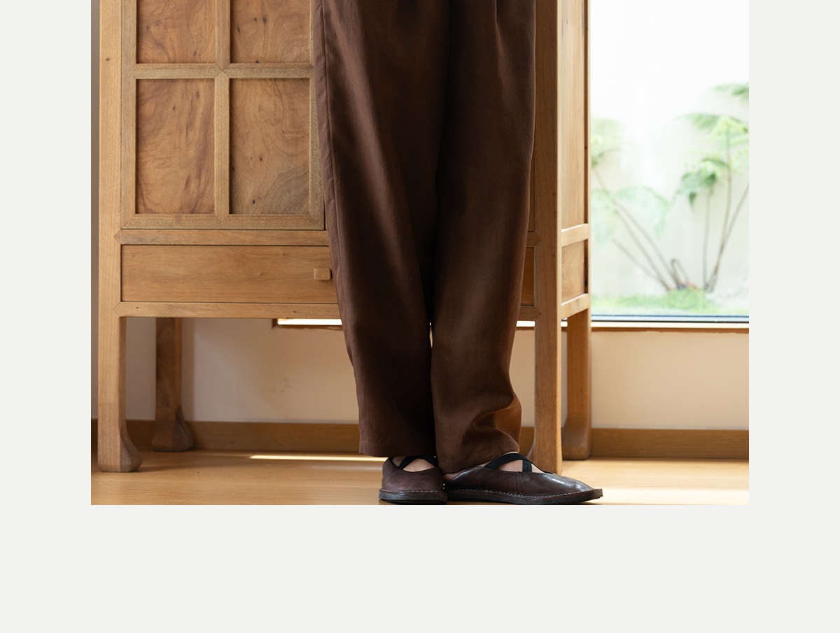 牧衣游原创 重磅18姆米莨染香云纱裤子新款宽松百搭真丝长裤 诩语