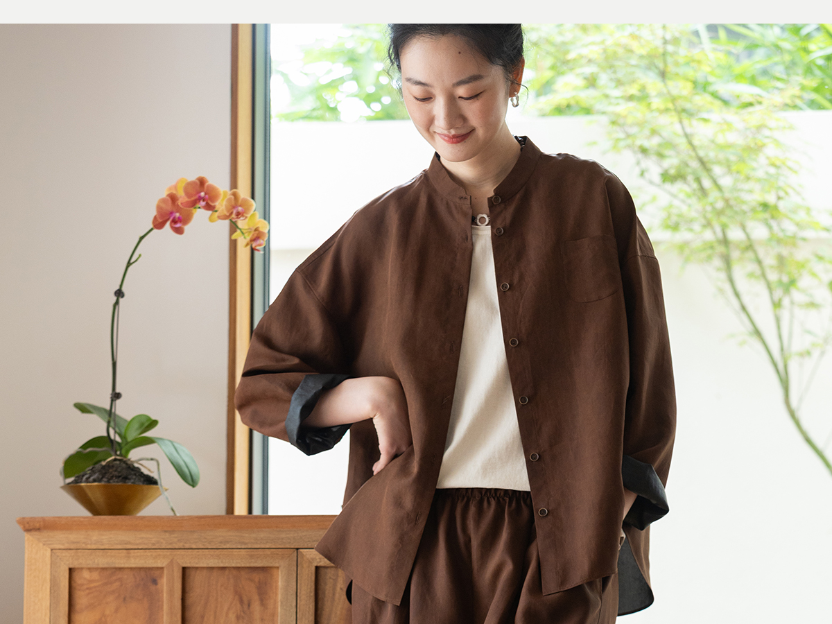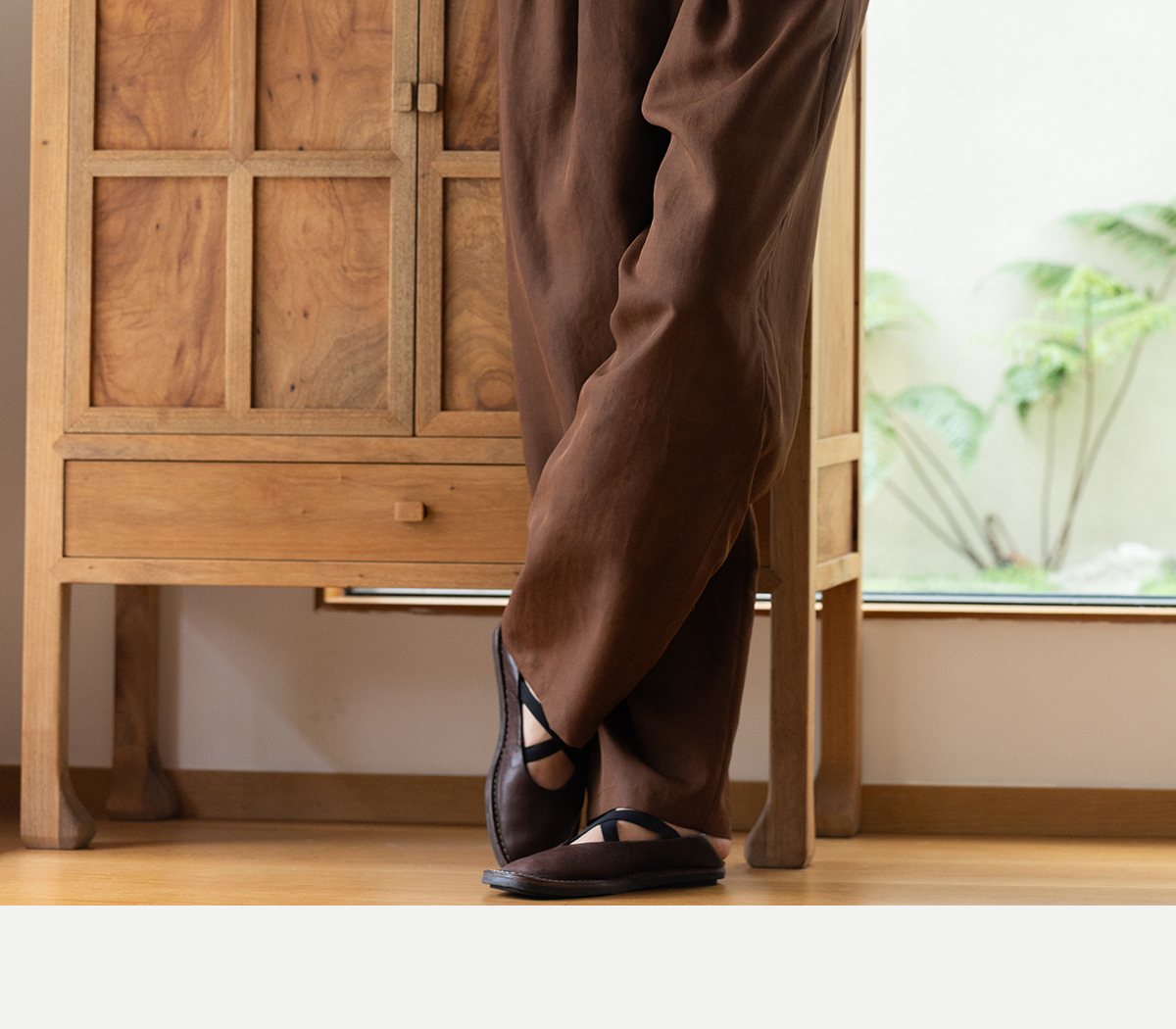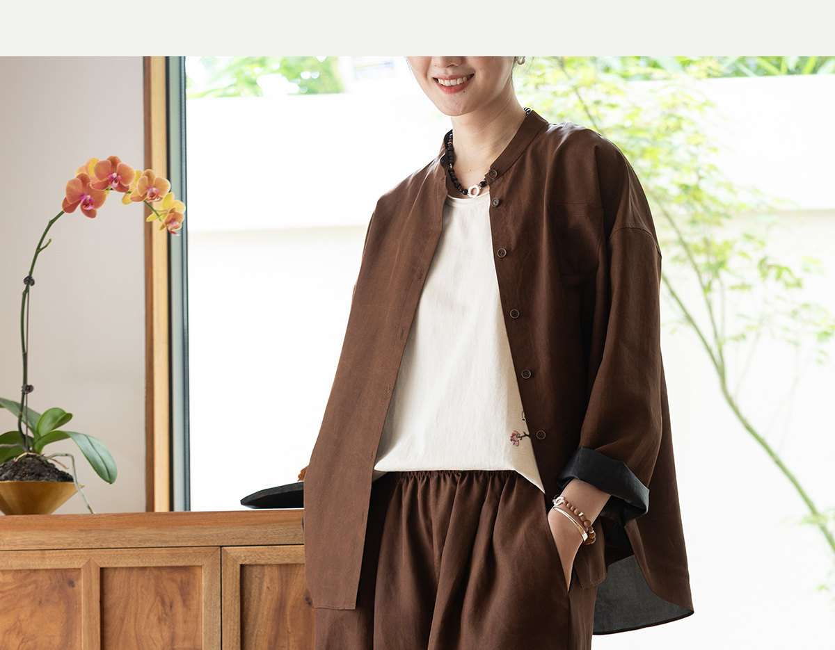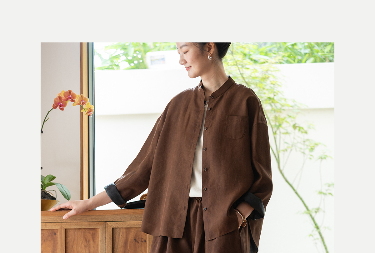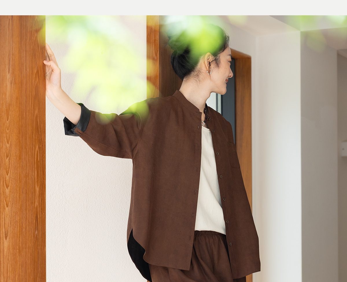 牧衣游原创 重磅18姆米莨染香云纱裤子新款宽松百搭真丝长裤 诩语