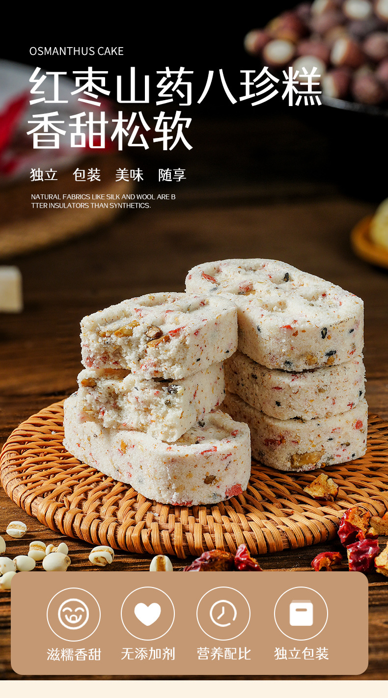 【买二送一❗山药红枣八珍糕】甄选山药、红枣、茯苓、芡实、莲子、薏米、山药、山楂、白扁豆、麦芽,瓜子仁,芝麻,花生等,老少皆宜美味健康无负担,下午茶休闲茶点小吃,传统健康轻食糕点零食