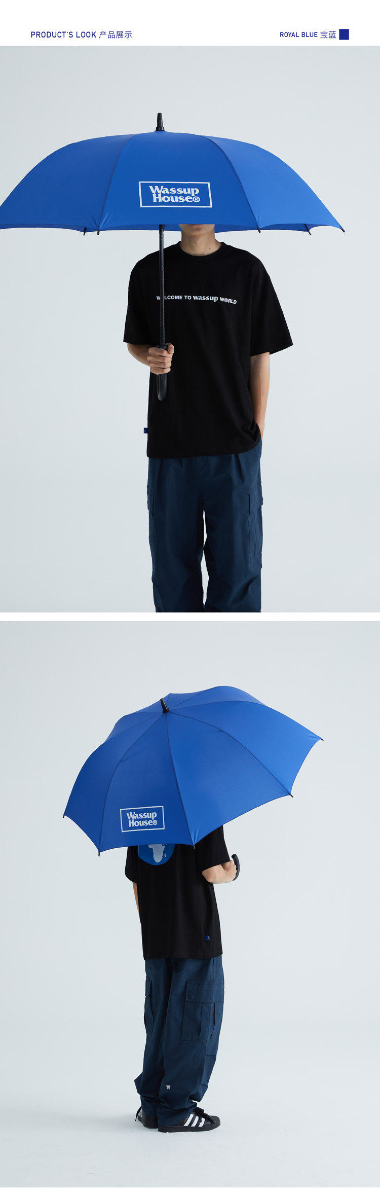 WASSUP可斜挎长柄字母印花雨伞
