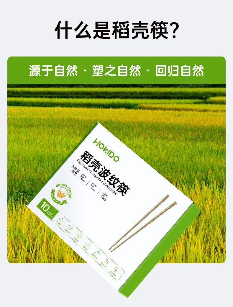 【HOKIDO稻壳波筷】✅天然稻谷壳,高温高压一体成型,耐温隔热 ✅易清洗材质,谷壳蜡保护不吸附,抑菌防霉-GRUP