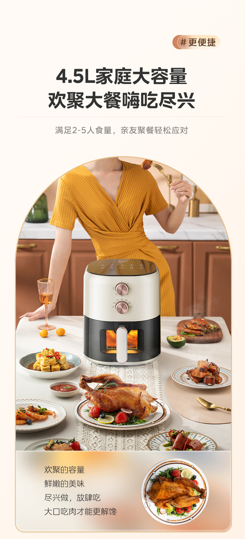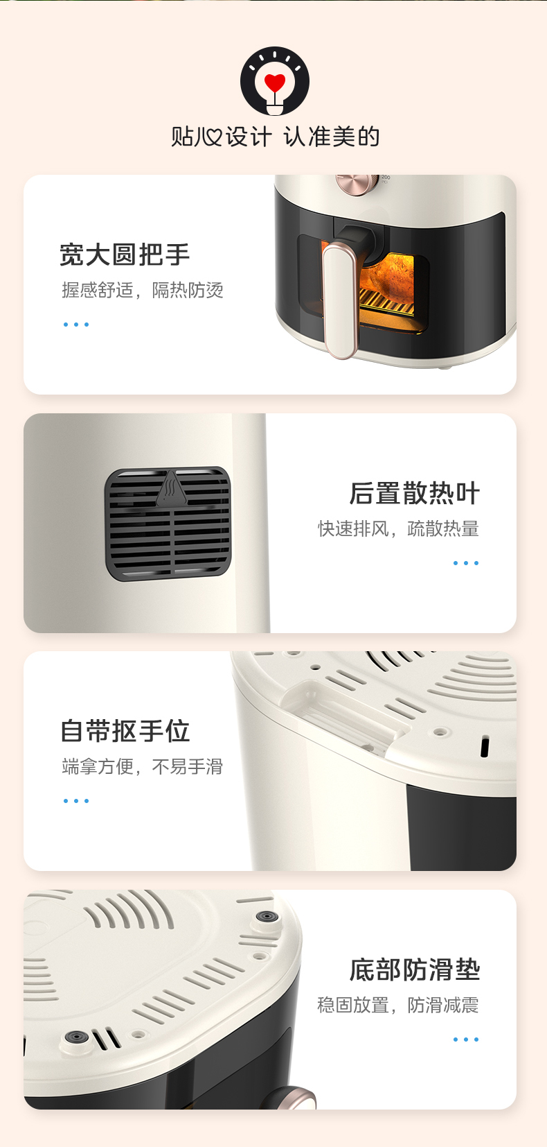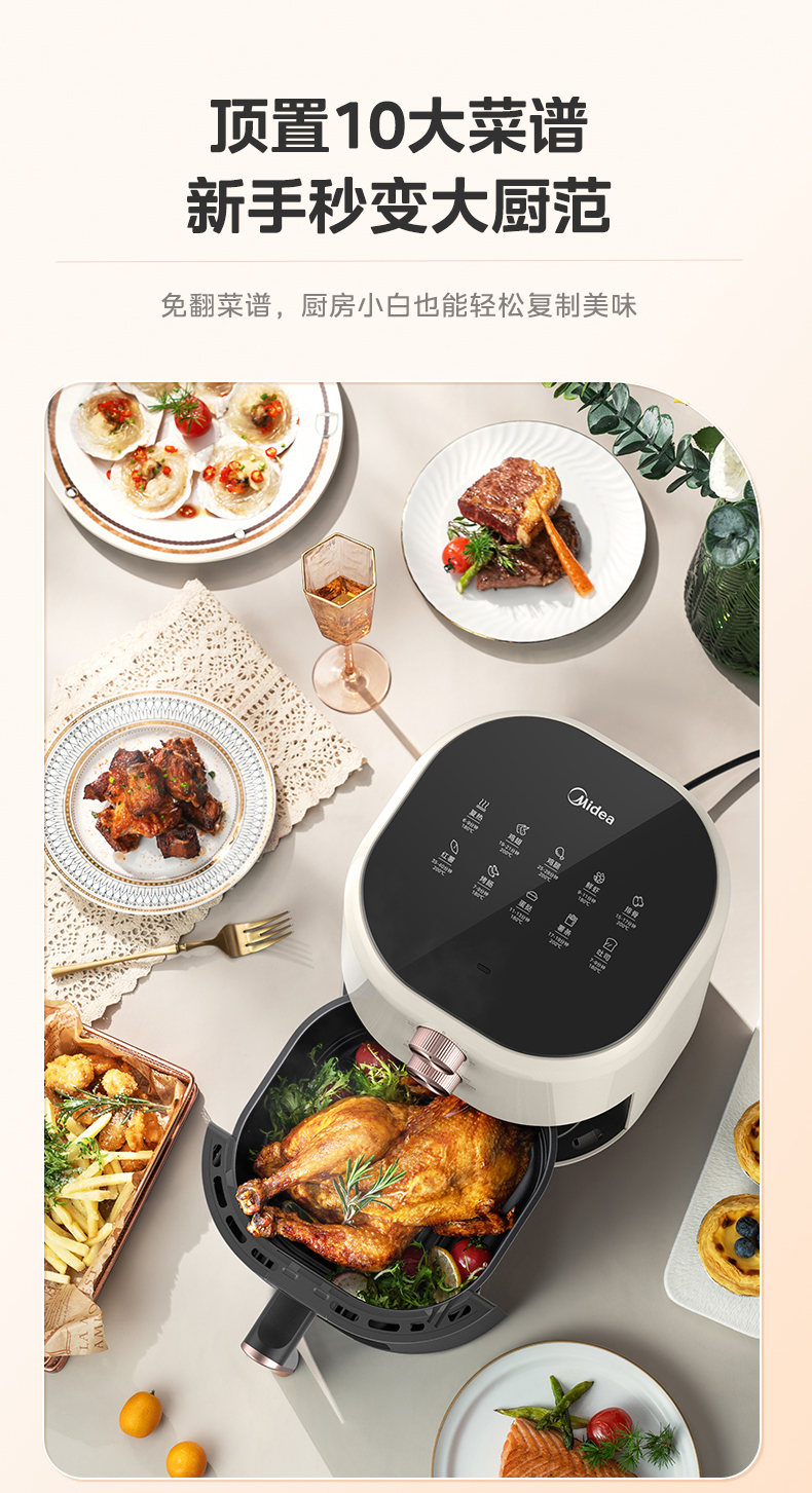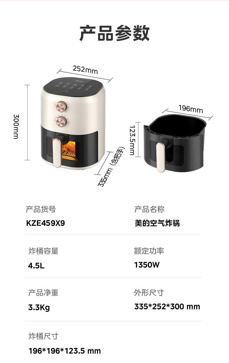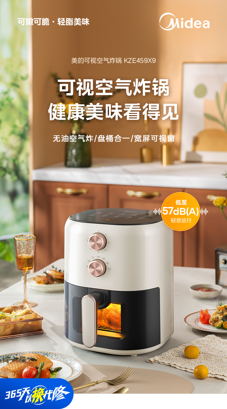 美的(Midea)空气炸锅 KZE459X9BD 4.5L 可视化窗 精准控温