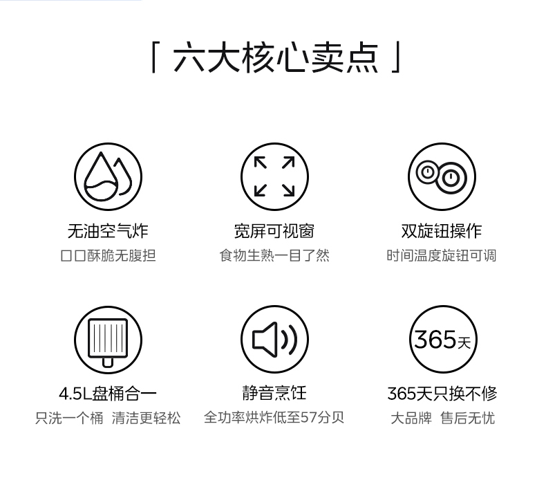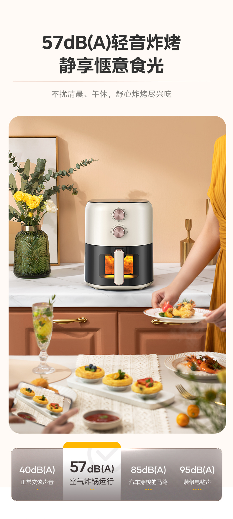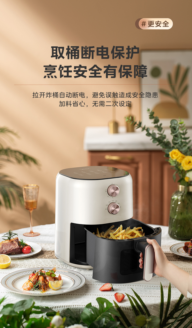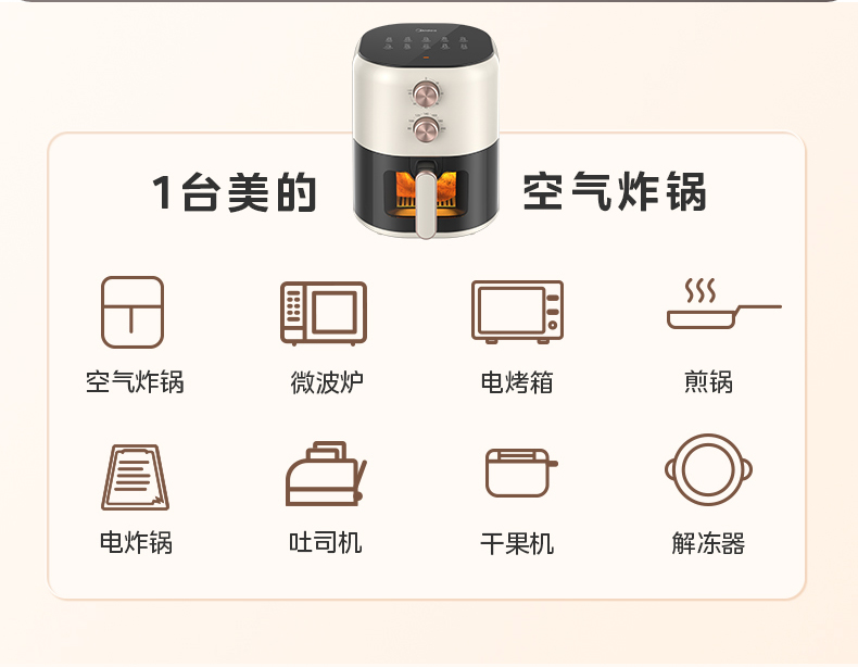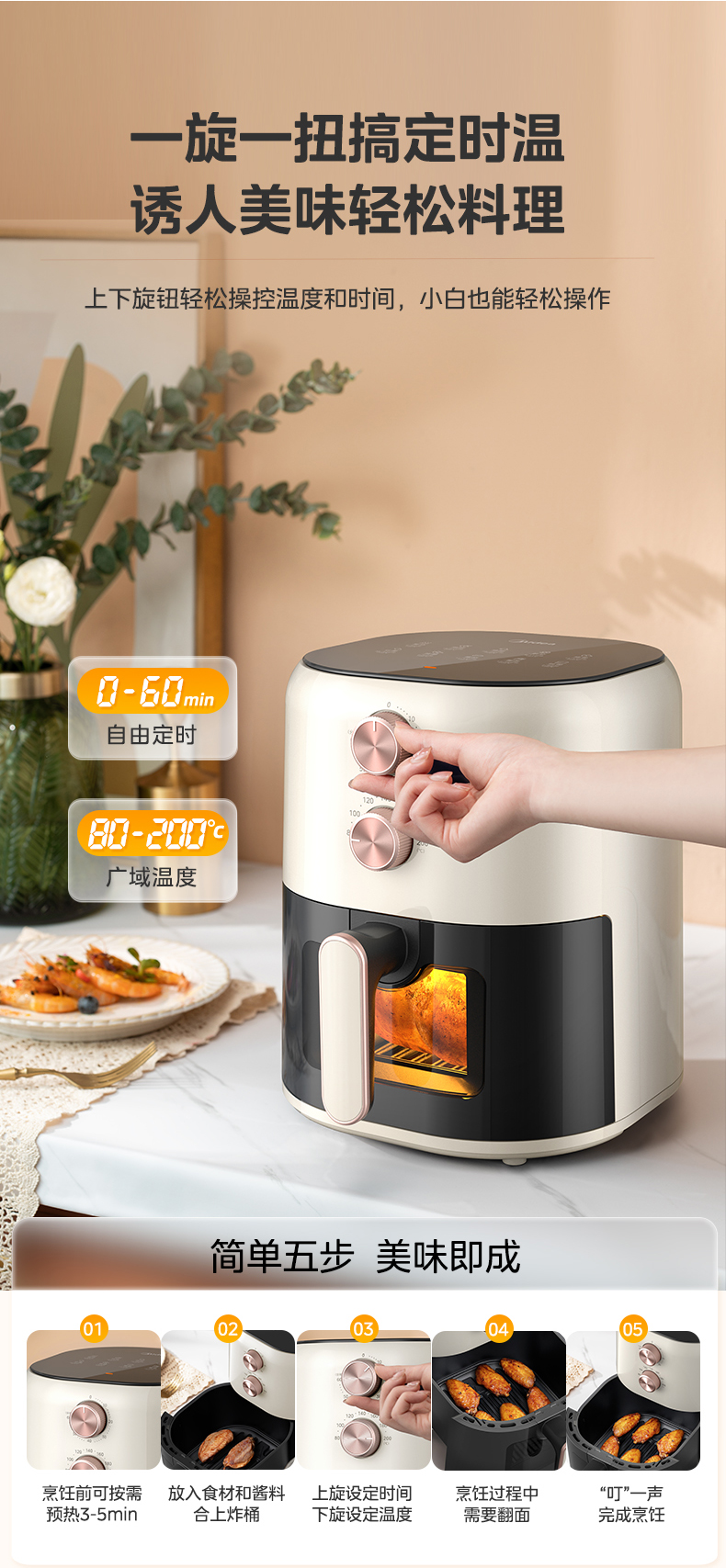 美的(Midea)空气炸锅 KZE459X9BD 4.5L 可视化窗 精准控温