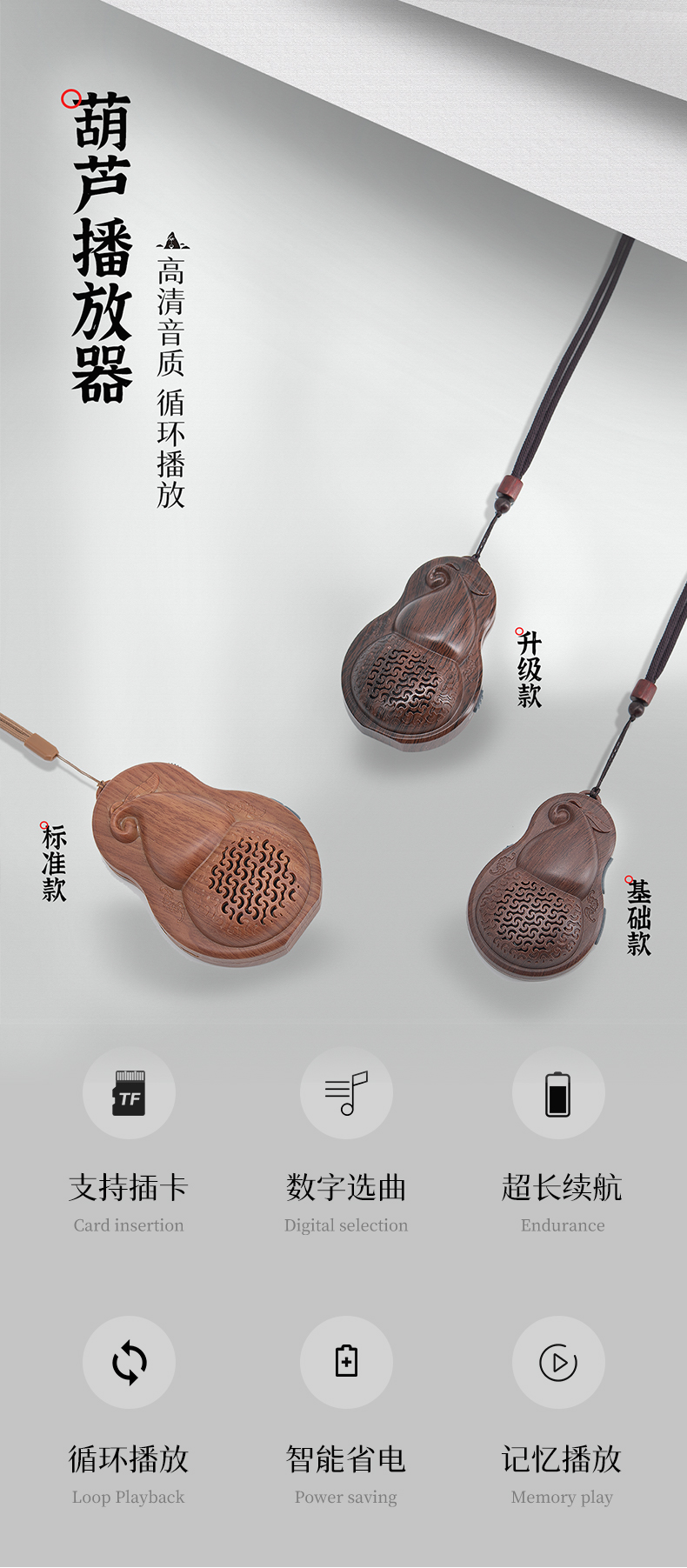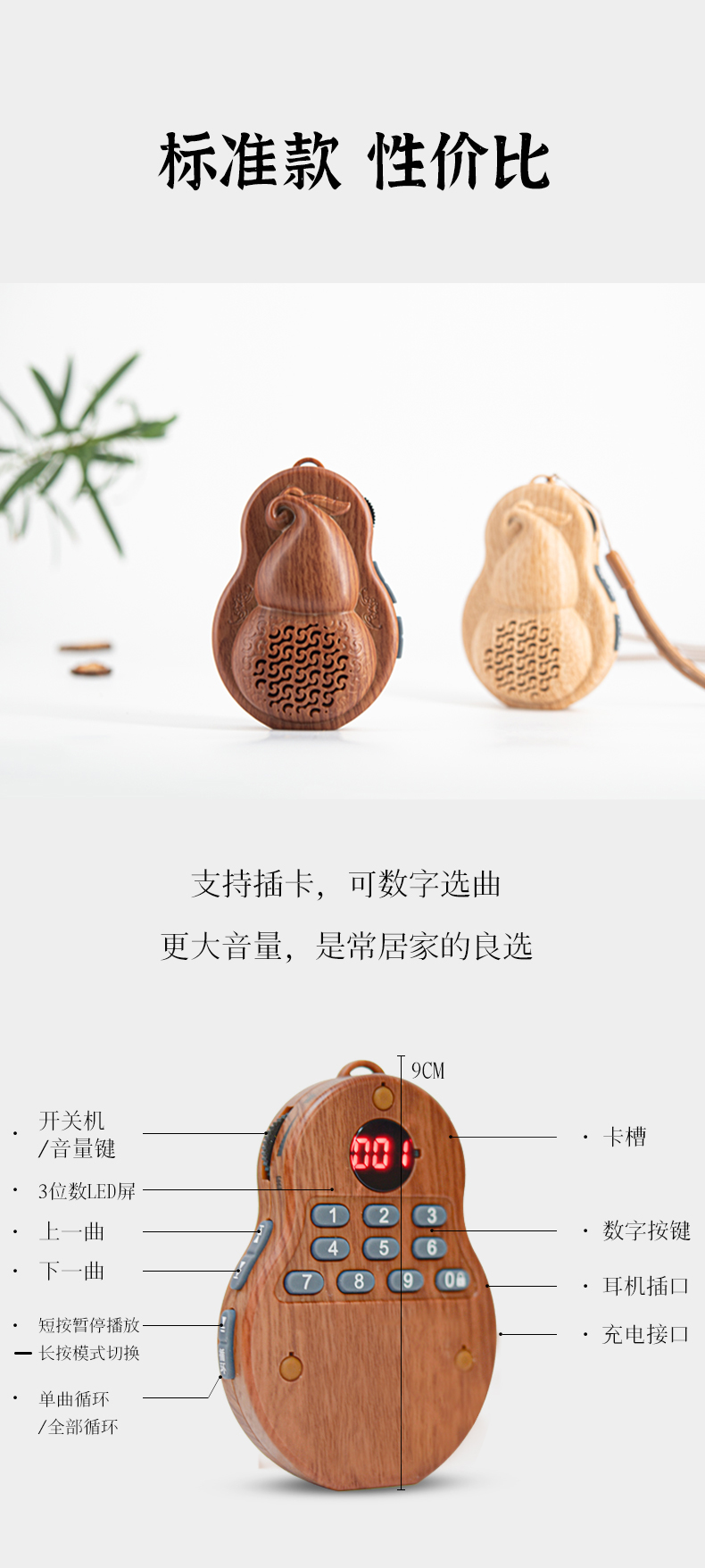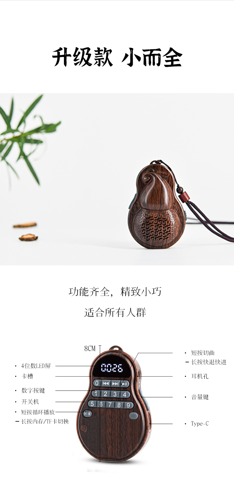 葫芦TF插卡播放器便携老人唱戏机民俗小型音响禅乐播放机