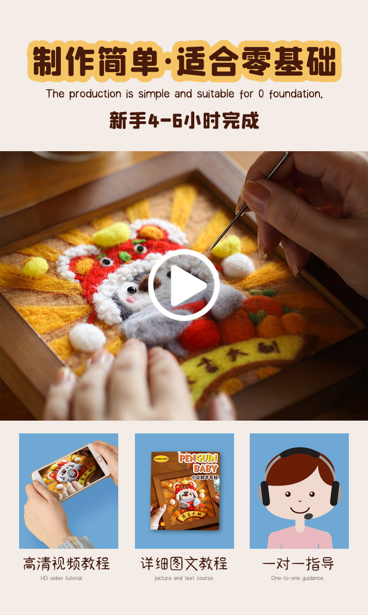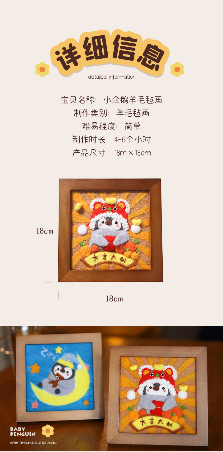 羊毛毡企鹅画 材料包