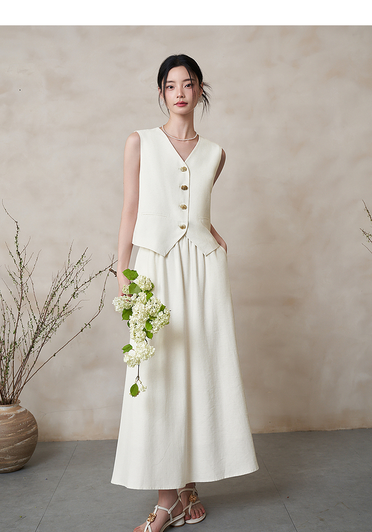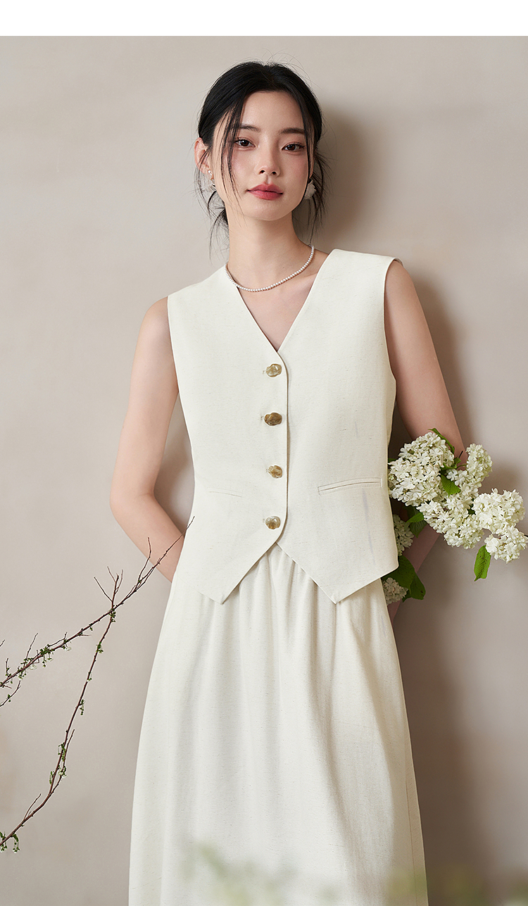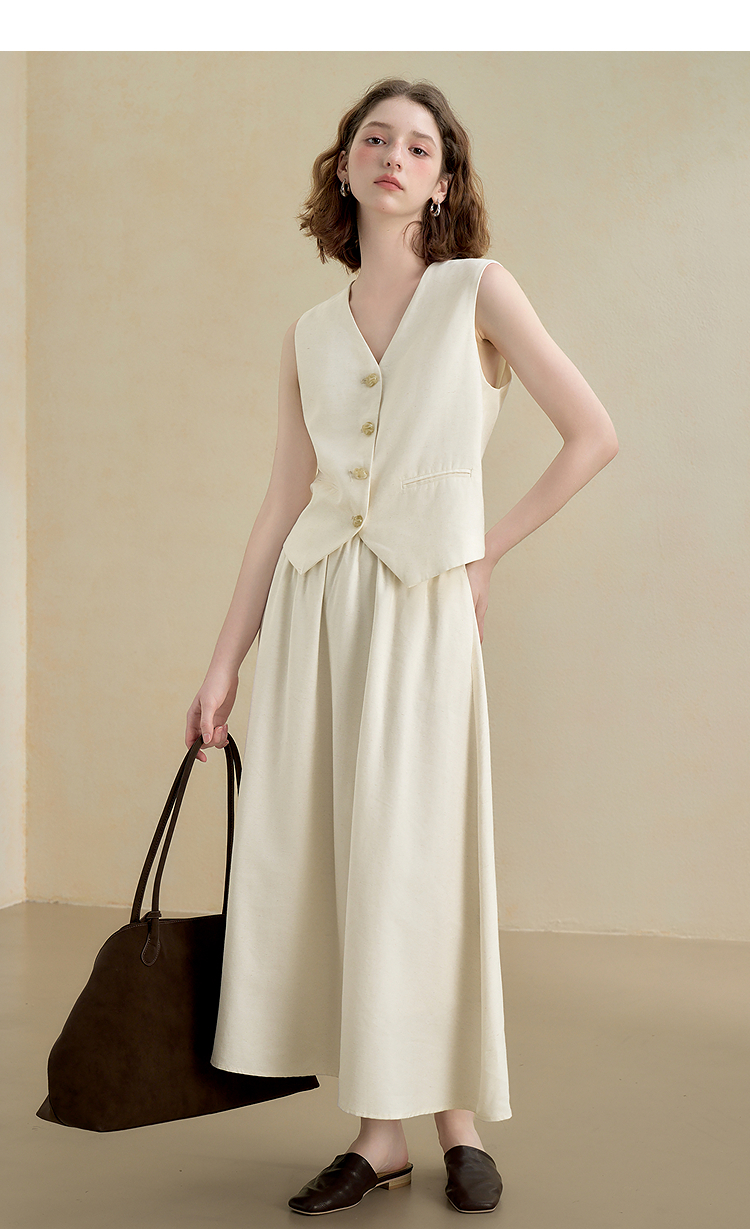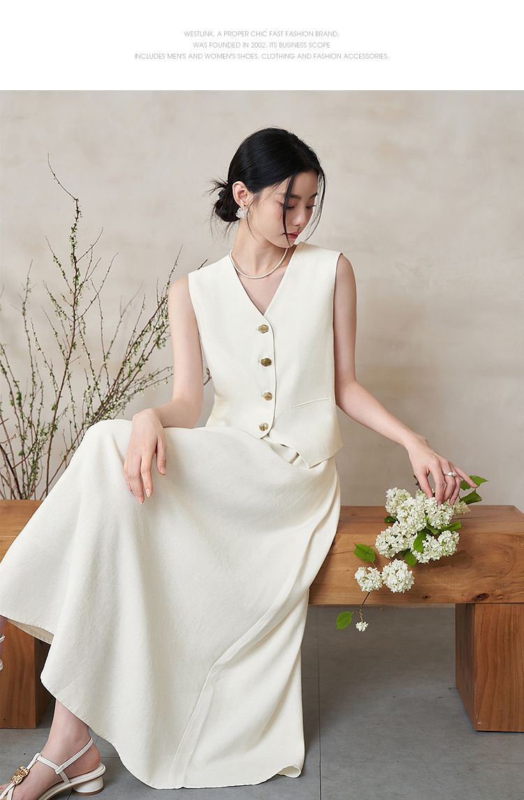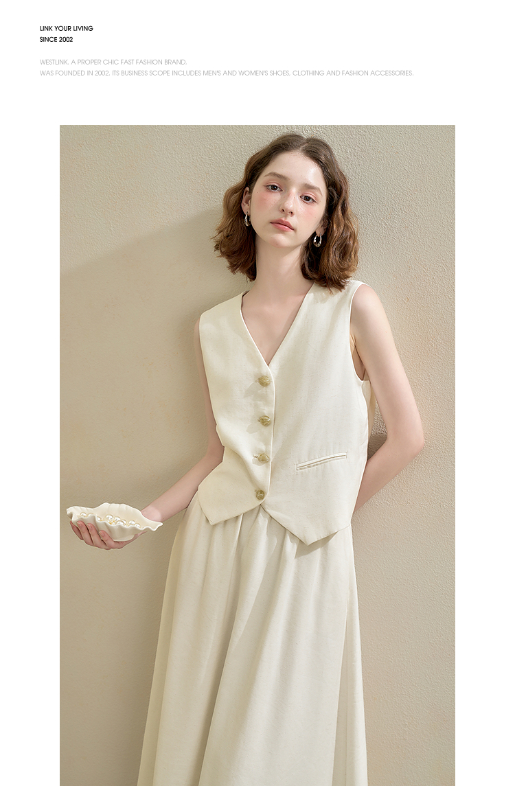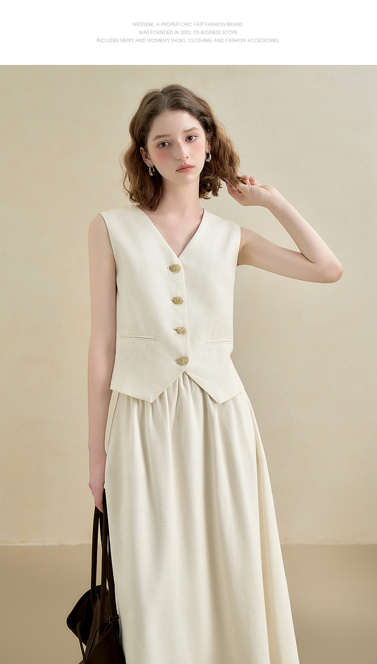 【限时秒杀】老钱风职场通勤质感两件套女V领马甲搭半身裙套装V1441346