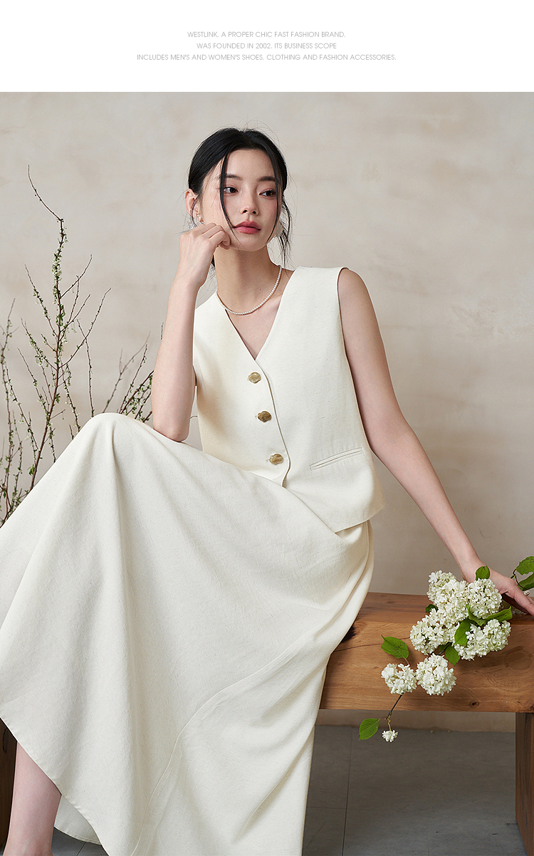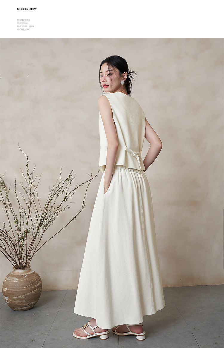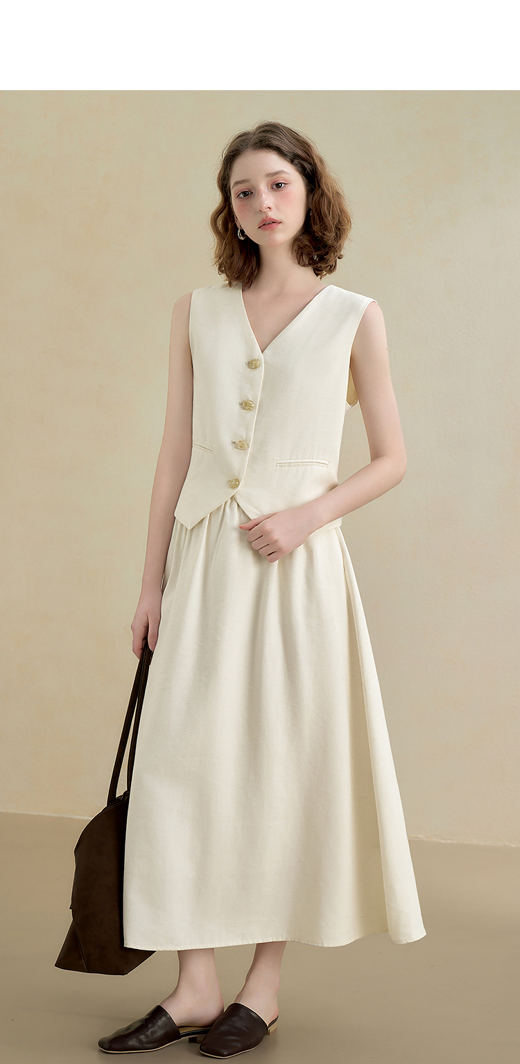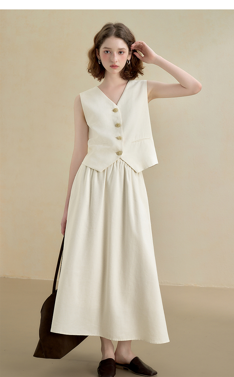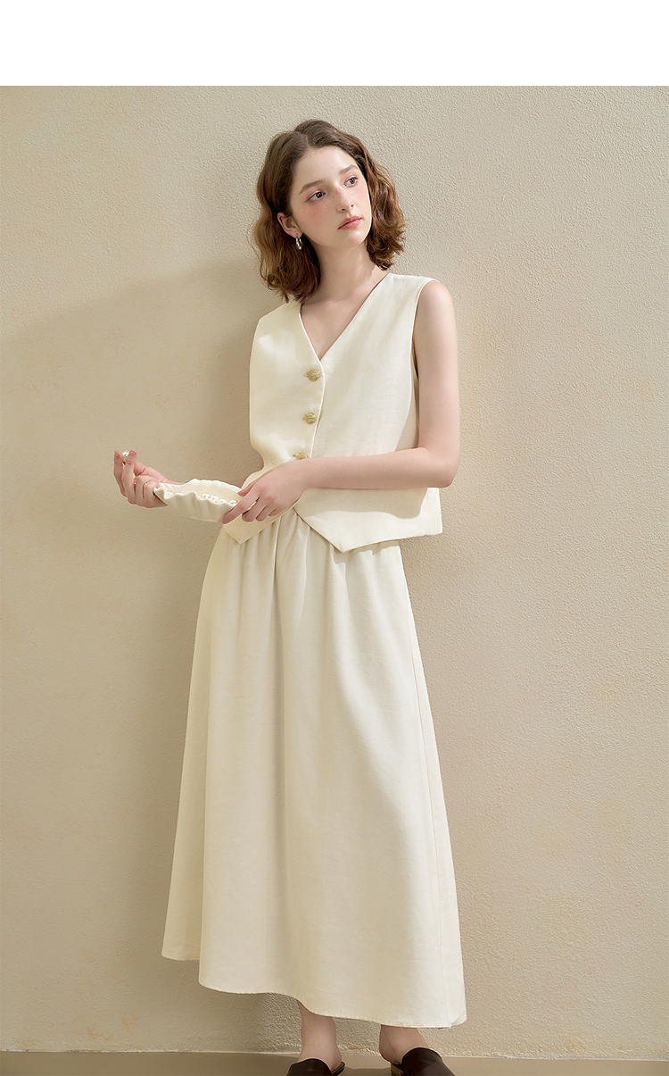 【限时秒杀】老钱风职场通勤质感两件套女V领马甲搭半身裙套装V1441346