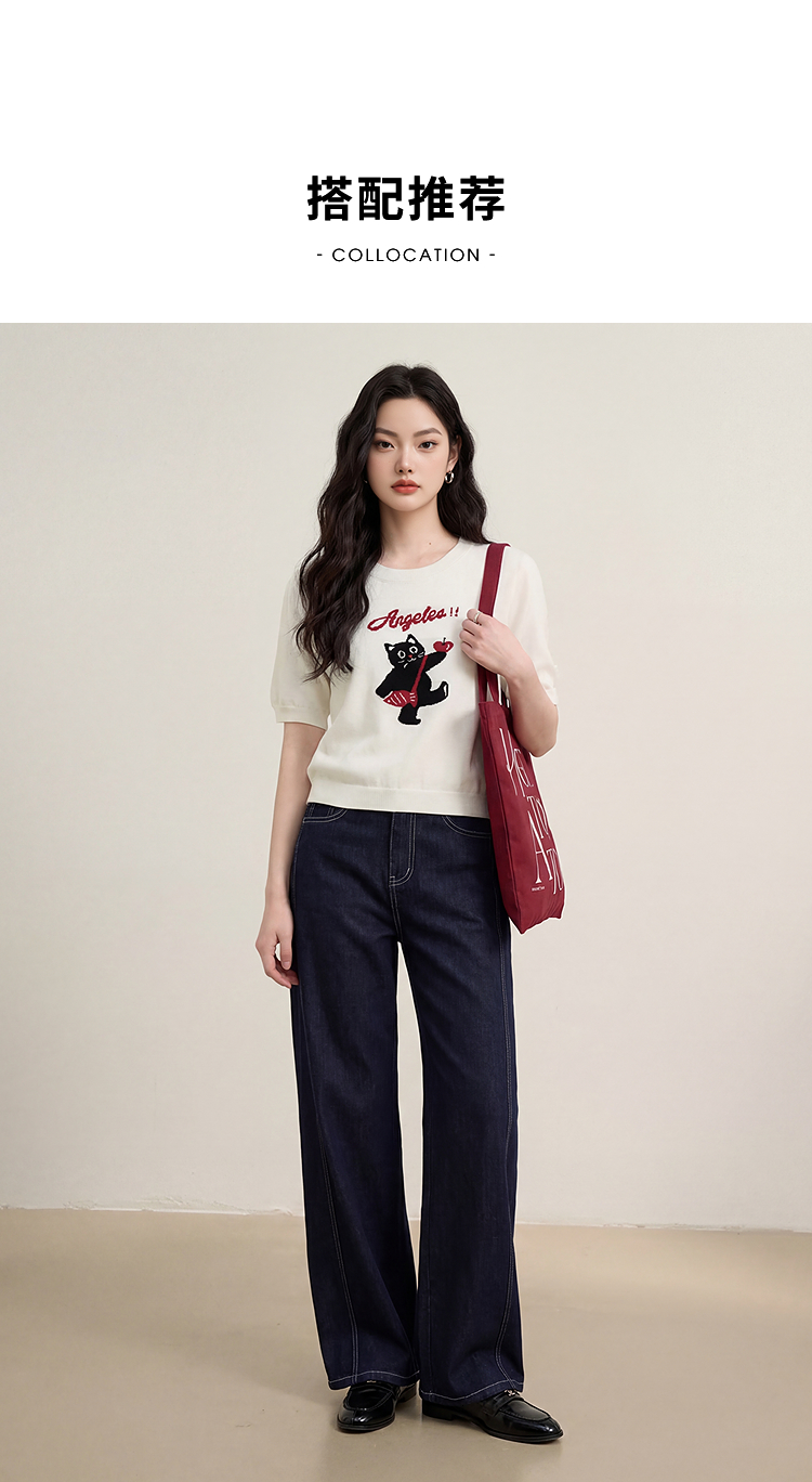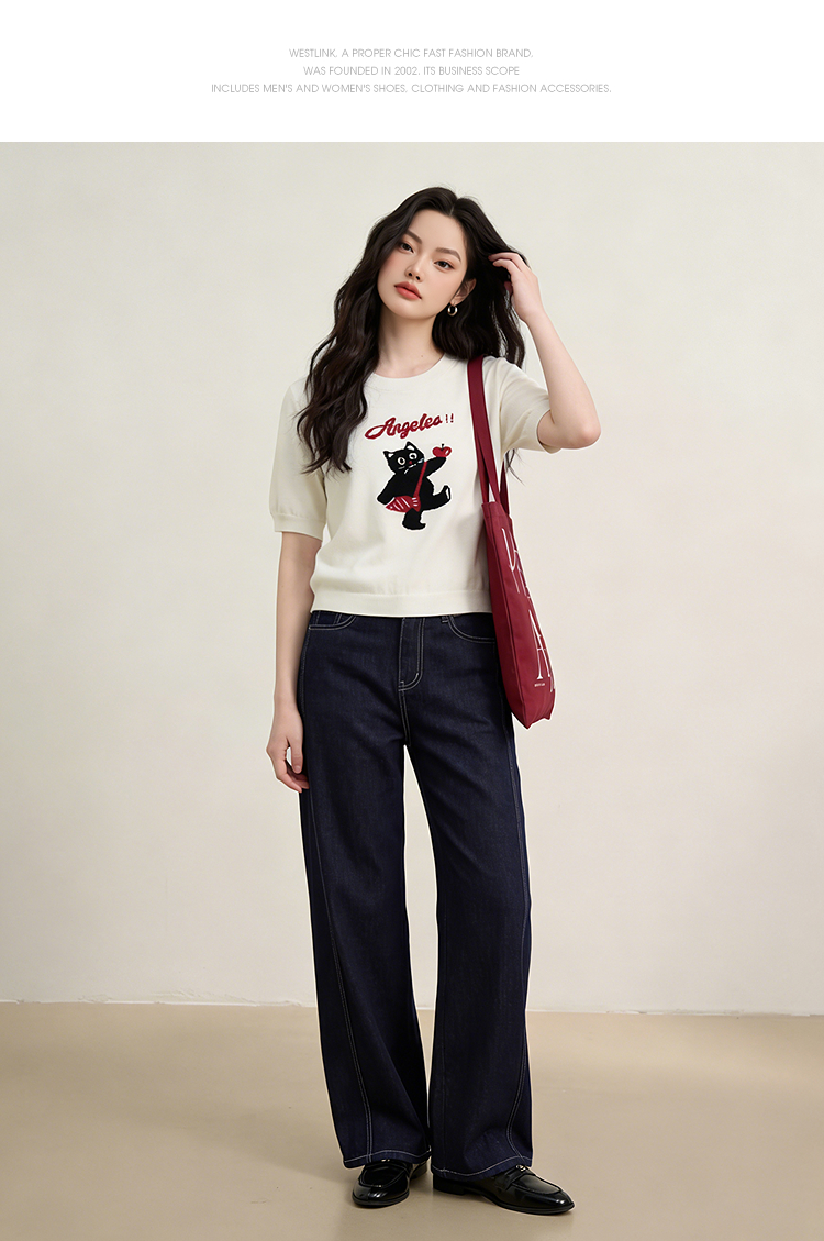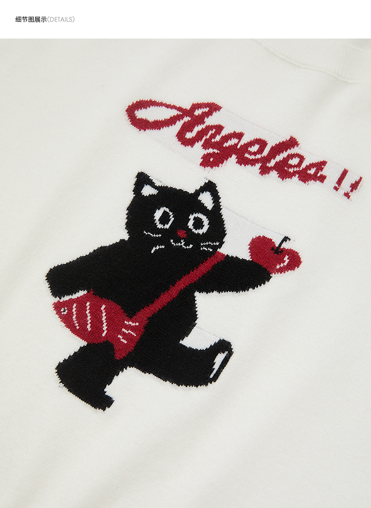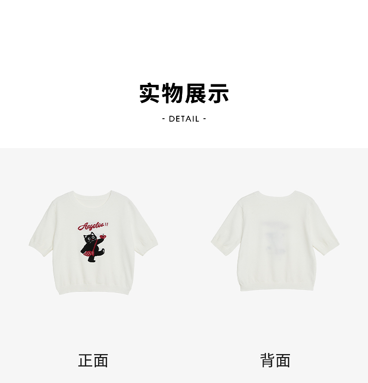 西遇可爱甜酷风2026新款春季卡通猫咪短袖毛衣圆领针织衫上衣T恤H0060218
