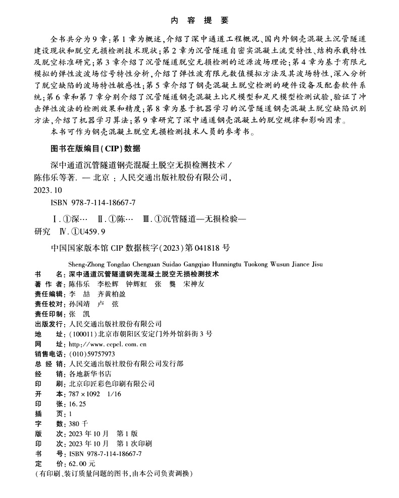 书名:深中通道沉管隧道钢壳混凝土脱空无损检测技术