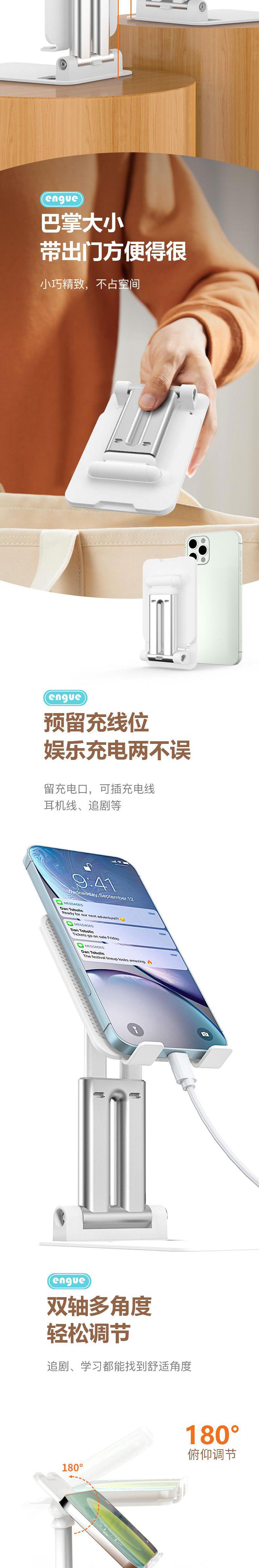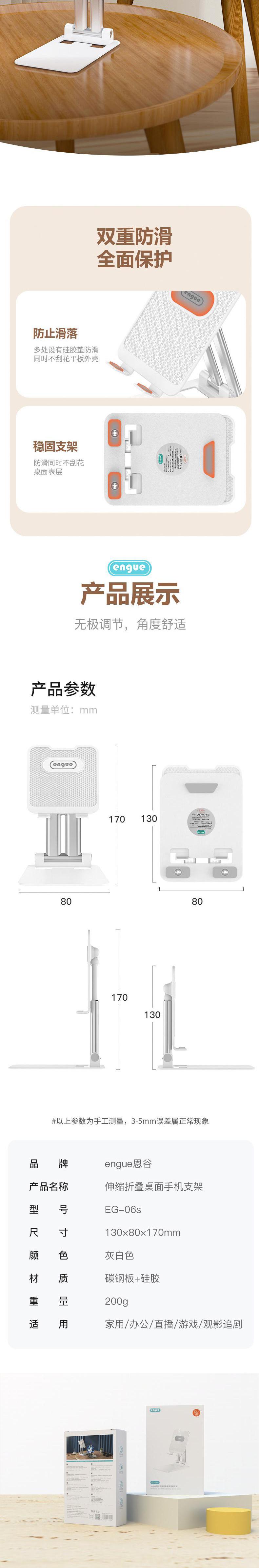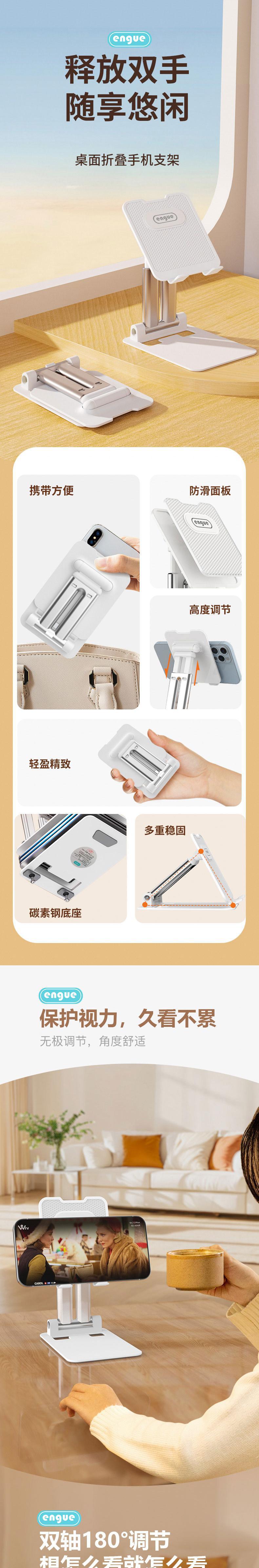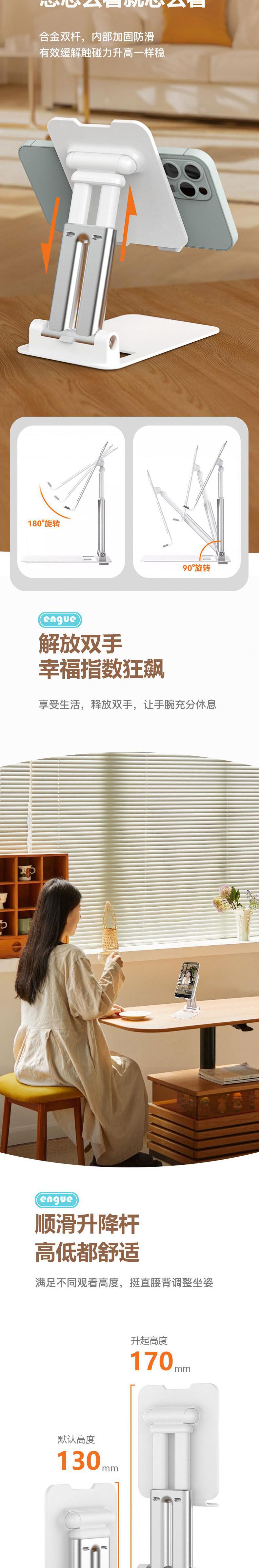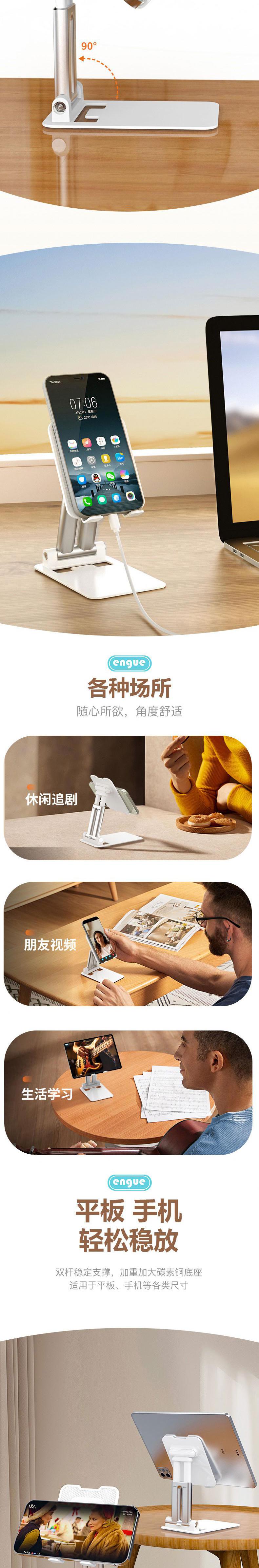 【自营】engue恩谷铝合金伸缩桌面支架EG-06S稳固不晃单手调节出差随身带