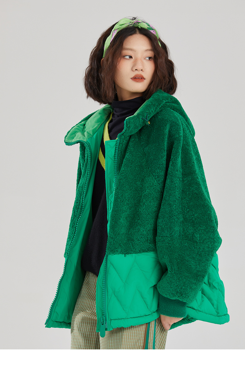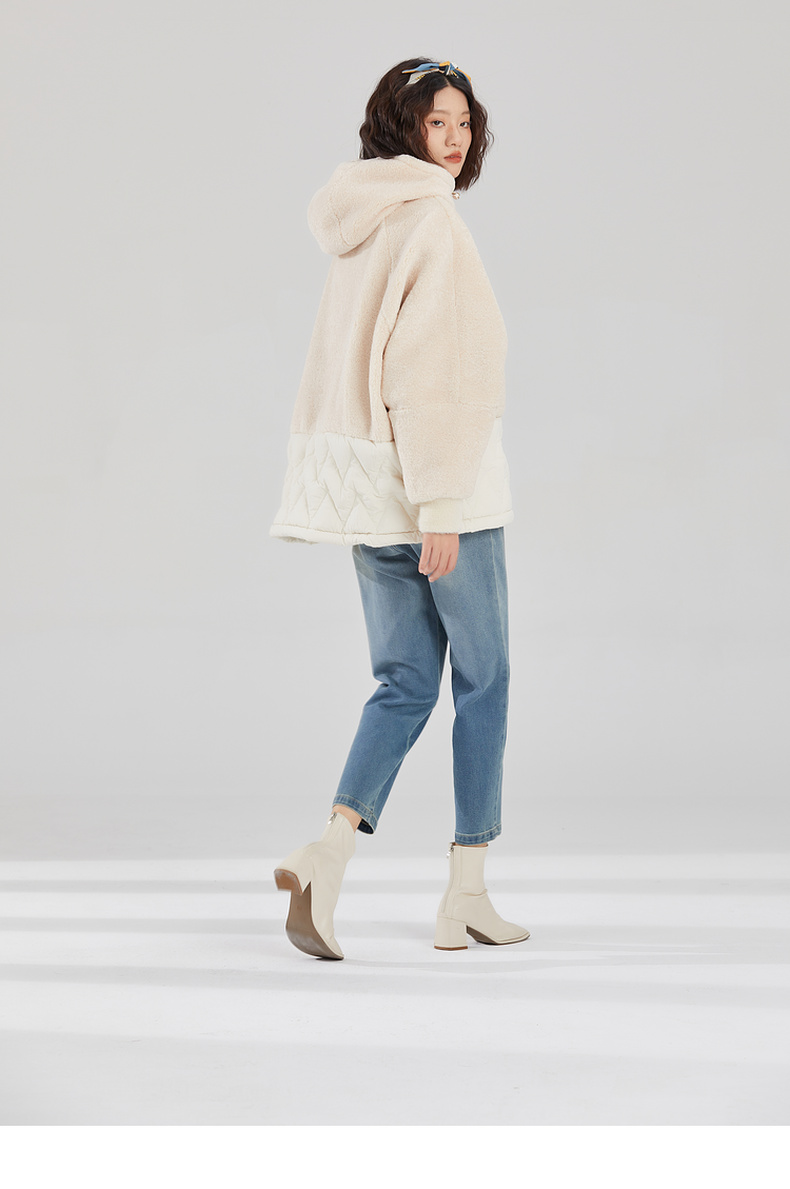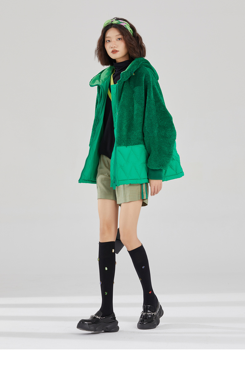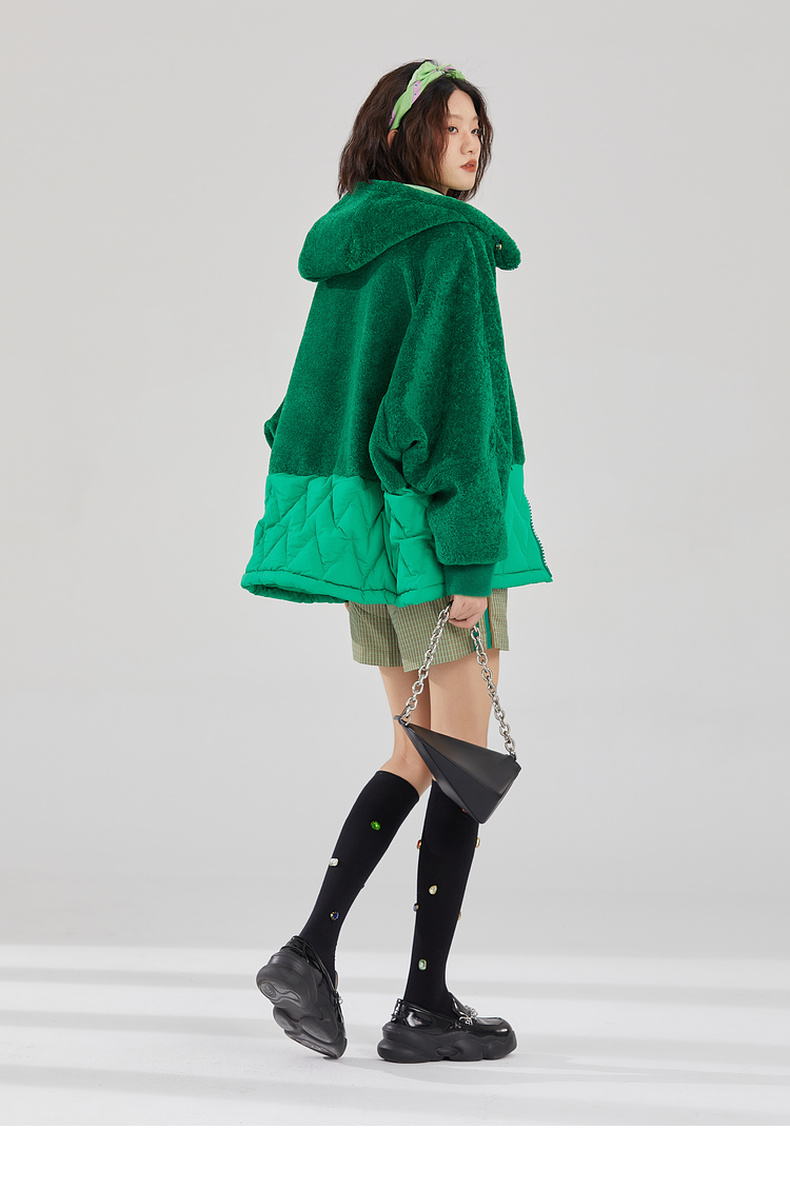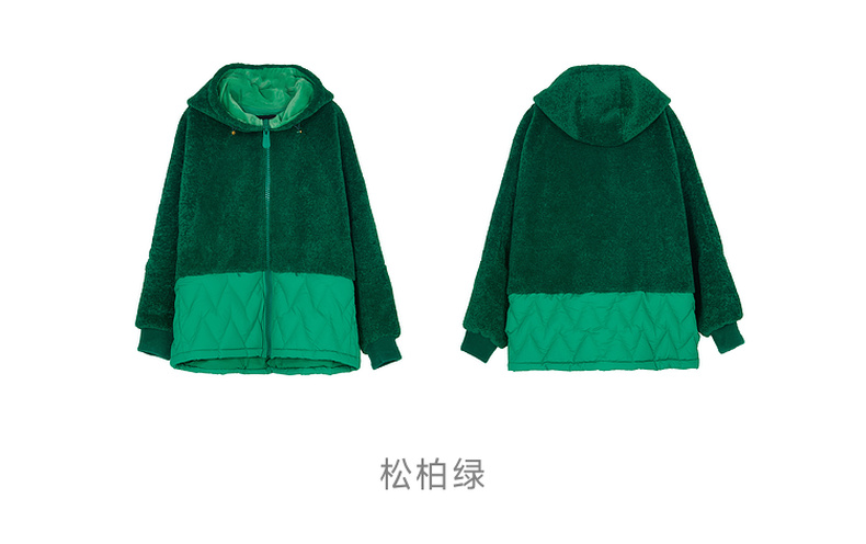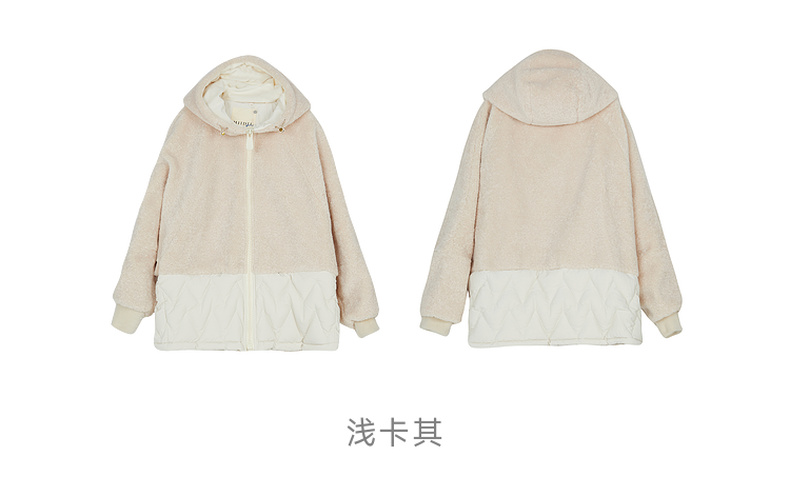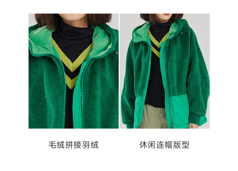 谜底连帽拼接羽绒女2023冬季新款时尚宽松毛毛鸭绒外套239MY7402