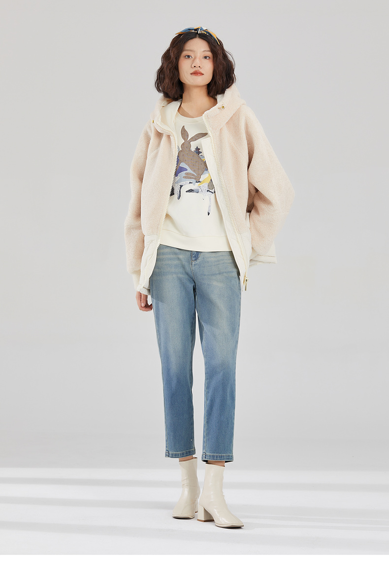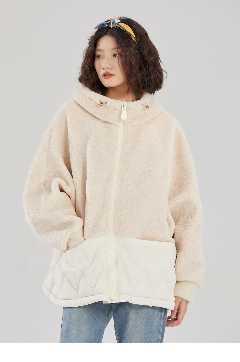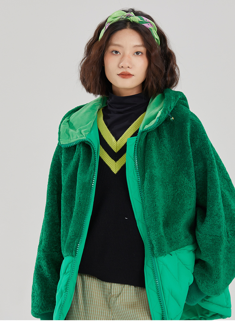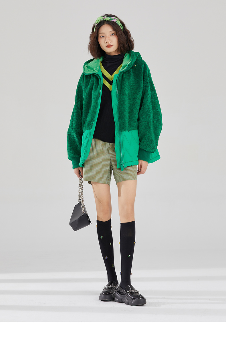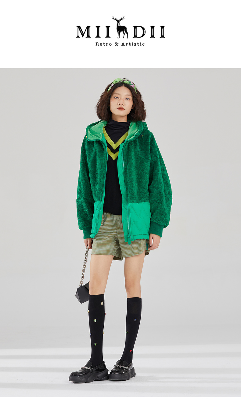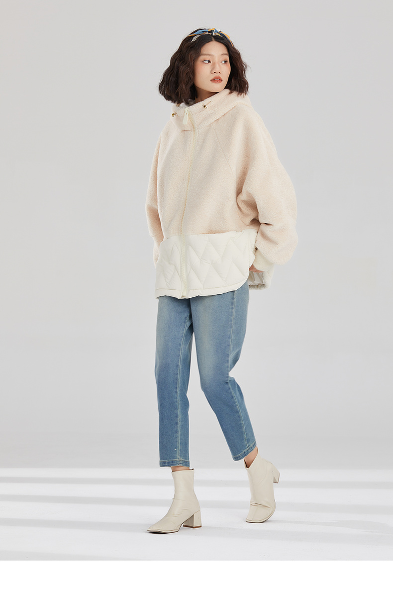 谜底连帽拼接羽绒女2023冬季新款时尚宽松毛毛鸭绒外套239MY7402