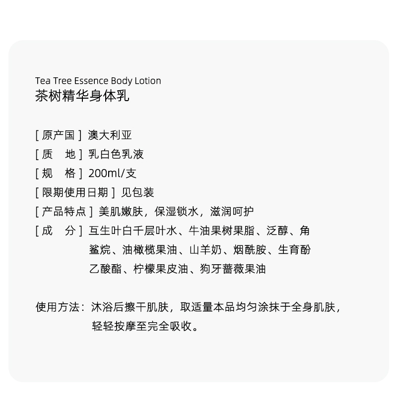 Oliviam/澳莉维亚澳洲进口茶树精华身体乳补水保湿滋润不油腻茶树精华身体乳
