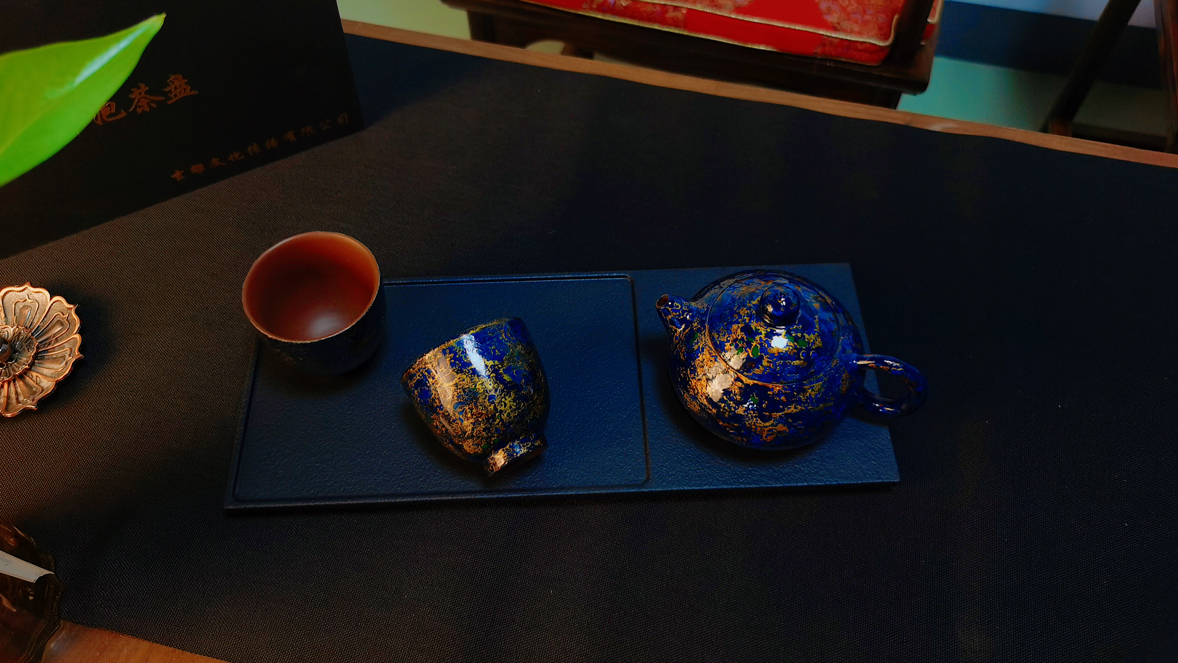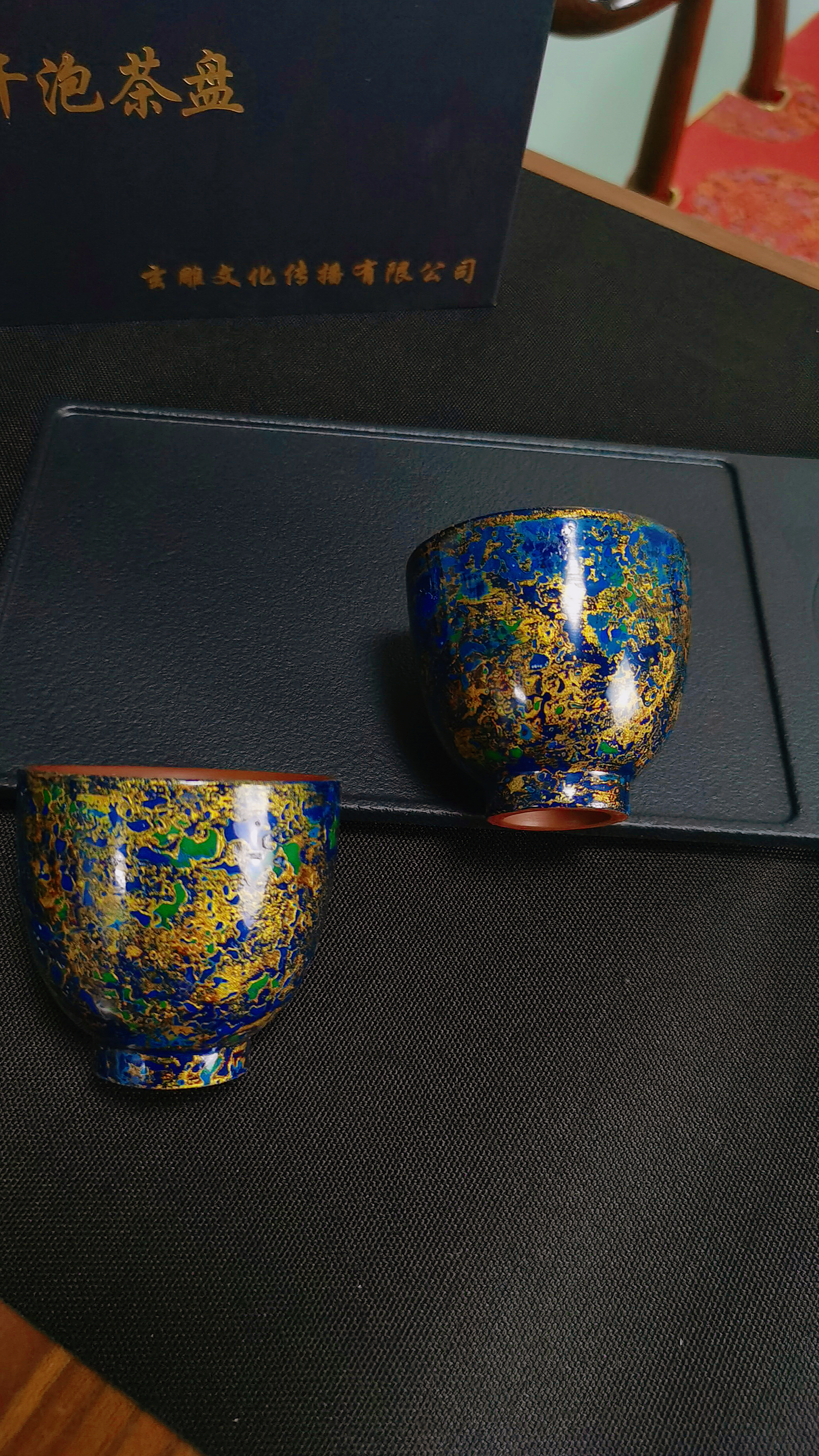 玄雕窑大漆闻香杯80ml西施大漆壶200ml鎏金壶200ml紫砂深色小茶盘32*13*2cm